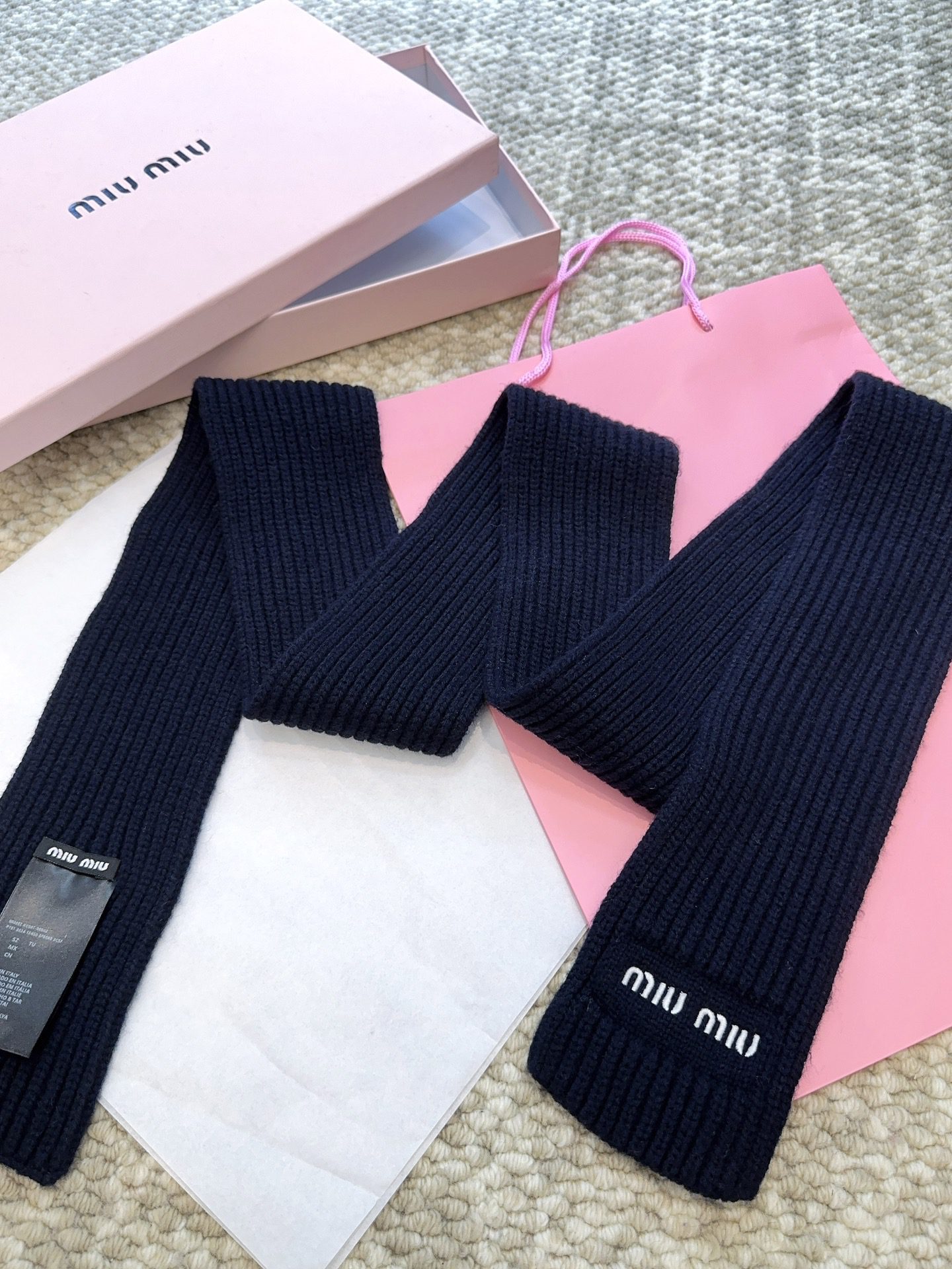 🧣Top cashmere version with stable quality🧣 PMiu’s new scarf is really cost-effective, so I’ll give it a try~ MiuMiu’s simple and versatile wool knitted fabric is really a single product that combines quality and beauty, completely rescuing you from having no clue about what to wear. It feels soft and skin-friendly, soft and does not stick to the body. It is full of healing, softening the visual and tactile sensations. It is simple and slimming. It is elegant and can be held in an instant. It can set off the skin color and good temperament. Use softness and color to cure the tedious life. Highly recommended. The length is enough to make a knot even after 2 turns. There are two colors. Navy blue VS gray both look good. Navy blue is more academic~~ I love it. 0% virgin wool.