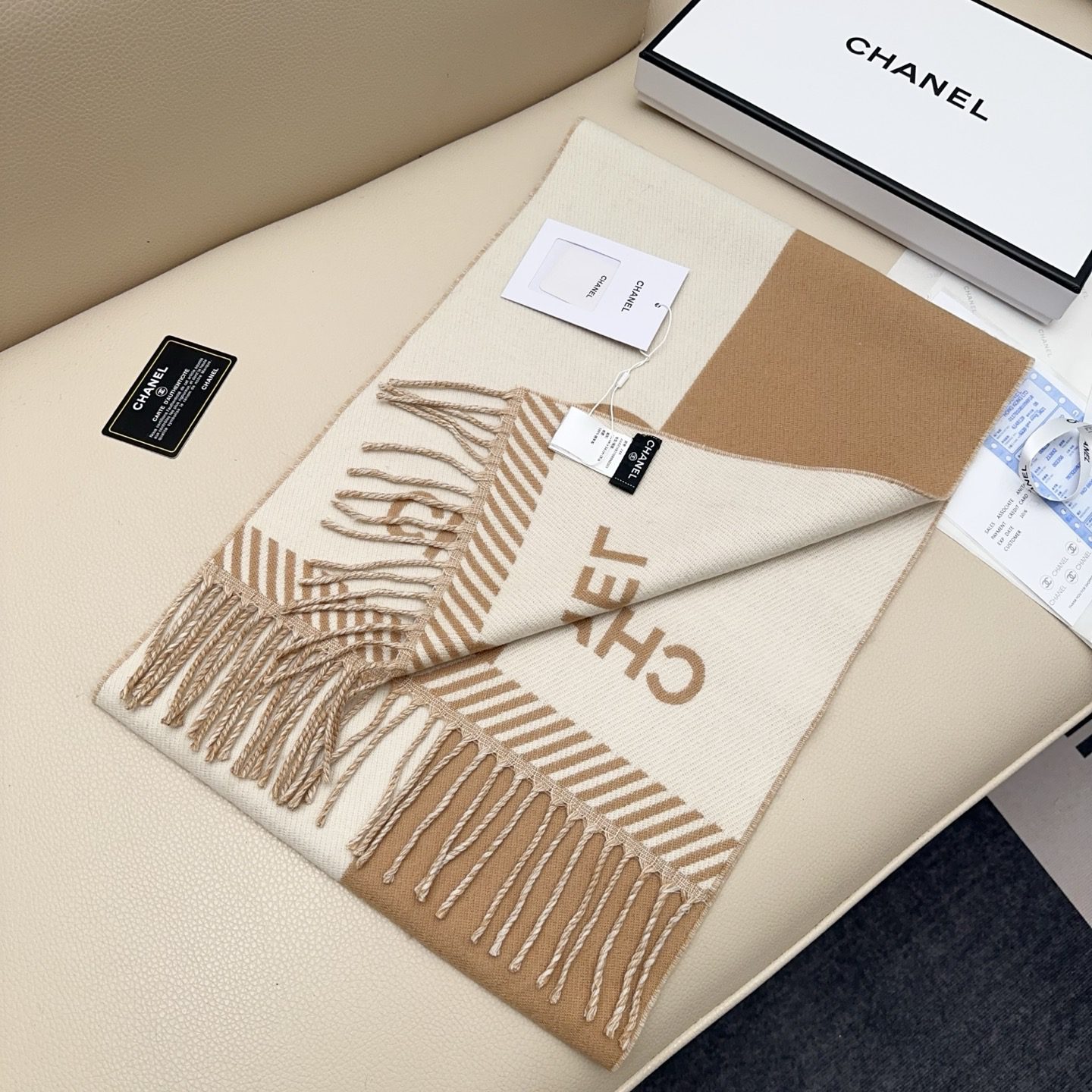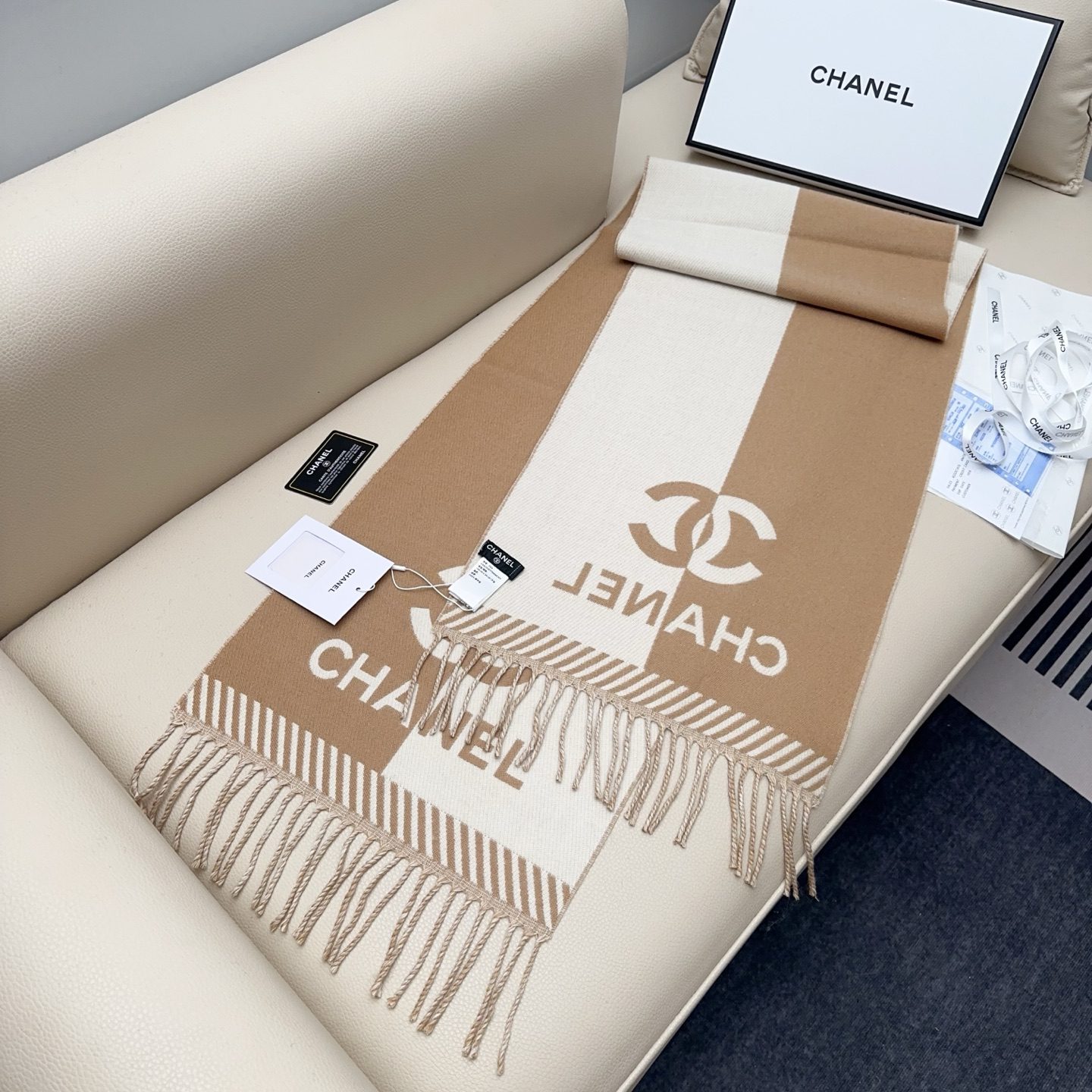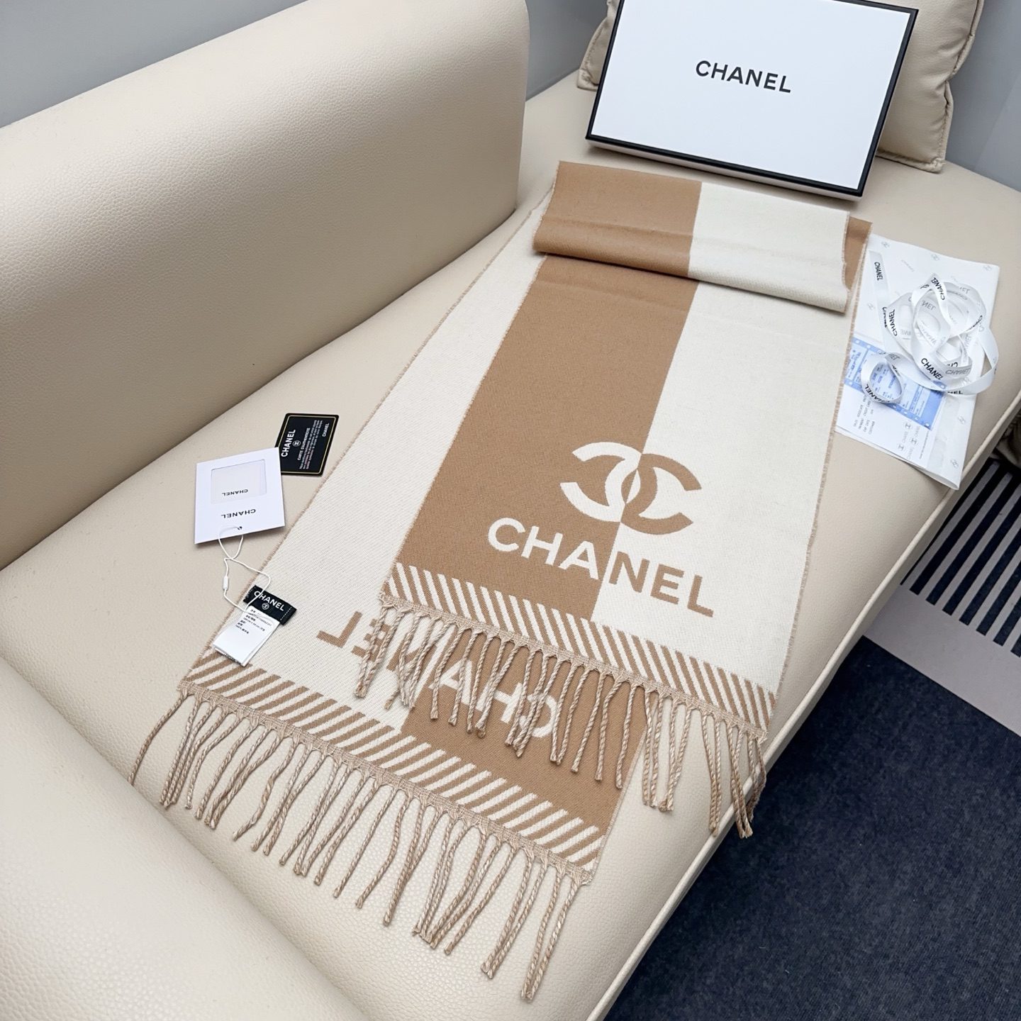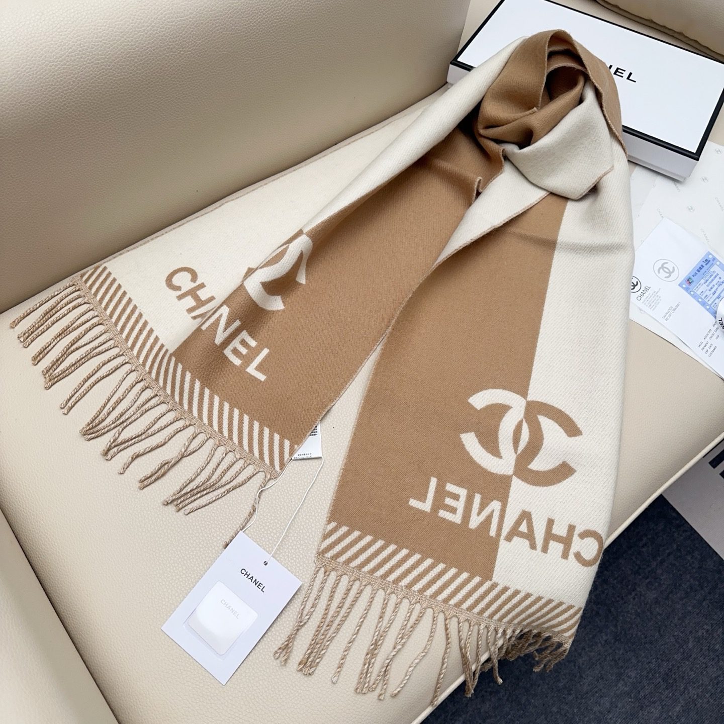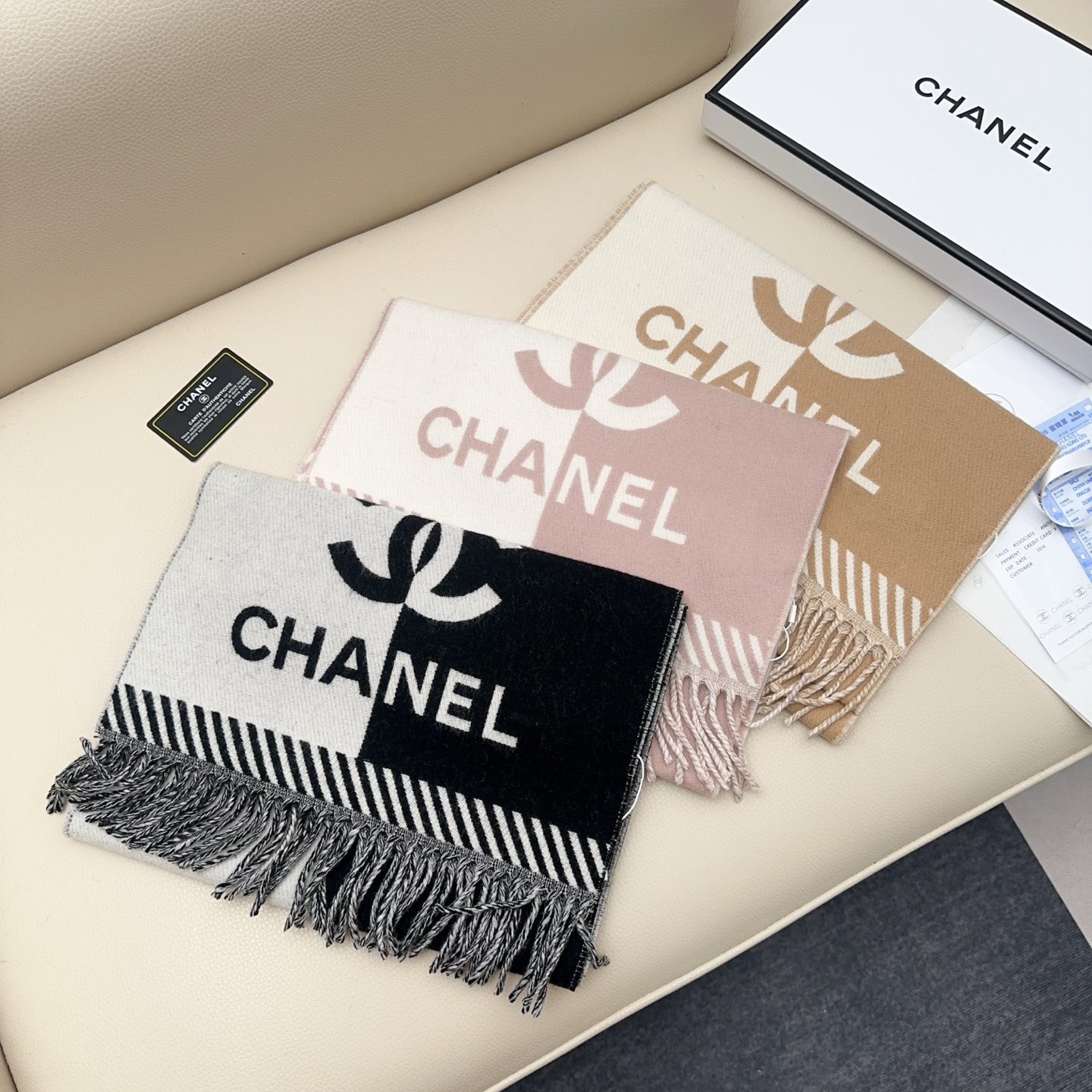 🧣Top version🧣 𝐂𝐇𝐀𝐍𝐄𝐋New “Double-sided color block jacquard” Size: 0% Merino virgin cashmere, as the ceiling of the wool industry, not tied at all, gentle and textured‼ ️Both boys and ladies can enter. It is versatile and does not pick anyone. It must be reserved for yourself.