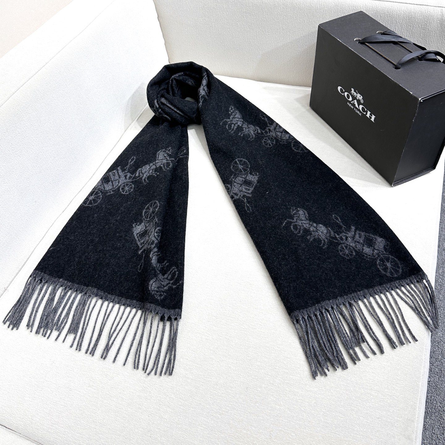 🧣Top version🧣 .00 Coach’s classic C logo two-color shawl is so pretty! It not only has good looks but also high quality. It is 97% wool + 3cm. The overall width is okay. It is considered a small shawl. The front and back sides are in complementary colors. One side has a dark logo with a light base, and the other side has the opposite color. This is a must-have scarf for autumn and winter!