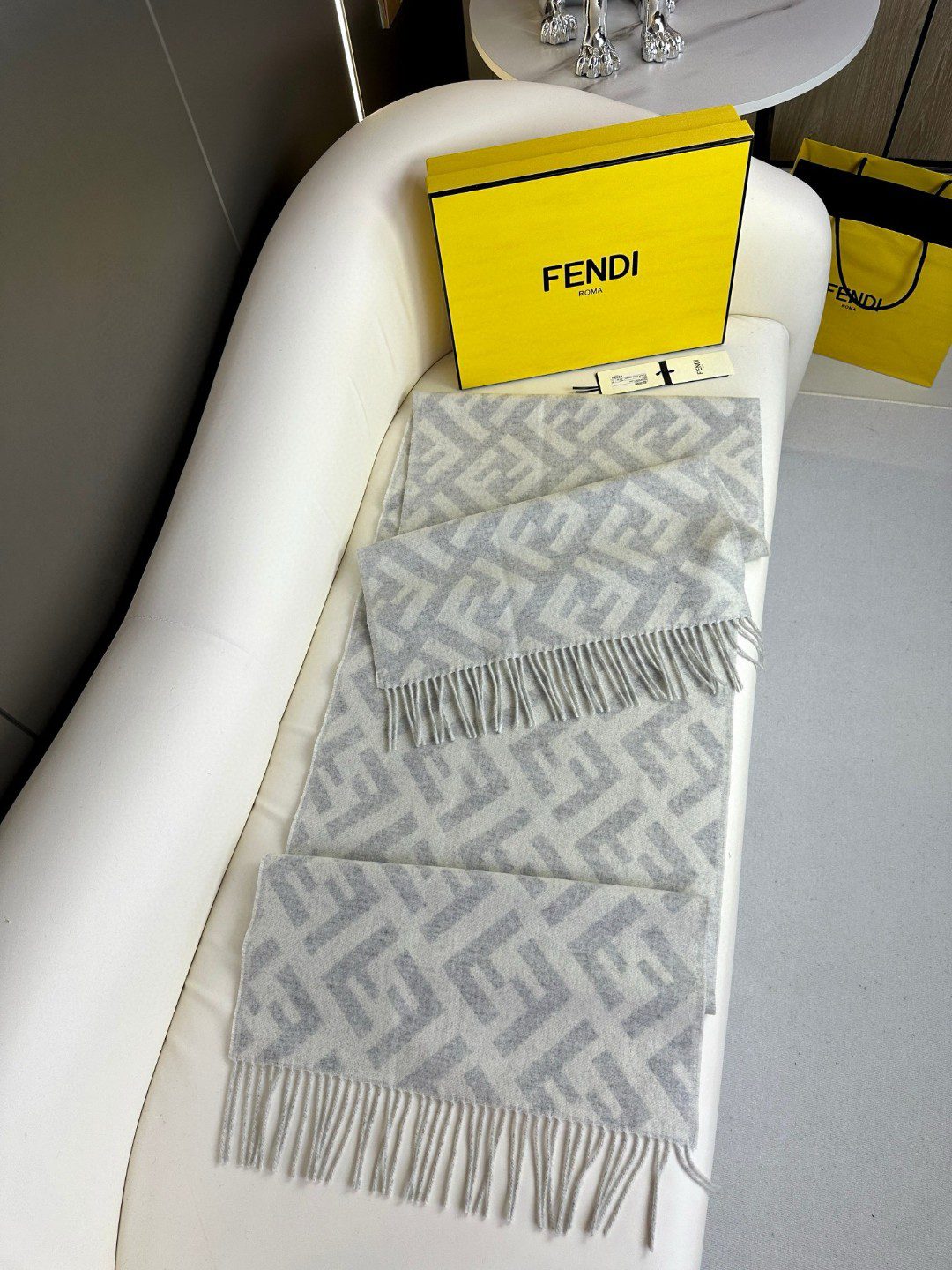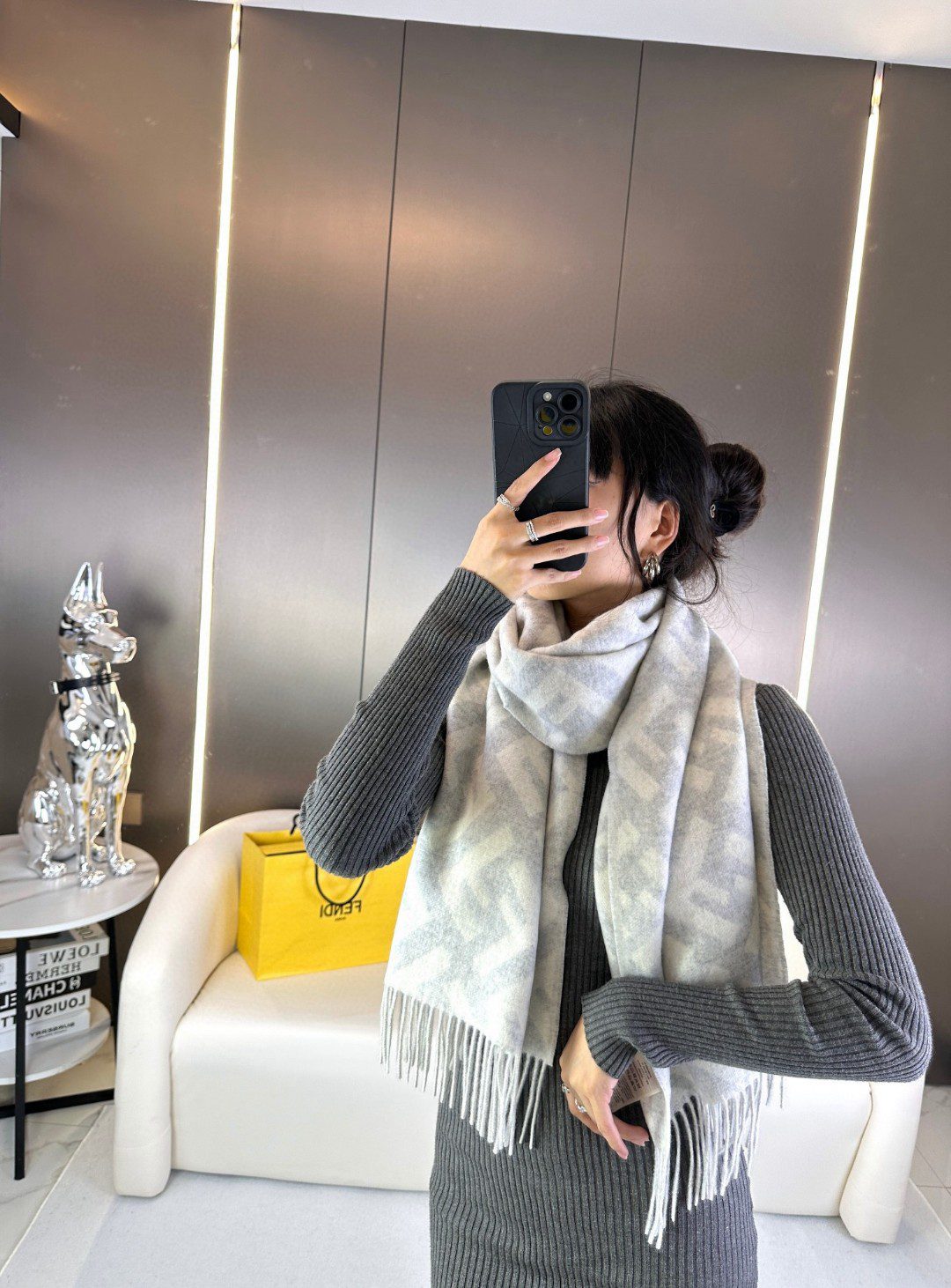 🧣Top version🧣 .00 Fabric: Cashmere Size: 45 Color: Brown, red, gray, milk tea The long tassel scarf is the first choice for fashionistas. Made of brown cashmere and wool. The jacquard texture reproduces the tonal FF pattern.