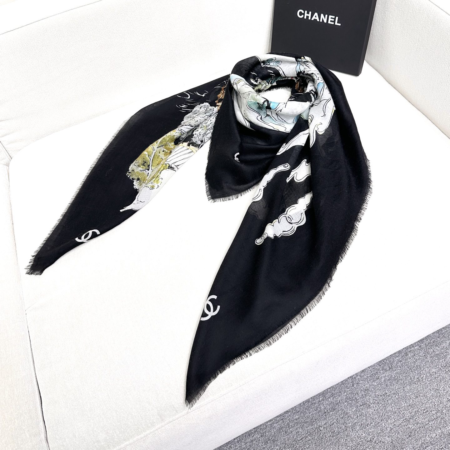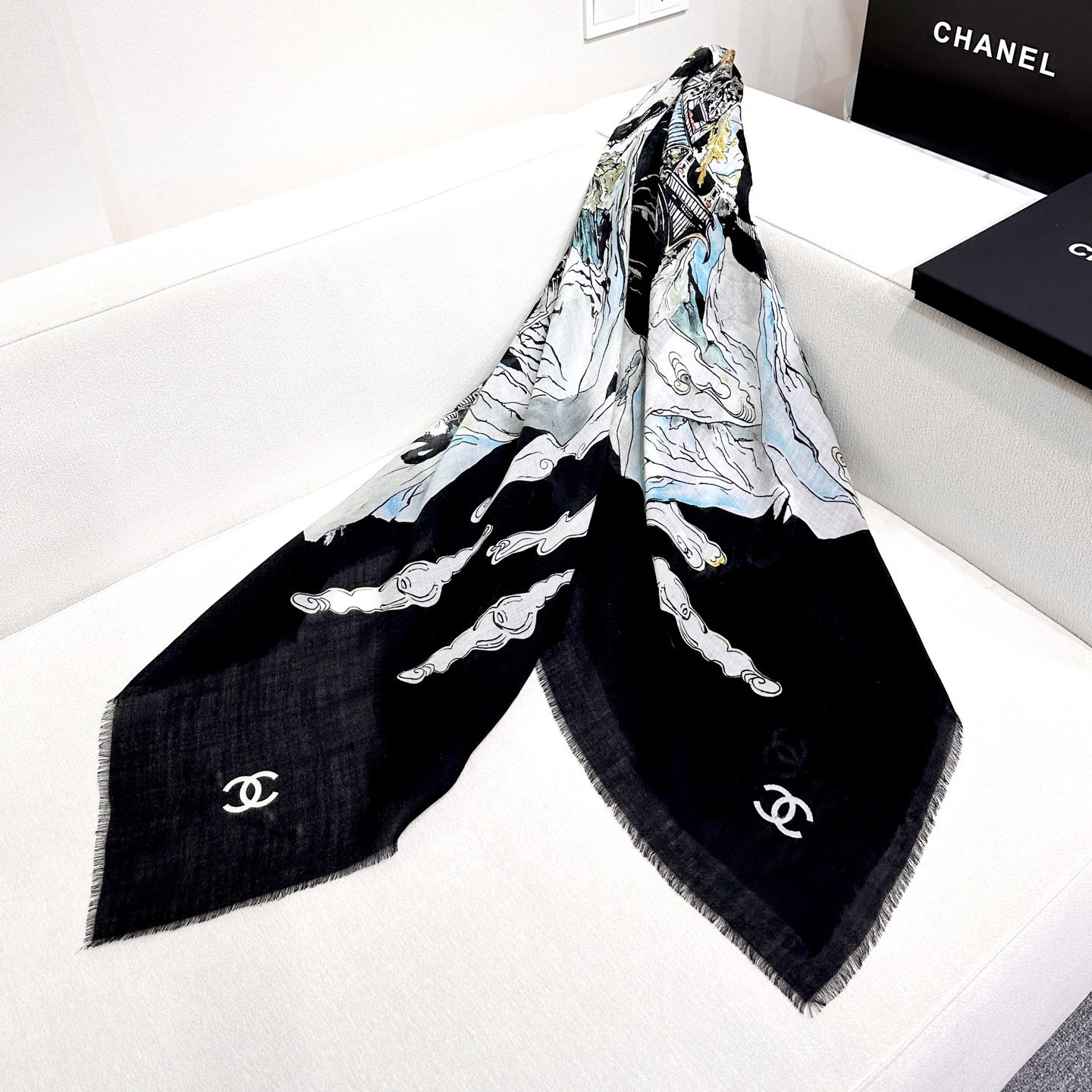 🧣Top version🧣 0CHANEL A top-notch item, the 25th Autumn and Winter Advanced Handicraft Workshop series is dreamy and cinematic, inspired by the Chinese ebony lacquered screens collected by Gabrielle Chanel. % cashmere in her rue Cambon, Paris Size: xcm