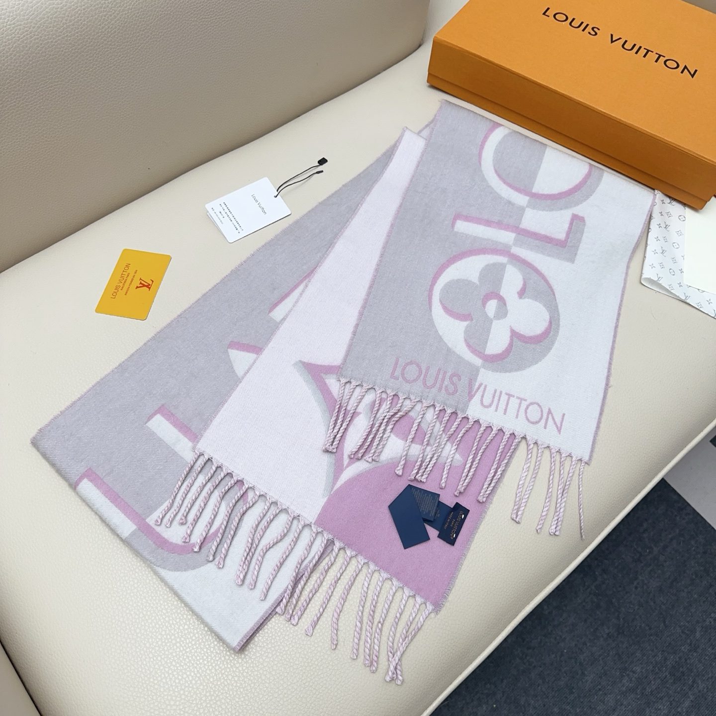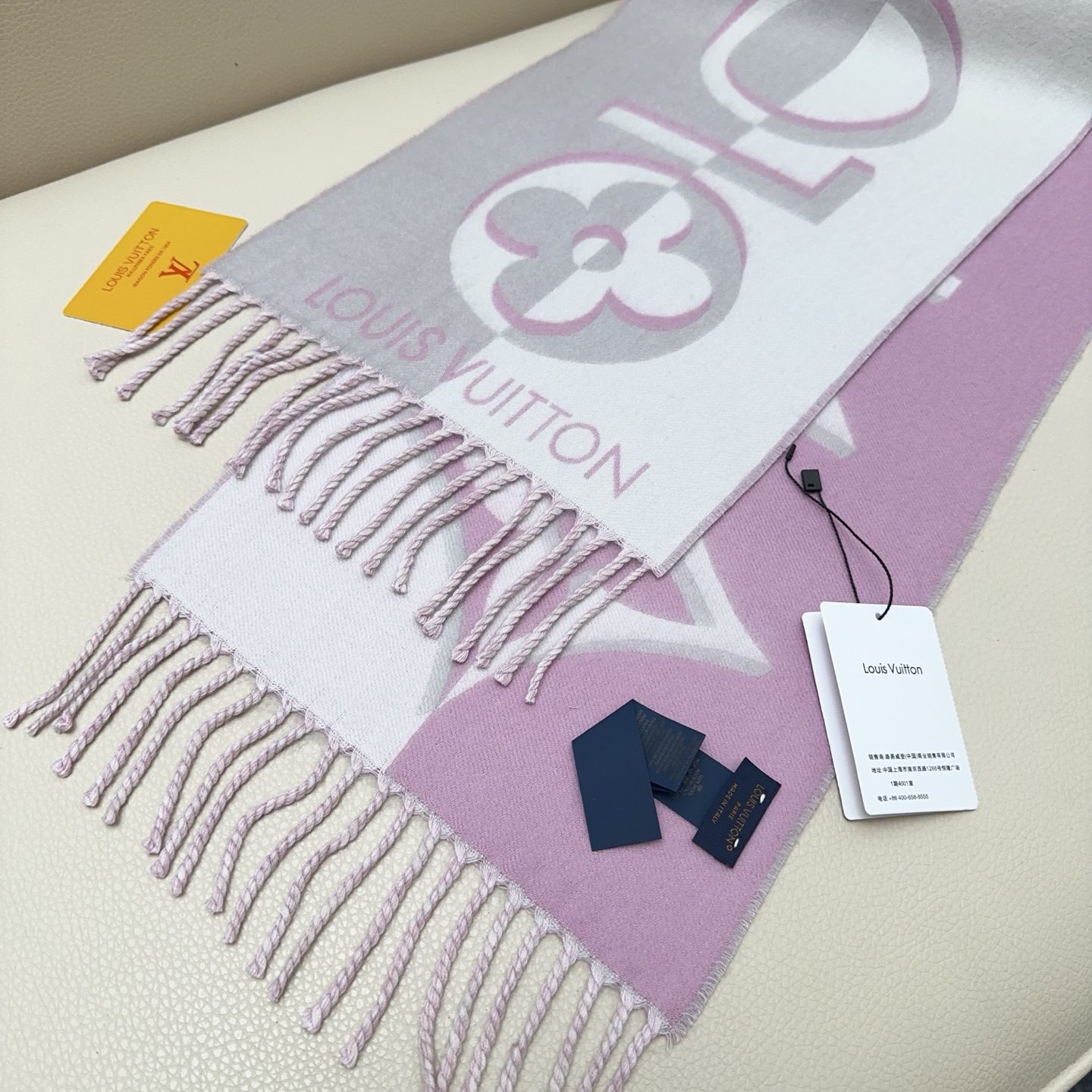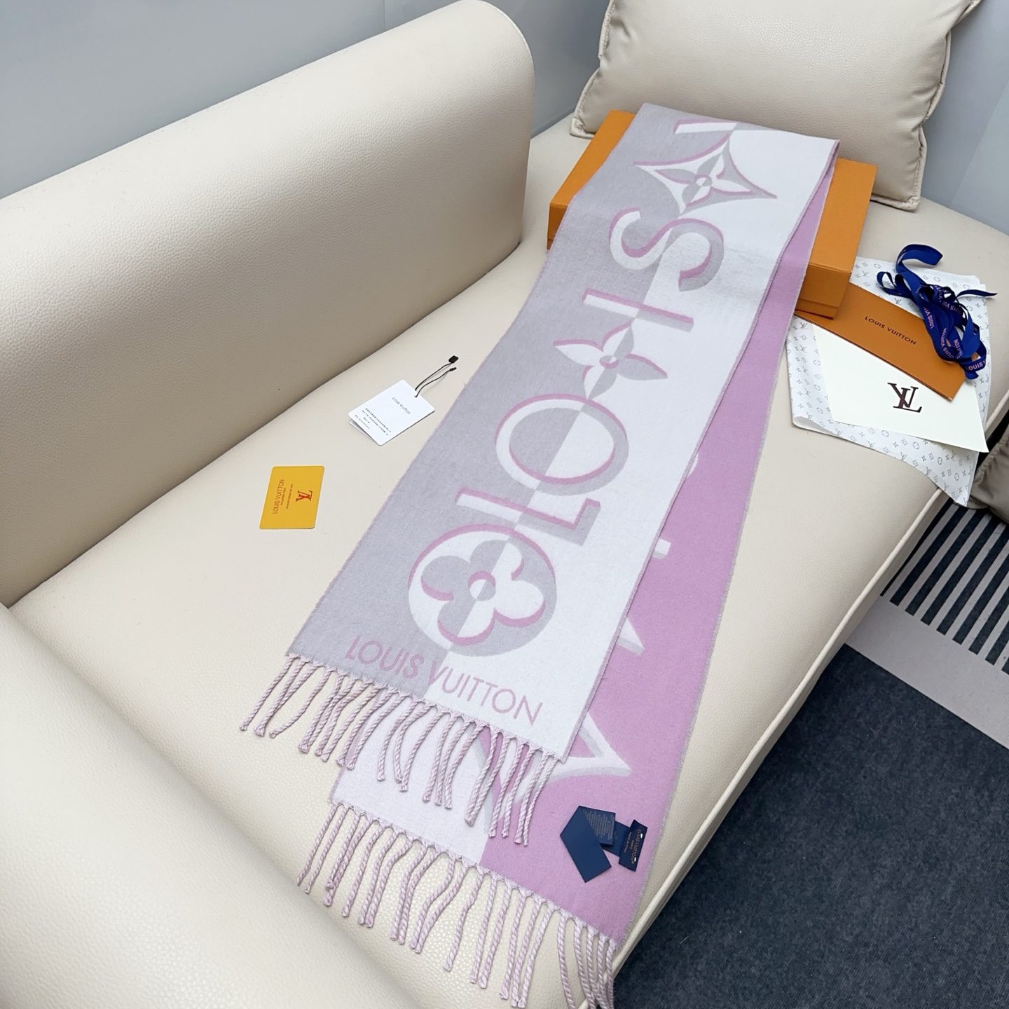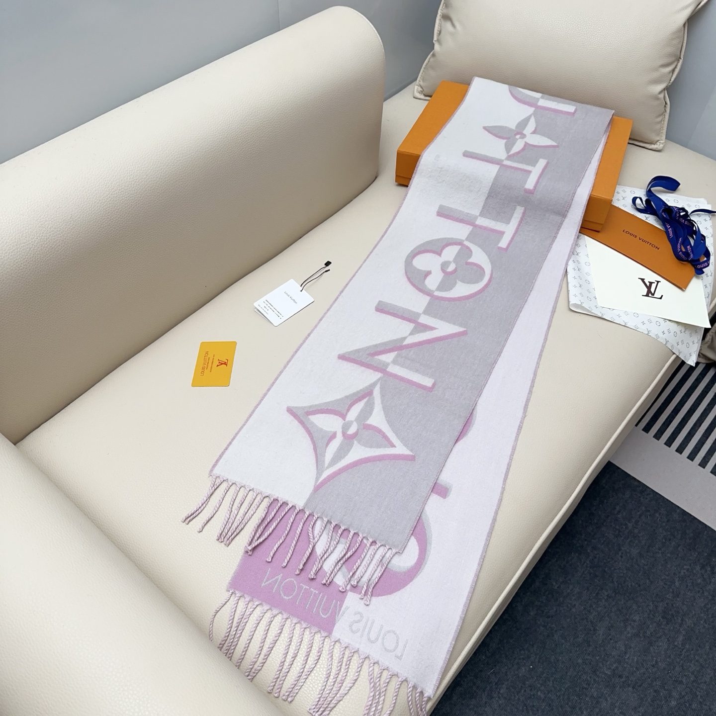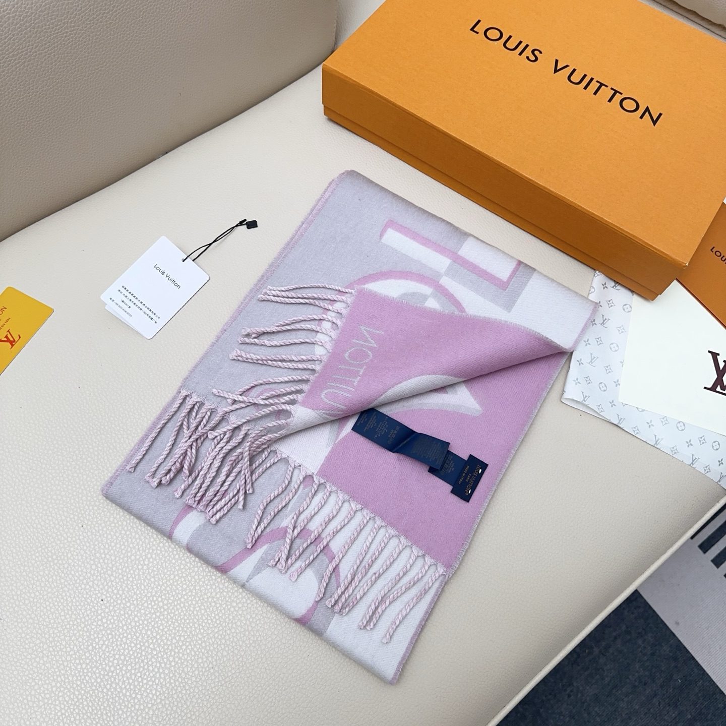 Scarf🧣Top version🧣 Louis Vuitton LV gray and pink color matching double sided