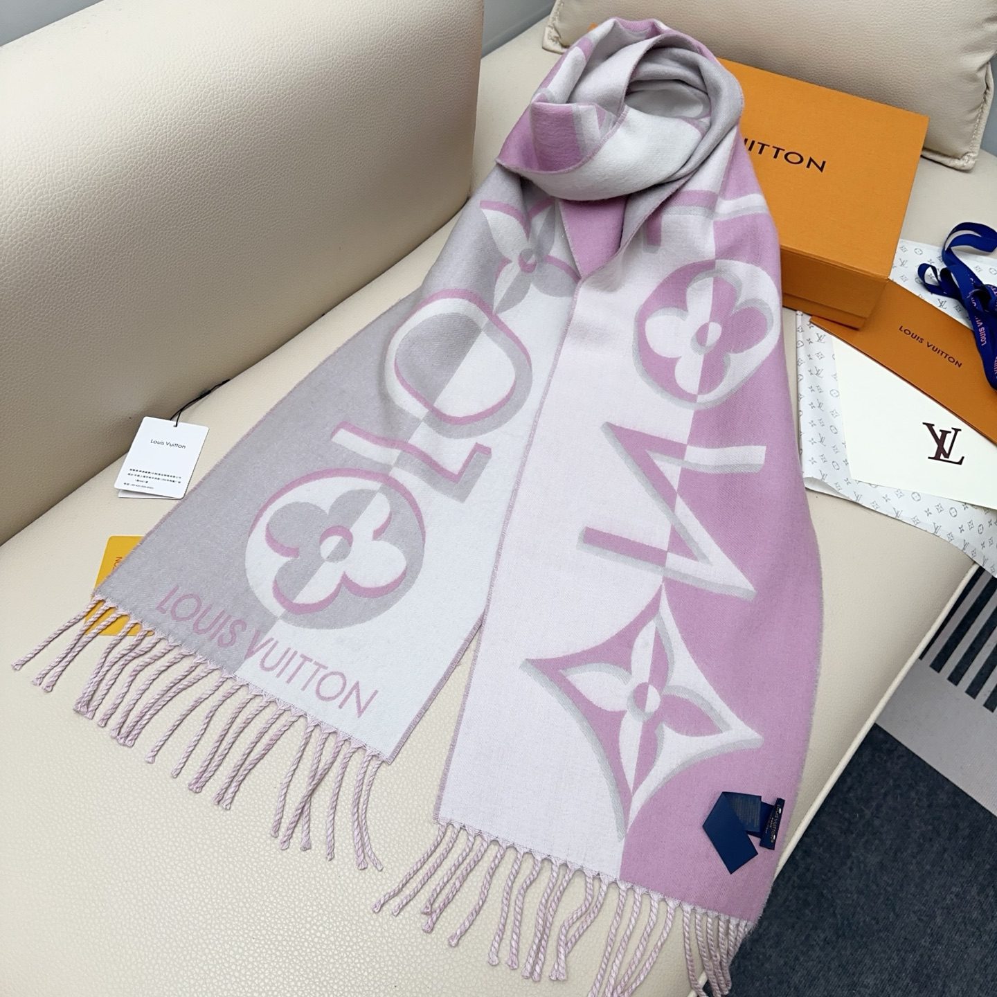 Home SCARF Scarf🧣Top version🧣 Louis Vuitton LV gray and pink color matching double sided