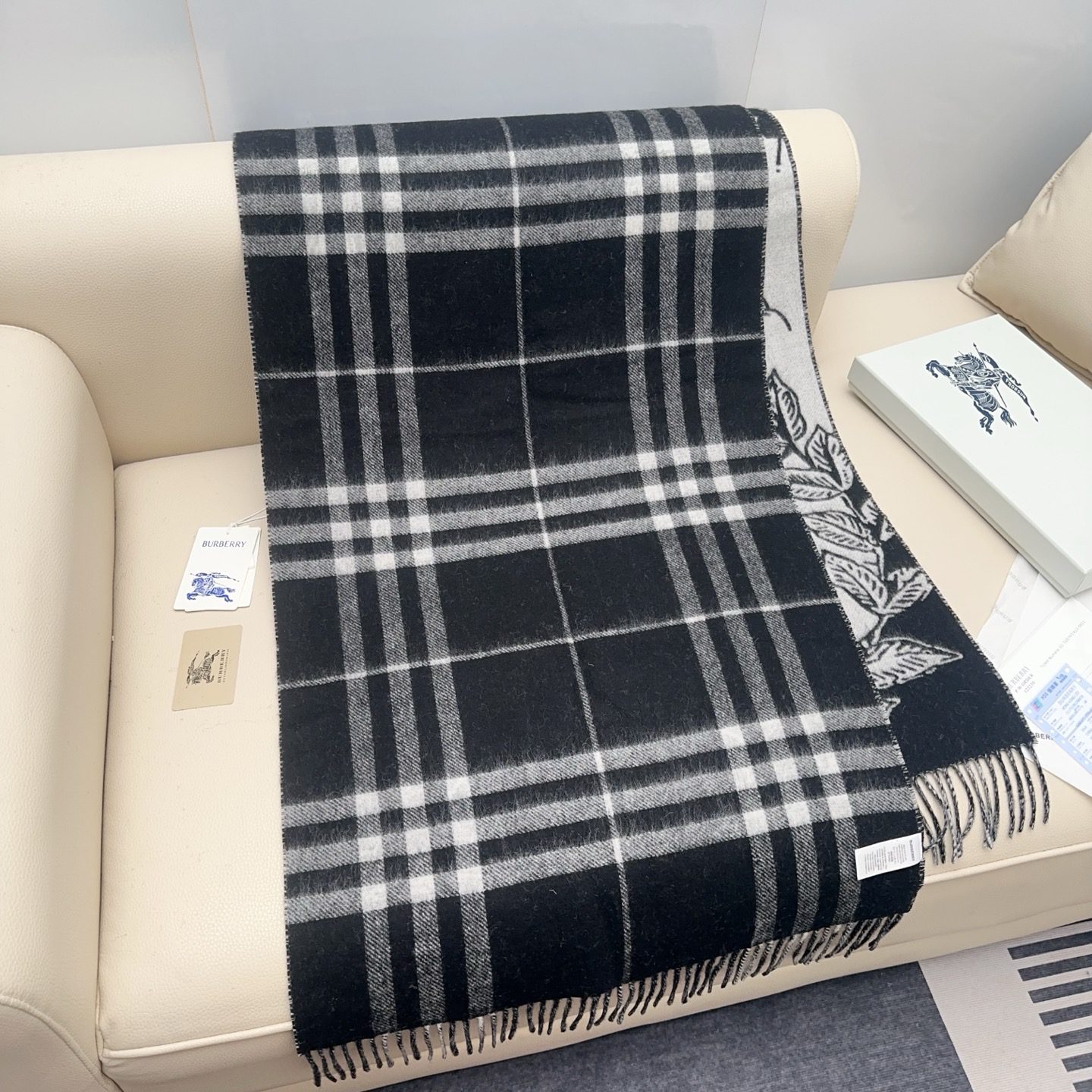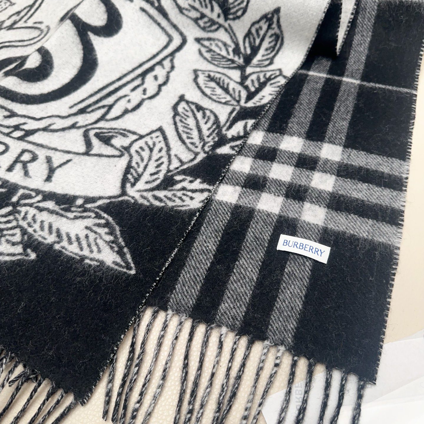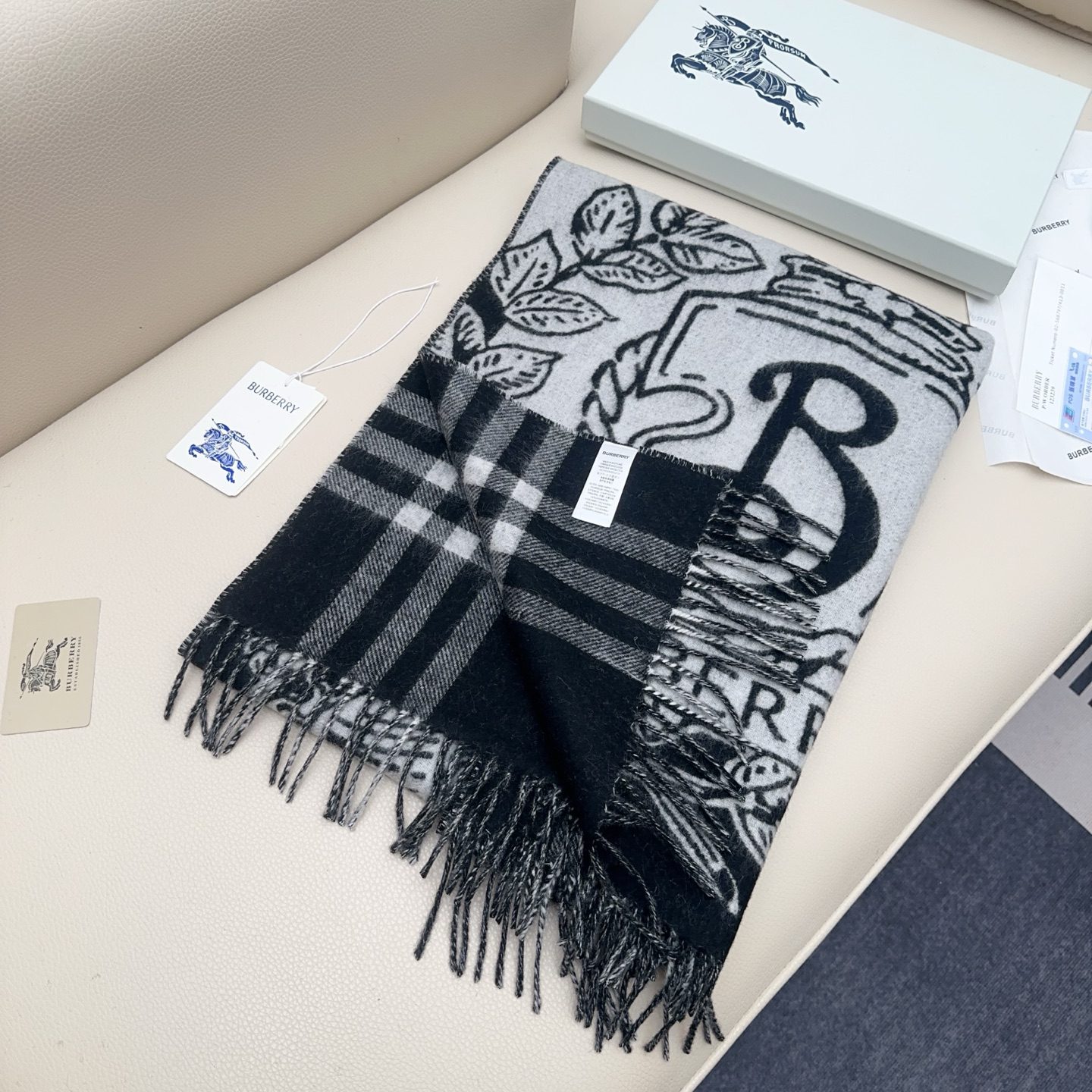🧣Top version🧣 New color… Exclusive hot style, Burberry knight double-sided shawl, all kinds of good-looking, known as Burberry’s most beautiful model this year, the most classic jacquard war horse logo, the most beautiful classic caramel color shawl, refined scarf, made of jacquard worsted cashmere fabric, decorated with the brand’s large plaid and equestrian knight design. The brand’s logo is integrated into a background of oak leaves and acorns for a unique Burberry look. Specifications do not include tassels on both sides: 2 cm