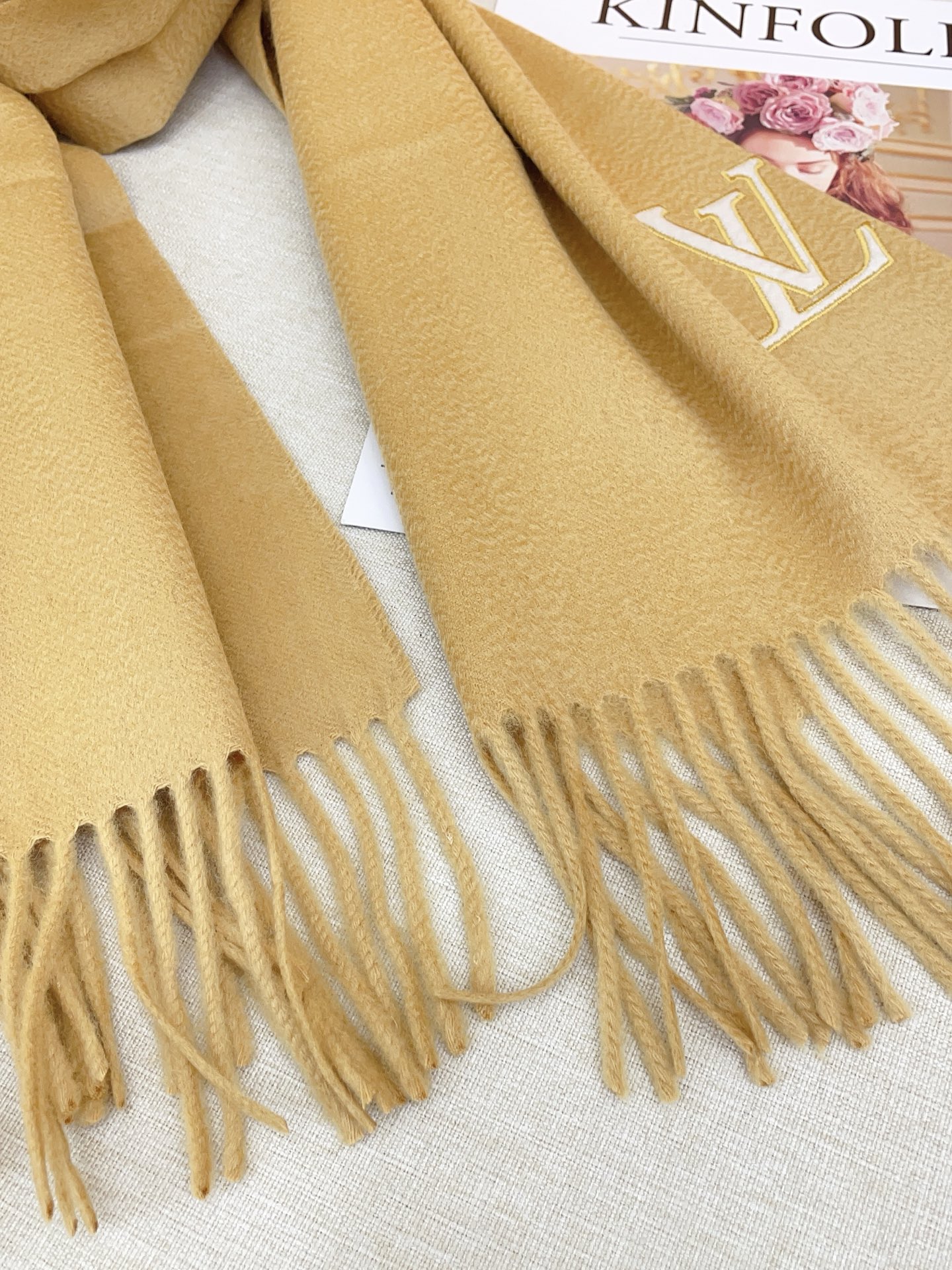 🧣Top version🧣 p【Cashmere Style】Lvjia🫏counter synchronization【Cashmere Long Scarf Embroidery🪡】The classic design is perfect, the embroidered Lvjia logo is highly recommended‼ ️The price is really good, [the texture is very skin-friendly and soft, like a smooth skin] The size is not too big or small, it is very easy to match, and the quality is super good‼ ️High-end quality that you will understand once you get it, high-end details, what you see is what you get, a huge offering‼ ️A must-have recommendation for VIP customers‼ ️cm (including tassels) cashmere long scarf cashmere style