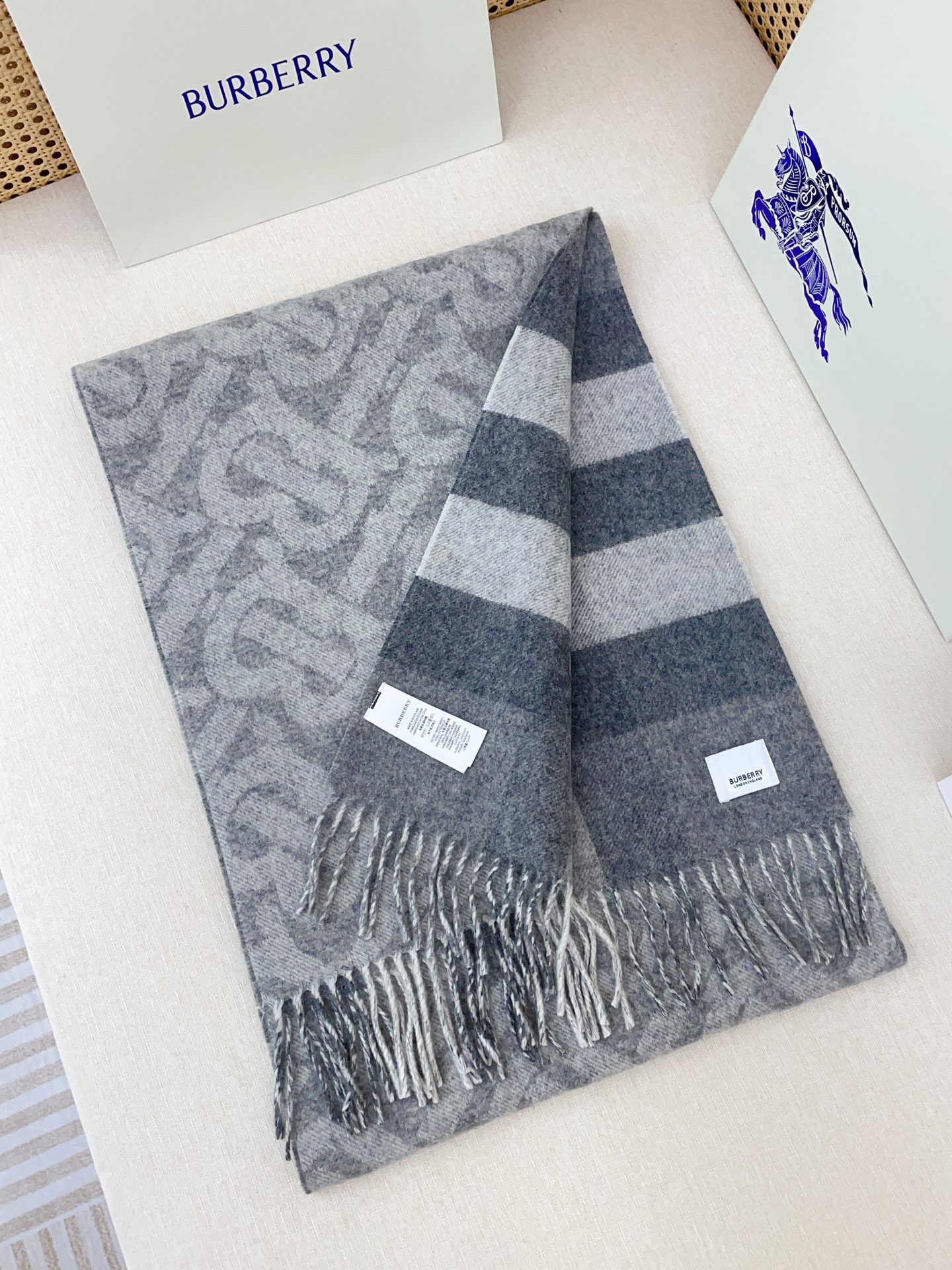 🧣Top version🧣 p【Light Grey】Double-sided scarf! One side is the latest Tb print and the other side is the classic plaid! Very stylish design! cm, 50% cashmere 50% wool! It is the embodiment of the charm of elegant art! The scarf style is unisex and can also be made into a couple style! The color combination is extremely high-end and classy! The material is soft and has a particularly three-dimensional effect, and it looks super good when worn! You can mix and match as you like, one can be used as 2! Very cost-effective and versatile! Official 2 colors, each color combination is just right! A design that is both simple and elegant! !
