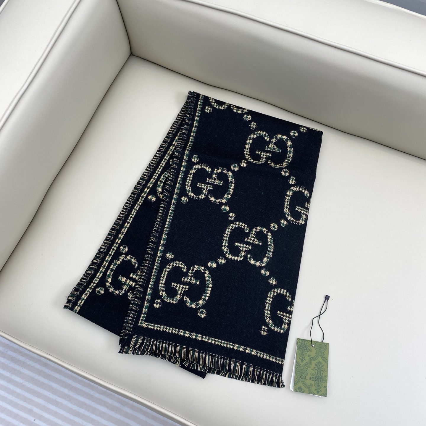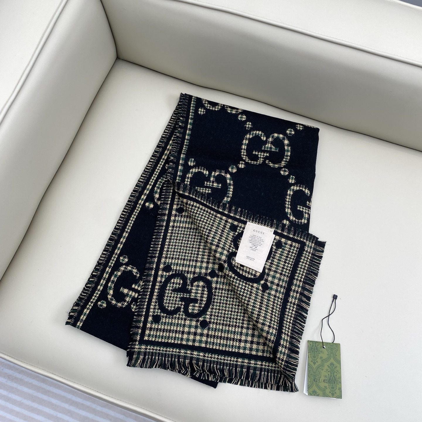 🧣Top version🧣 P 𝐆𝐆 style letters 47cm.0% wool decorated with the classic GG pattern inspired by the original Gucci diamond argyle design. The Double G monogram first debuted in the 1970s and has grown to become one of the brand’s signature symbols.