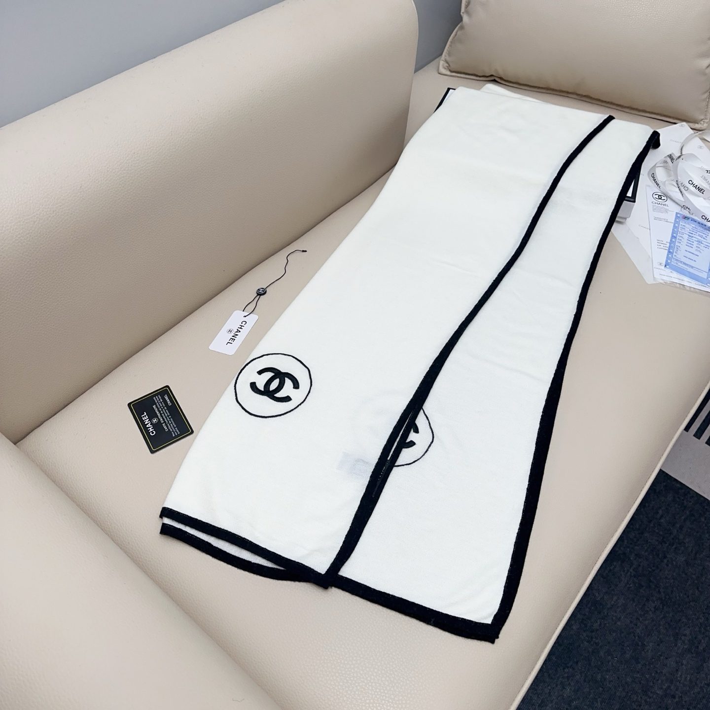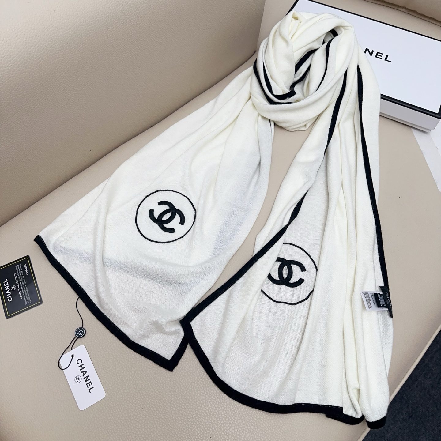🧣Top version🧣 % cashmere % silk, this scarf is really one of a kind. It will make you feel soft to the touch. Plus % silk, it guarantees that you have to apply hand cream before touching it. This combination makes your neck feel weightless. It is exactly the same as the real thing. It is really beautiful. Small quantity. Excellent quality. Classic black and white.