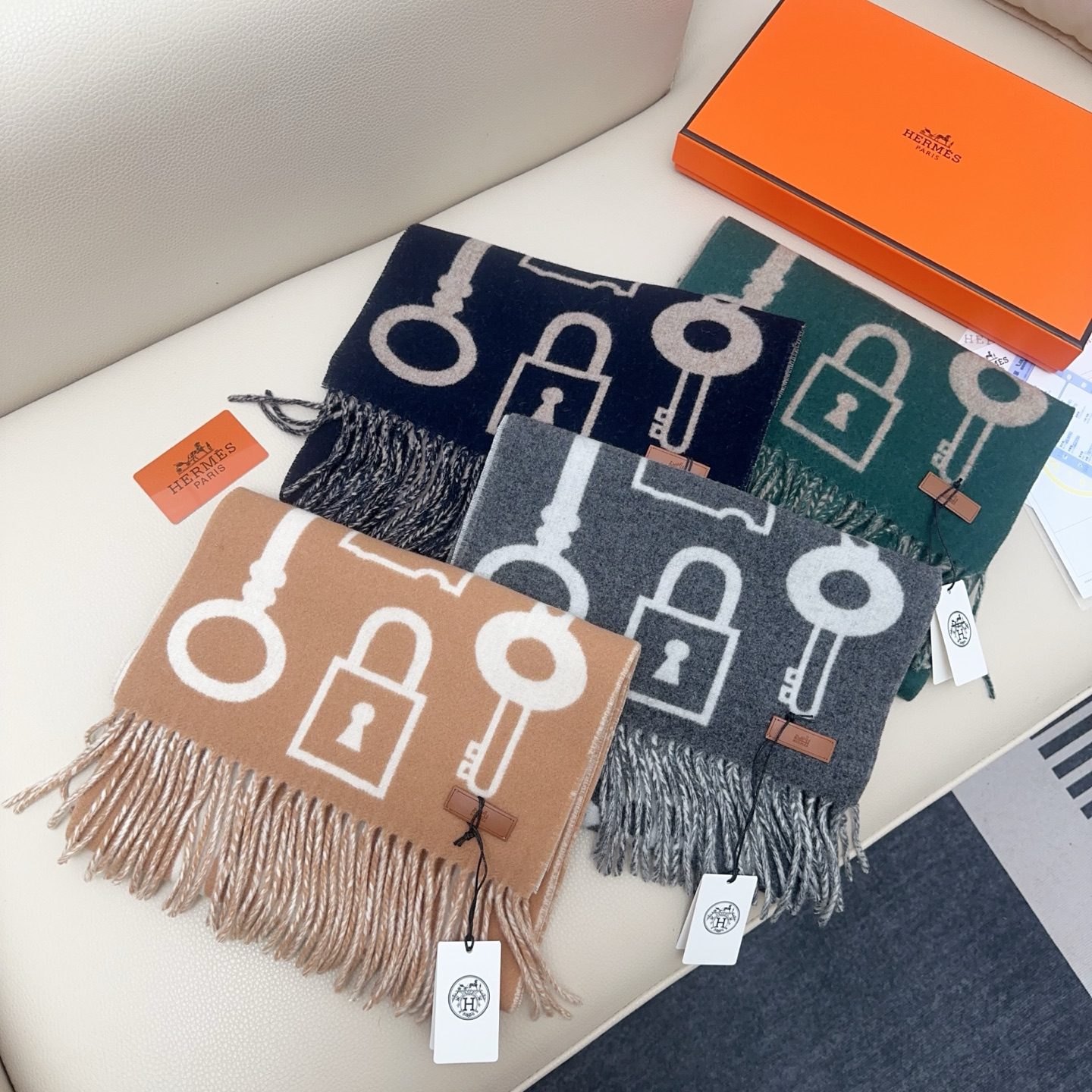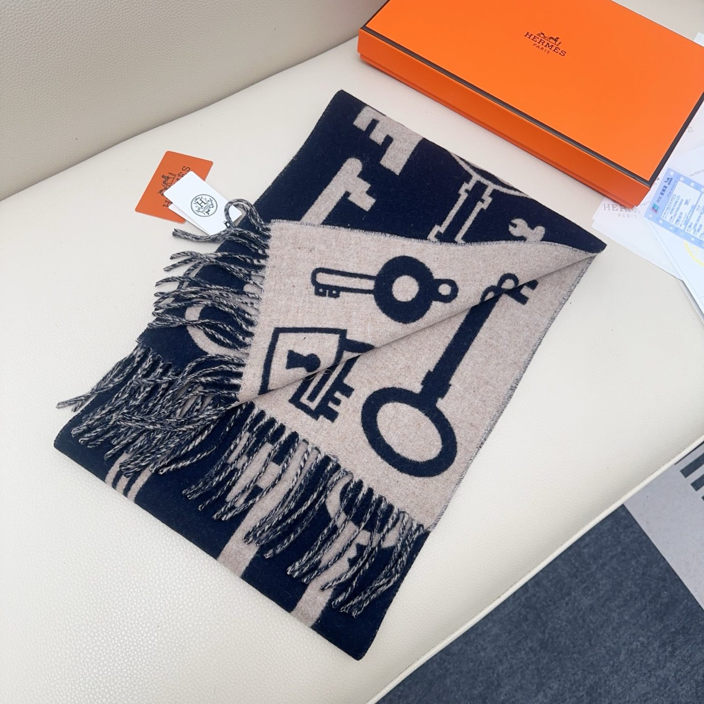 🧣Top version🧣 An H-key double-sided cashmere scarf loved by the entire Internet, Casaque Porte-Clefs is soft and delicate to the touch. It is soft and light as a cloud. The unique design pattern highlights the brand’s excellent artistic taste and exquisite craftsmanship. Whether it is used as a daily match or as a gift to relatives and friends, it is an impeccable choice. Size️