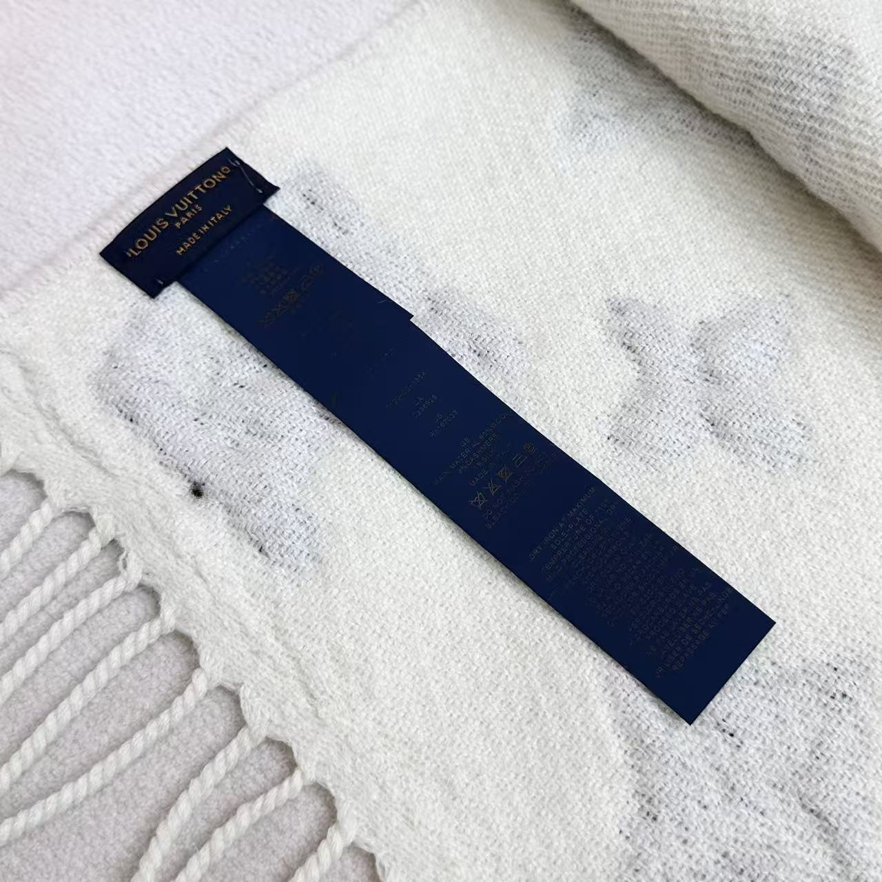 🧣Top version🧣 .00 The latest hot style in 2025 is here LV cm (height x length) 90% sheep wool, 9% cashmere, 1% mulberry silk 3D effect Monogram pattern Louis Vuitton logo tassel trim