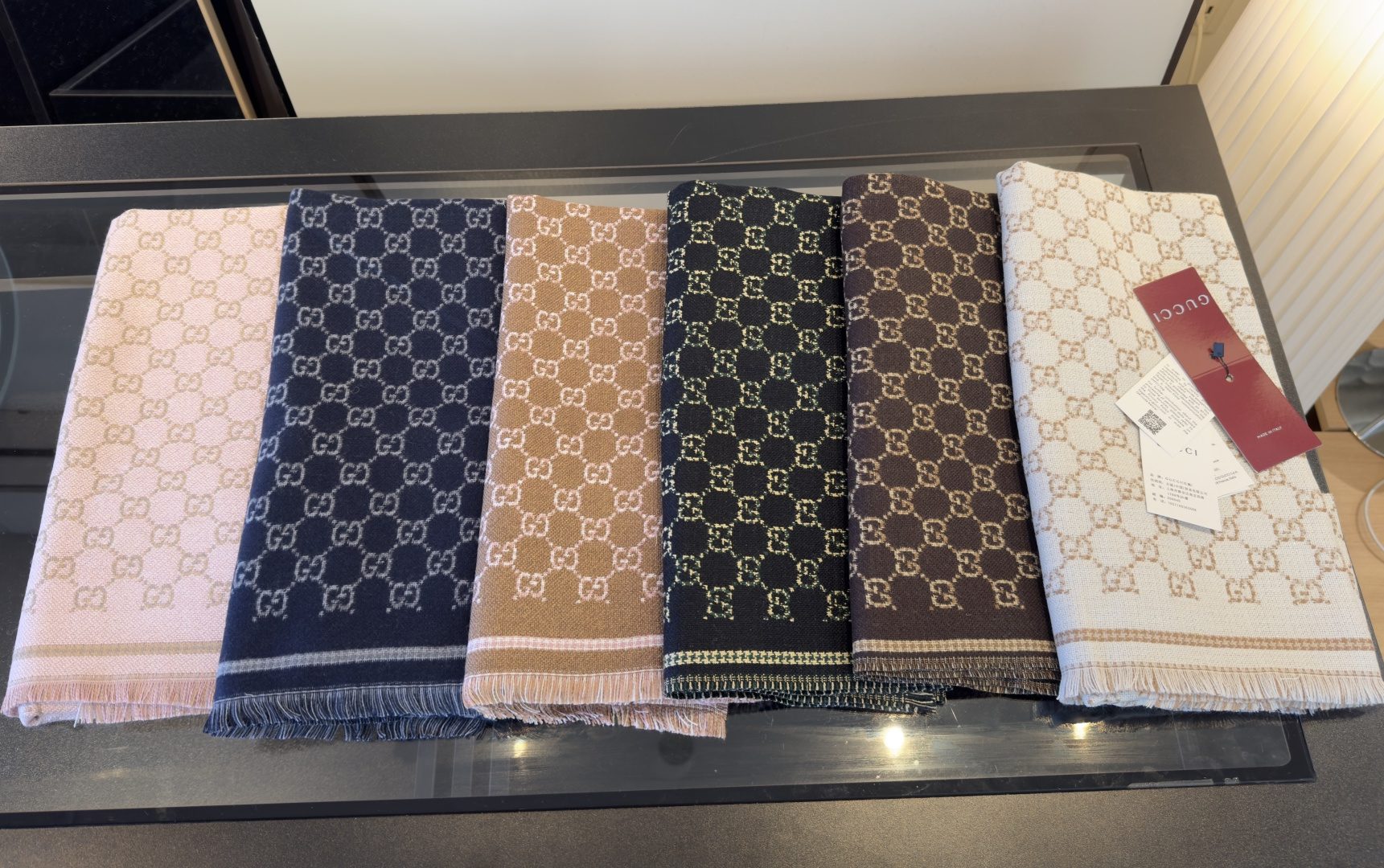🧣The top version on the market🧣 ¥𝐆𝐆 style letters 47cm.0% wool decorated with a classic pattern inspired by the original diamond rhombus design. The Double G monogram first debuted in the 1970s and has grown to become one of the brand’s signature symbols.