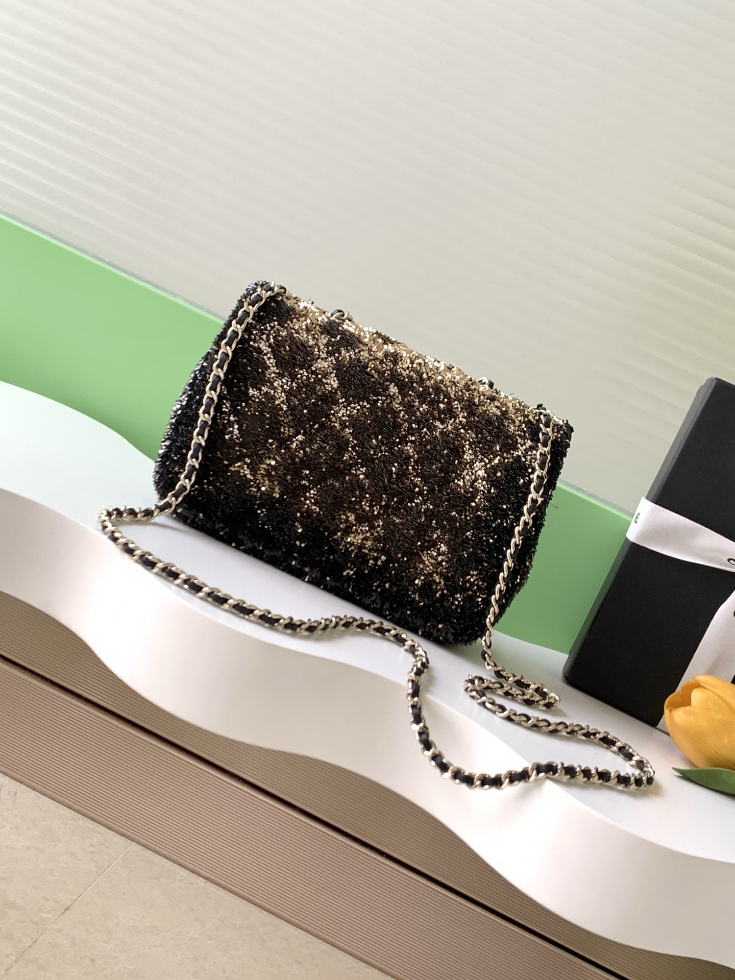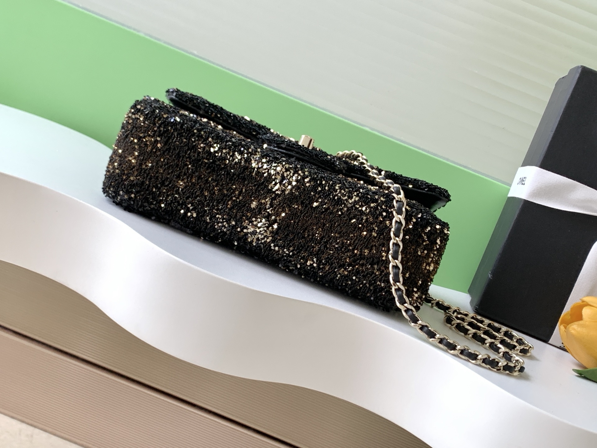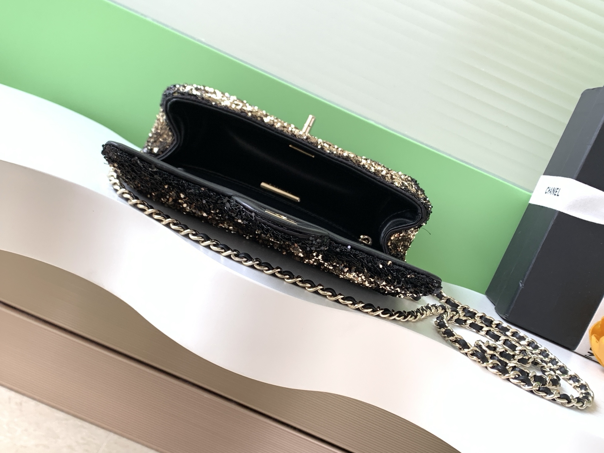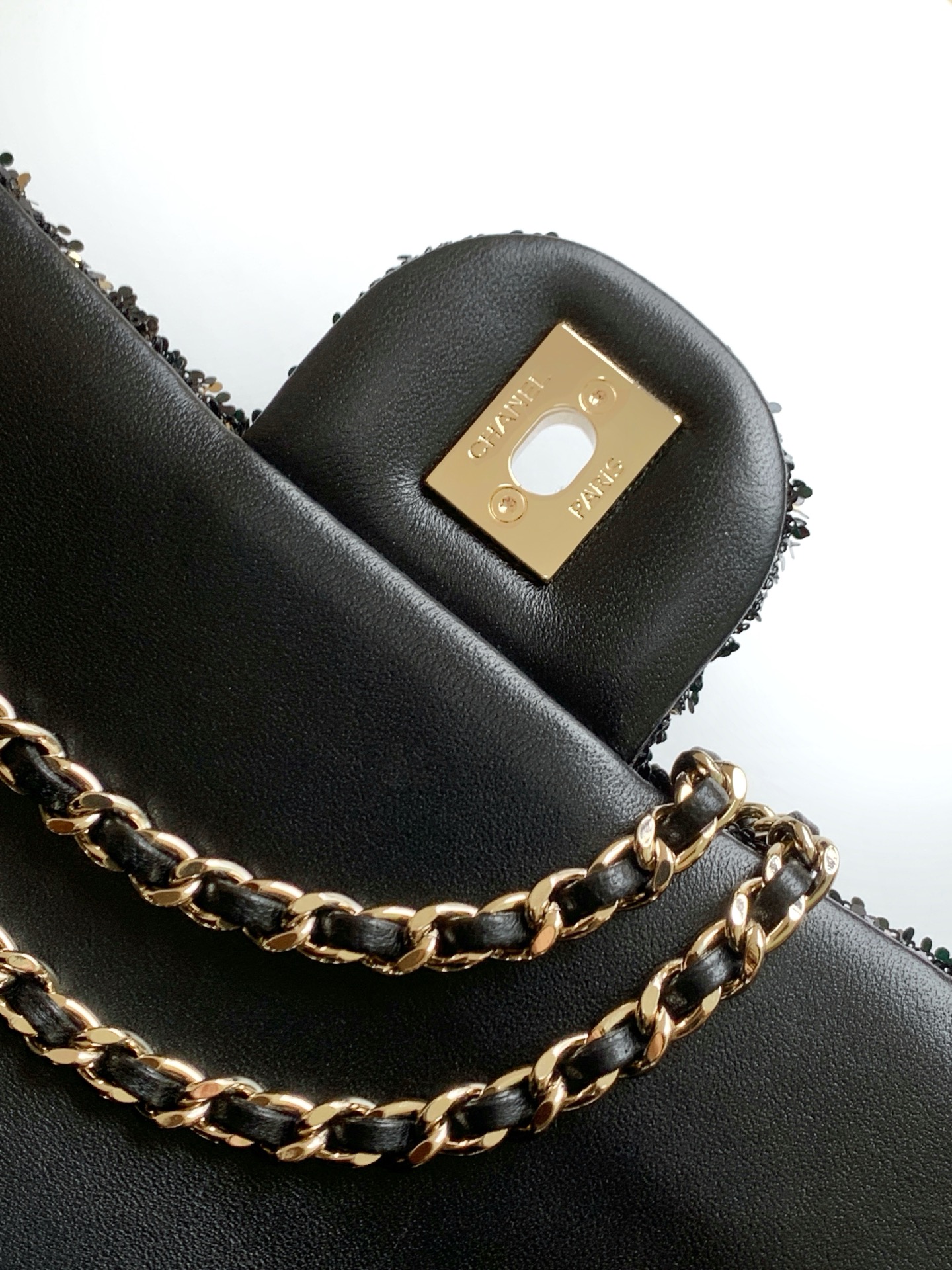 0 25b embroidered grid CF ultra-shiny sequin autumn and winter filter, SO BLACK is super cool in the streets and is simply beautiful. Super rare hot-selling sequins with super cost-effectiveness. The most worth buying bag this season. The color sequins are spliced, sparkling and cute, which simply infinitely amplifies its charm. Elegance and fashion trends are synonymous with it. It is also very suitable as an evening bag. It is a style that can be treasured for a lifetime. Size AS4298
