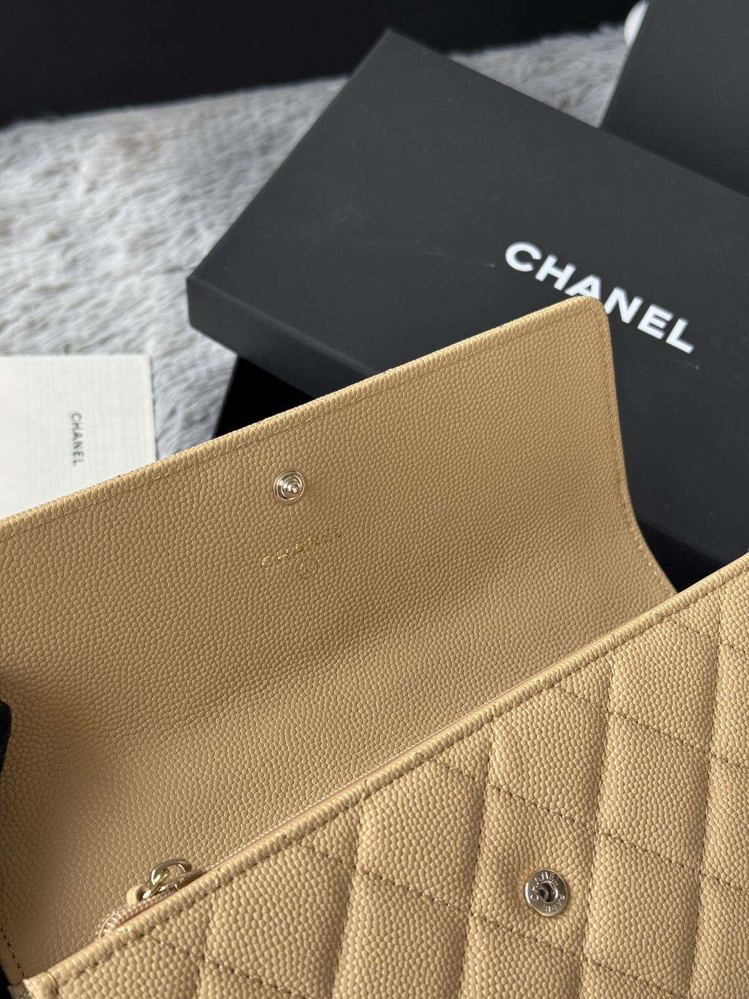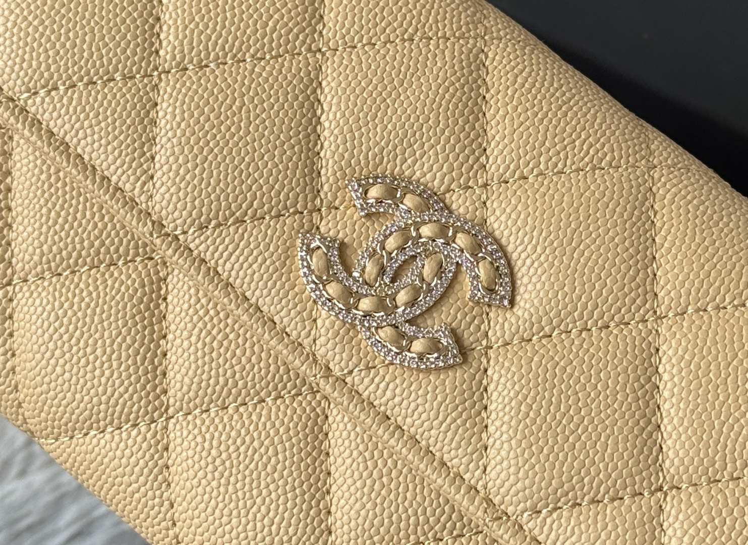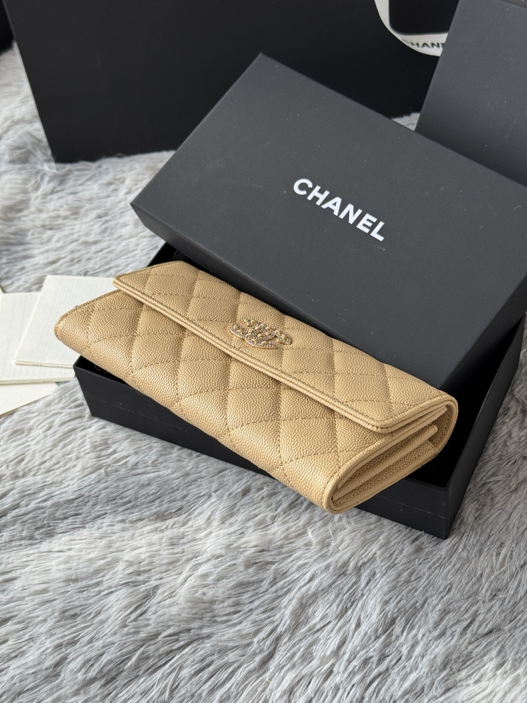 0 CHANEL. The two-fold wallet with long clip flap has arrived. The caviar first-layer cowhide is matched with the new luogo. It is also made of leather and is surrounded by diamonds. The design details are so beautiful. Model No. Ap2740B, size .5cm.