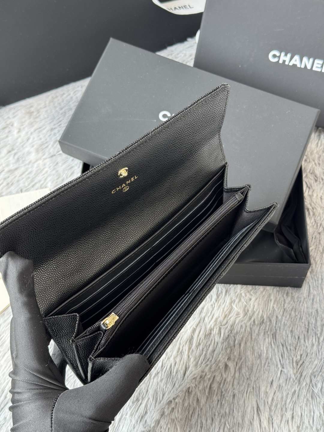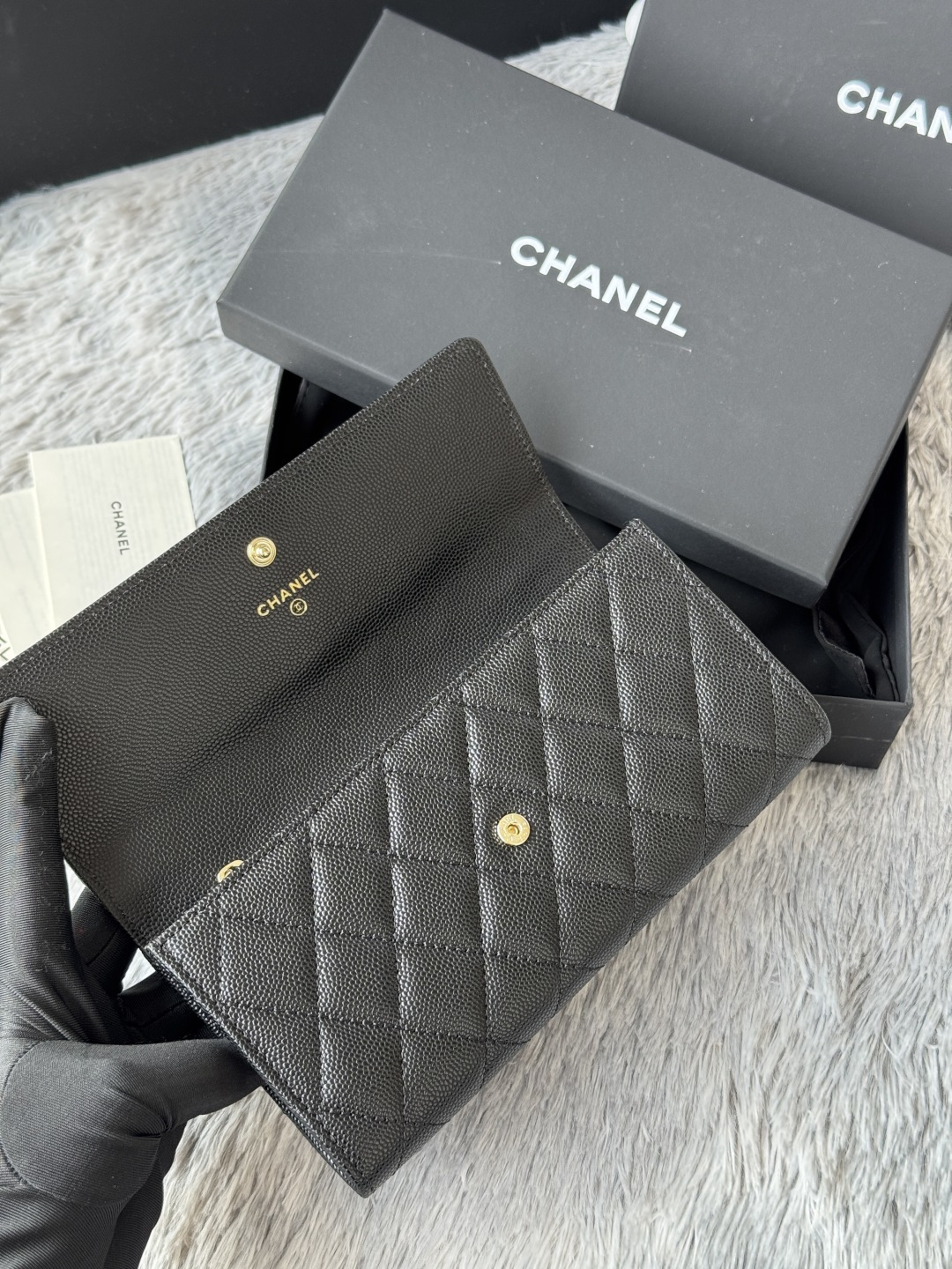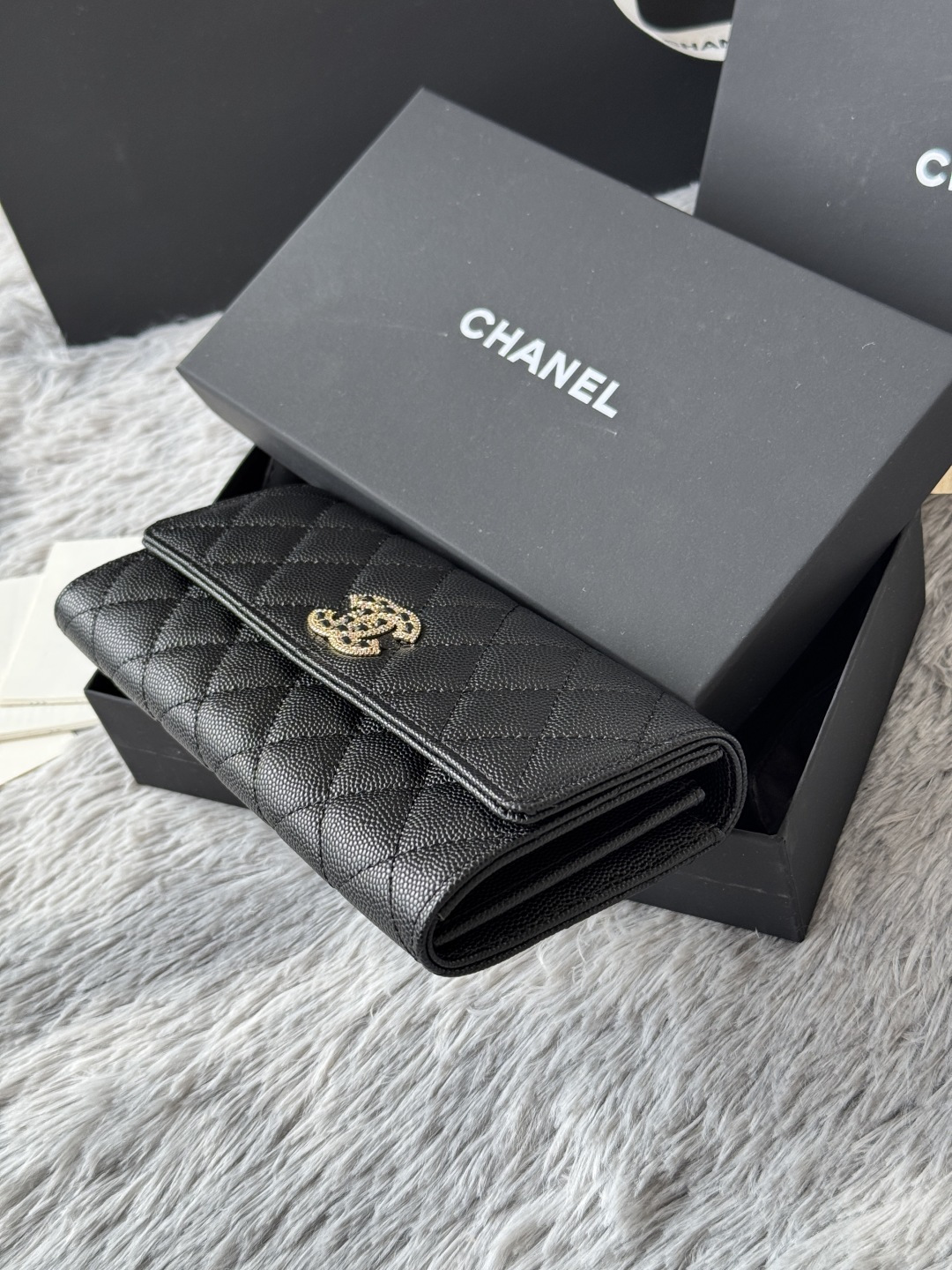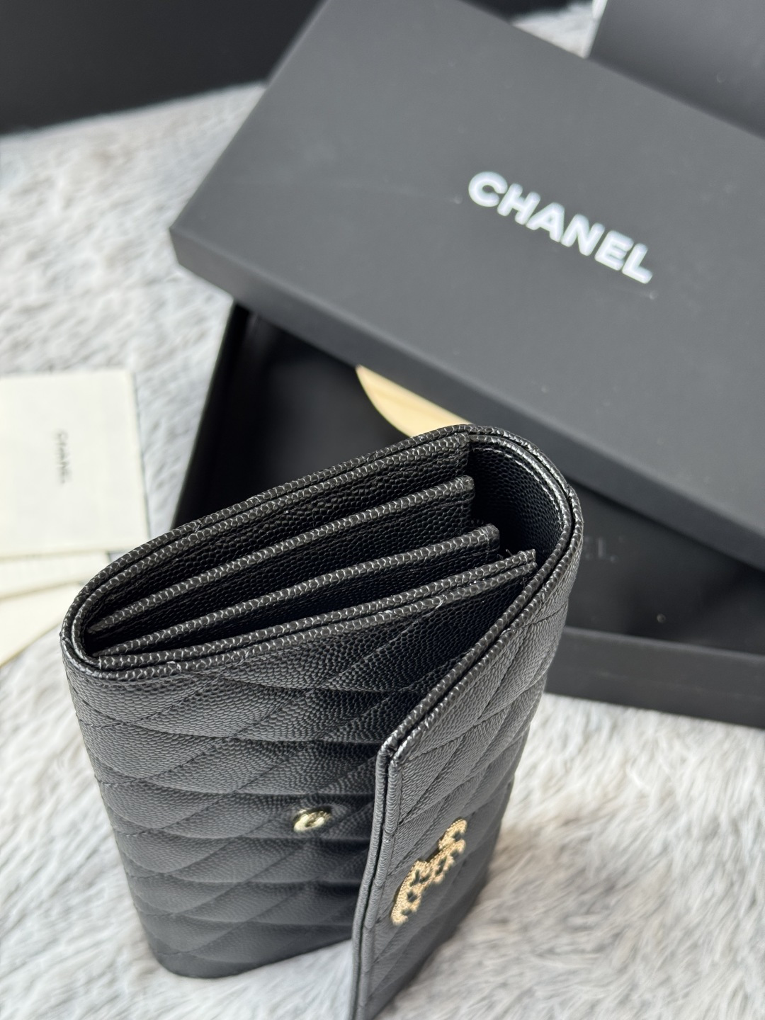 Bag Chanel  CHANEL. Two-fold wallet with long clip flap has arrived. Caviar first-layer cowhide with new LU