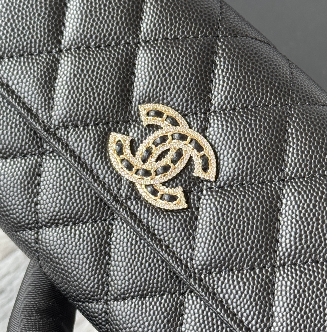 0 CHANEL. The two-fold wallet with long clip flap has arrived. The caviar first-layer cowhide is matched with the new luogo. It is also made of leather and is surrounded by diamonds. The design details are so beautiful. Model No. Ap2740B, size .5cm.