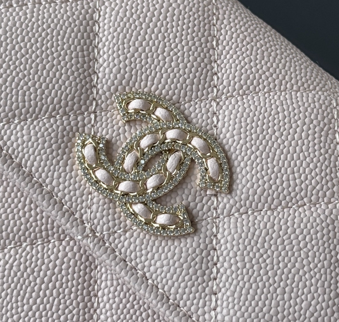 0 CHANEL. The two-fold wallet with long clip flap has arrived. The caviar first-layer cowhide is matched with the new luogo. It is also made of leather and is surrounded by diamonds. The design details are so beautiful. Model No. Ap2740B, size .5cm.