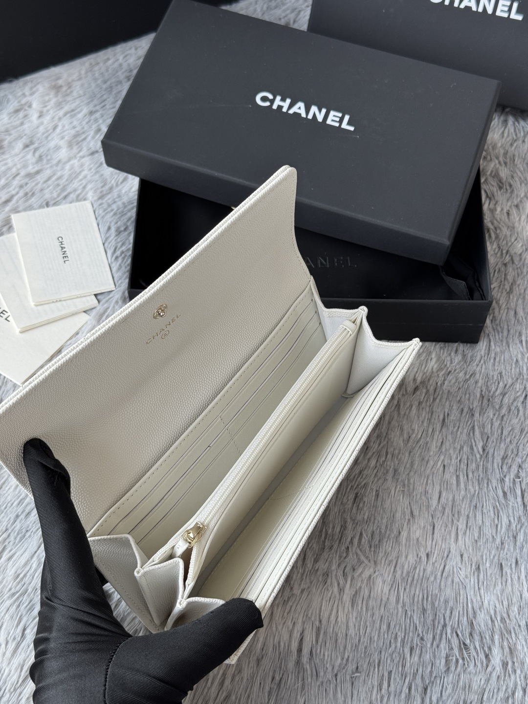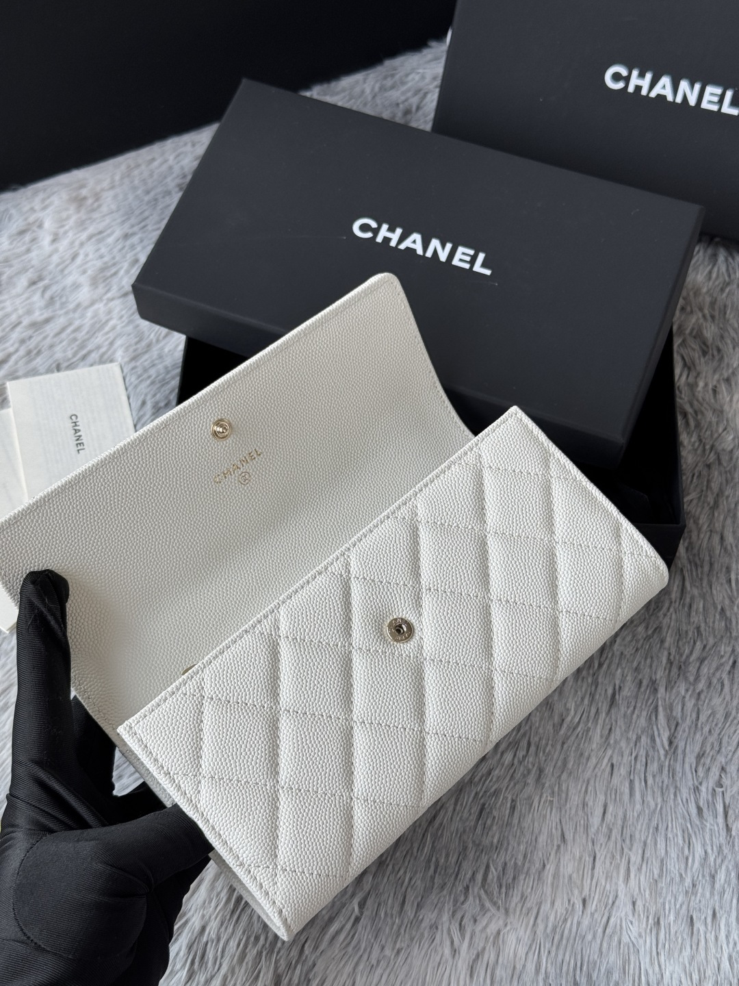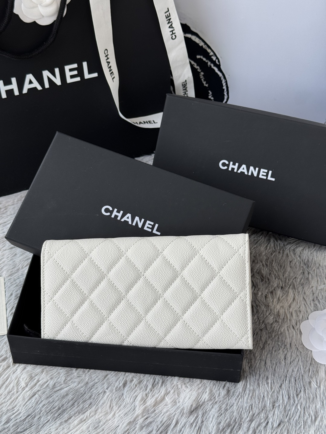 0 CHANEL. The two-fold wallet with long clip flap has arrived. The caviar first-layer cowhide is matched with the new luogo. It is also made of leather and is surrounded by diamonds. The design details are so beautiful. Model No. Ap2740B, size .5cm.