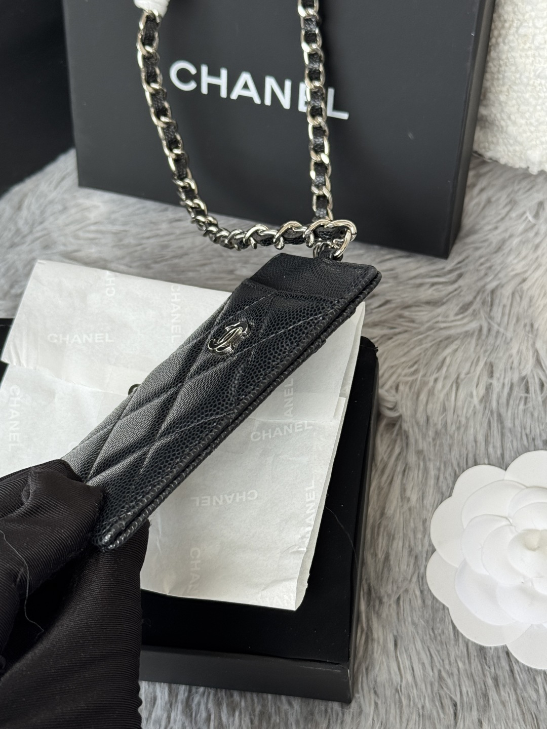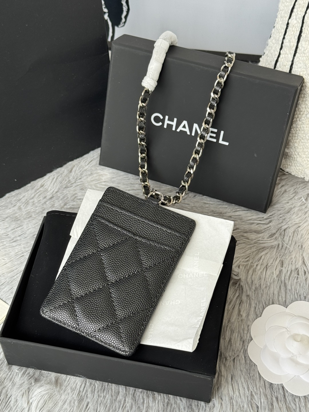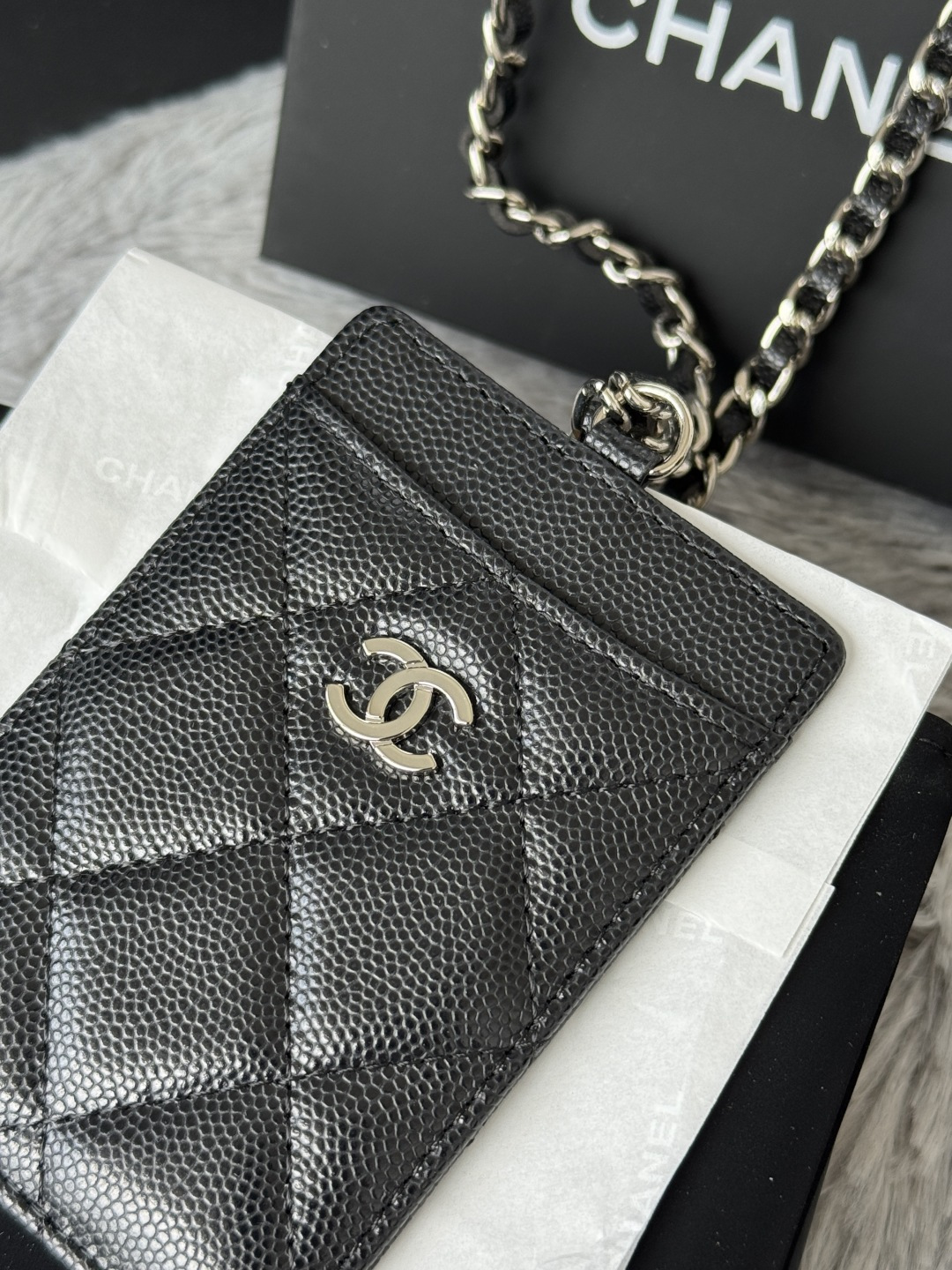 200 Chane’s latest work card holder, chain card holder, is really practical. It is made of caviar cowhide and is wear-resistant and durable. When you go out, you can put your door card, transportation card, change, and keys. It’s great. It can also be hung around your neck as an accessory, and it can also be used as a waist bag. It’s dual-purpose in one bag, so practical! Size: .5 x7 x0.5cm Number: 88896_8