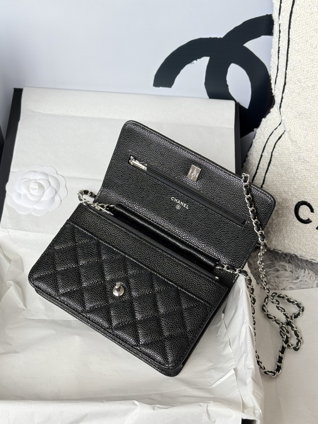 420 2025 chanel woc fortune bag new product, the most classic cross-body shoulder bag A variety of carrying styles, cool appearance, let you walk with wind, classic bag shape, square body, suitable for all daily styles. The bag body is made of caviar calfskin, which has a good gloss under natural light. The leather and feel cannot be expressed in words. Good things can also feel its perfect texture through the screen. The rhombus is full but not too convex, and the fullness is natural. This degree is difficult to grasp, and most of the market makes it too full! The forefront of magnificence and temperament is your unexpected dignity. Imported Italian cowhide with original fabric lining. Hardware steel wheat size: cmX3cm No.: AP4241