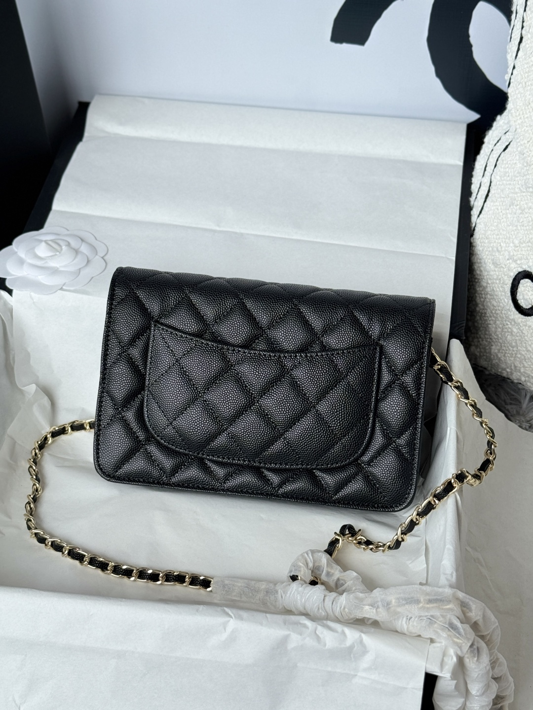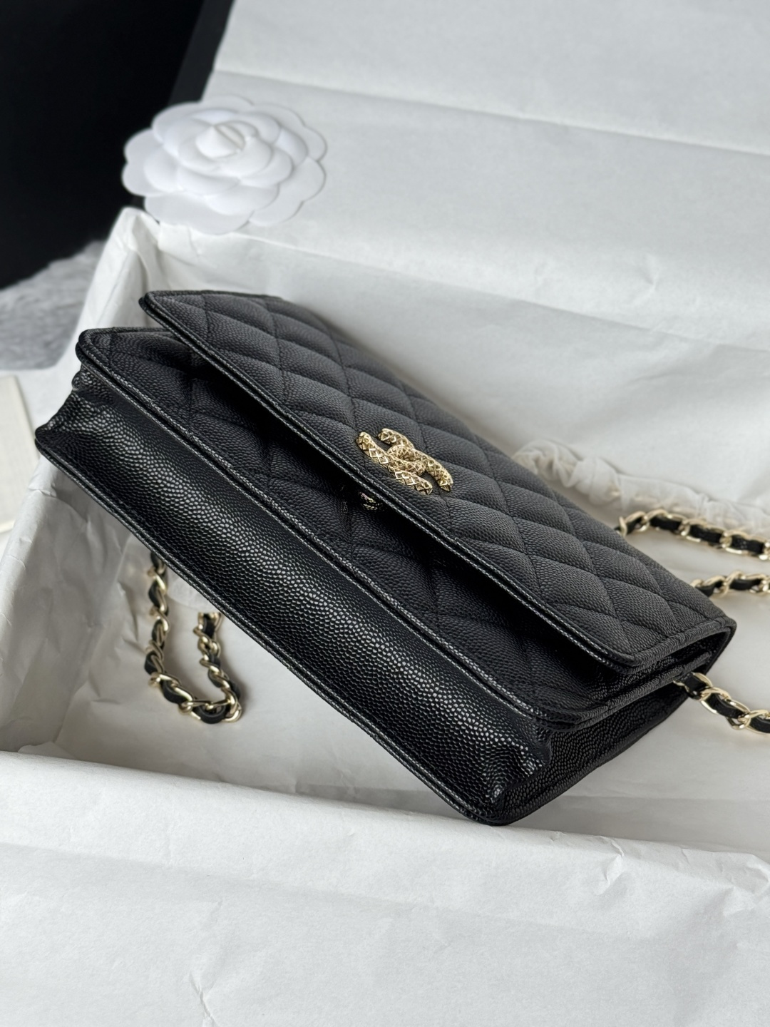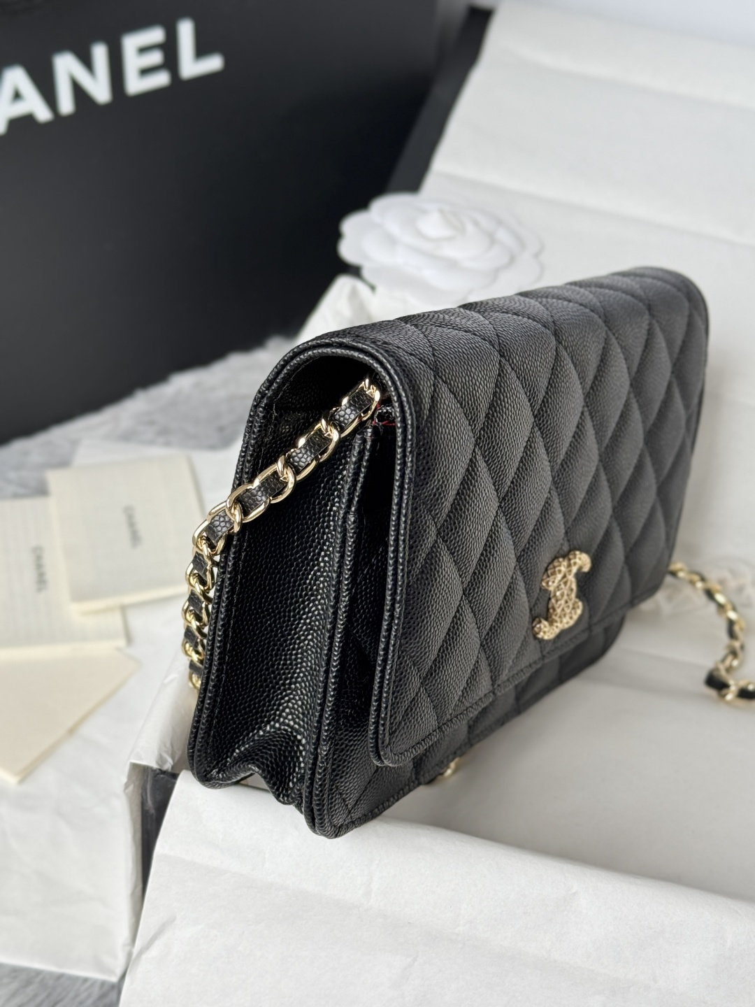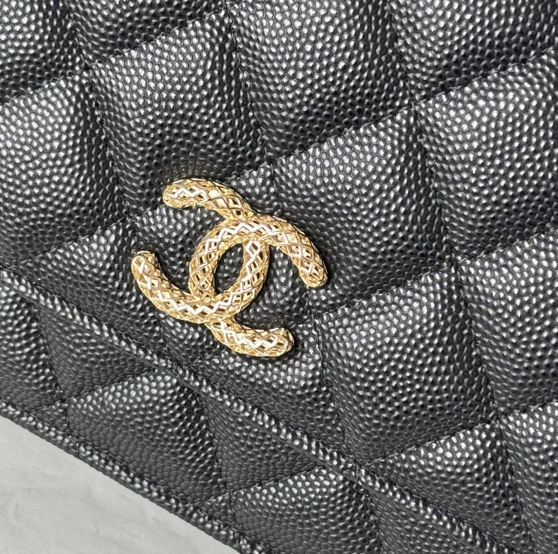 460-chanel -23s hollow woc number: AP3 single compartment crossbody bag. The metal is retro gold, the upper body is very shiny, gold buckle calfskin caviar small particles, super beautiful size: cm