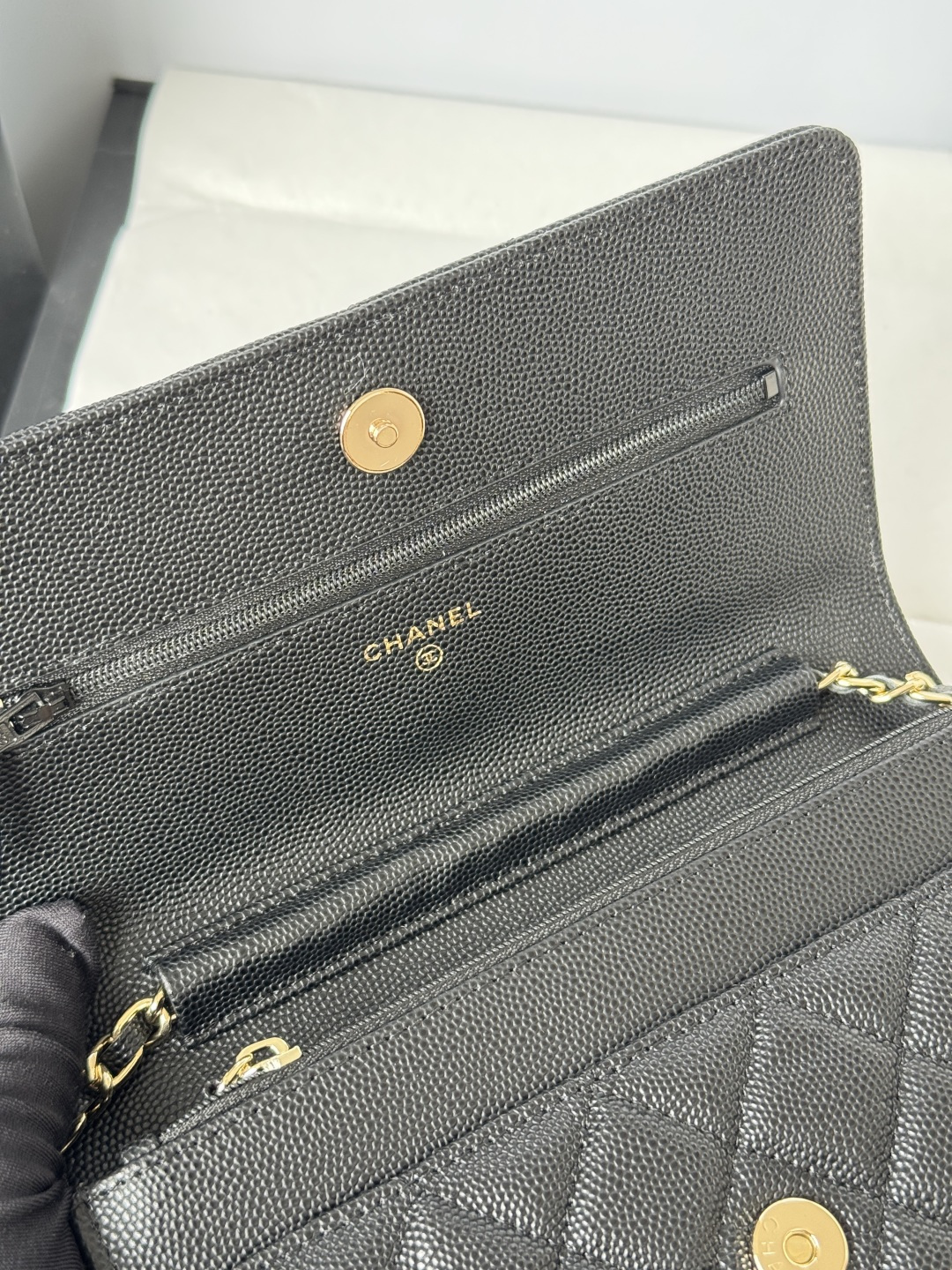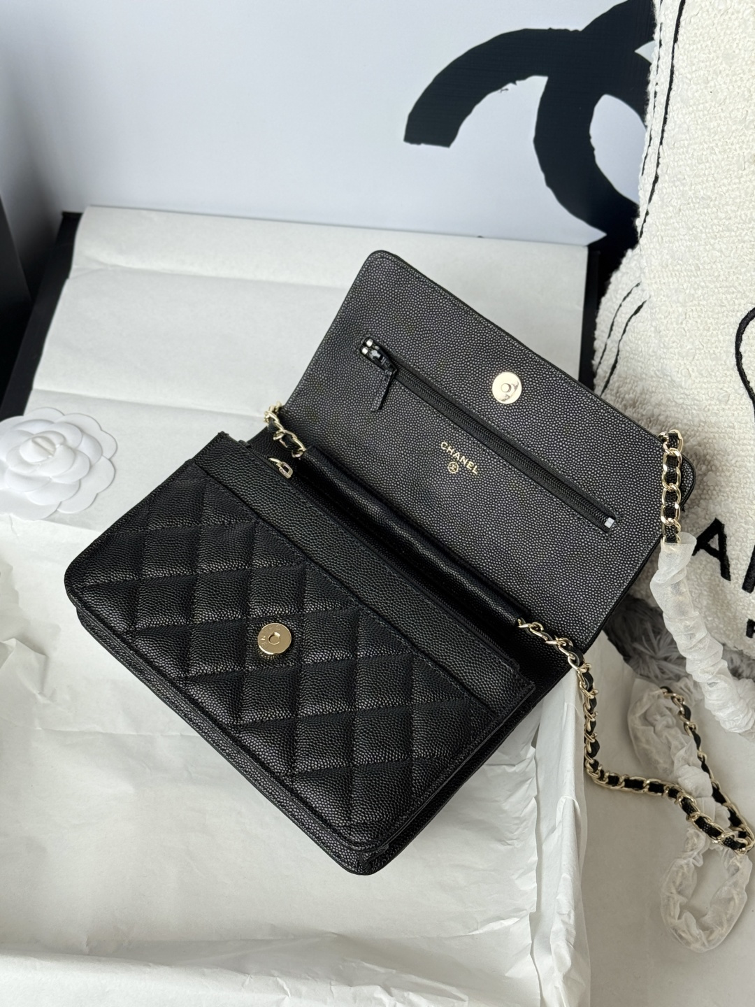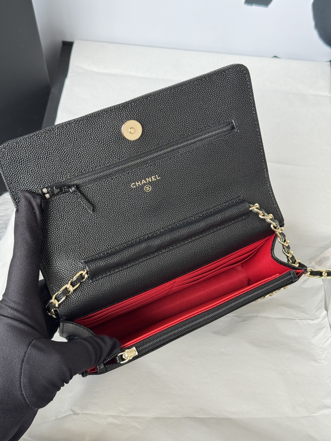 460-chanel -23s hollow woc number: AP3 single compartment crossbody bag. The metal is retro gold, the upper body is very shiny, gold buckle calfskin caviar small particles, super beautiful size: cm