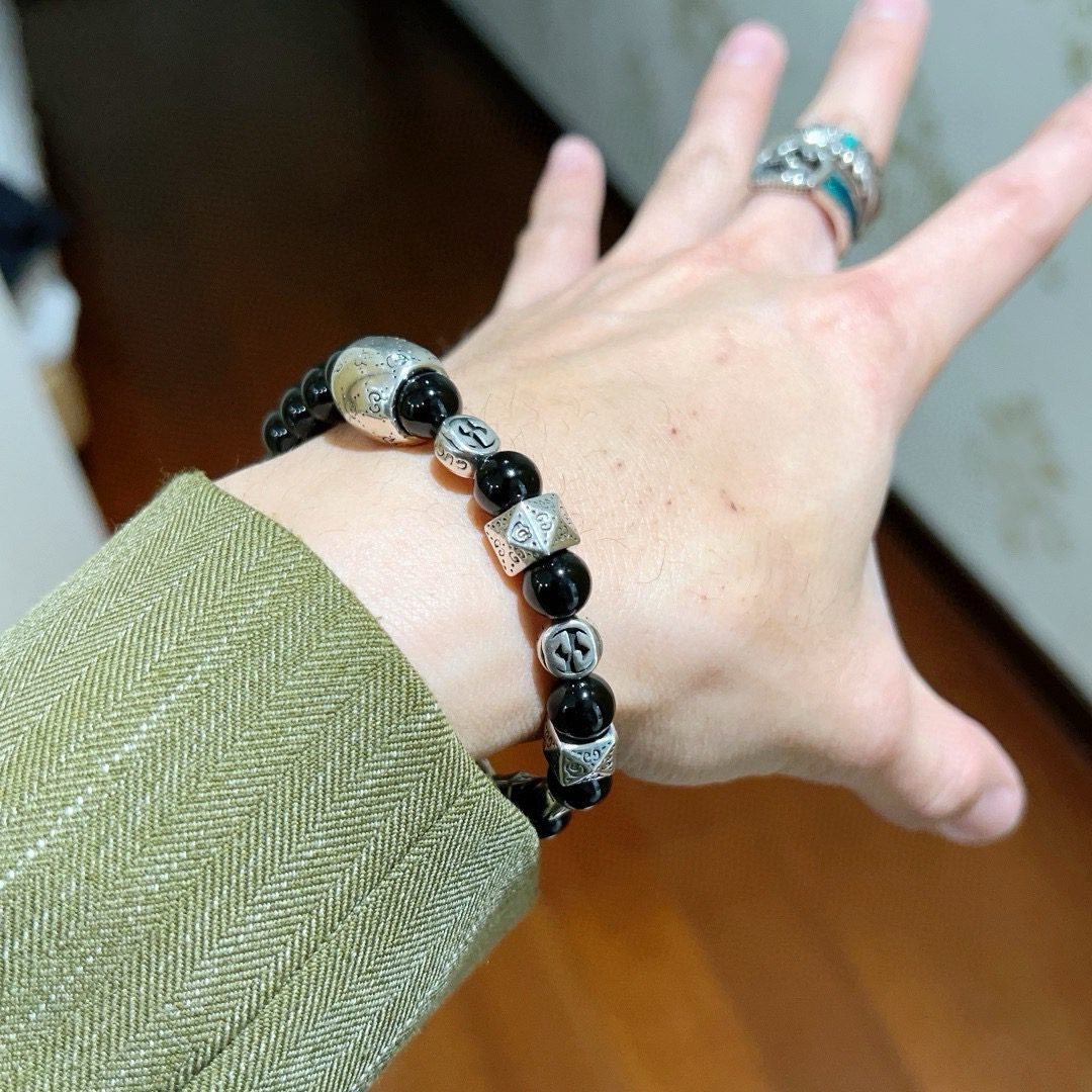 Scarf5 𝐆𝐮𝐜𝐜𝐢Gucci bracelets for men and women, the latest natural black agate bracelet