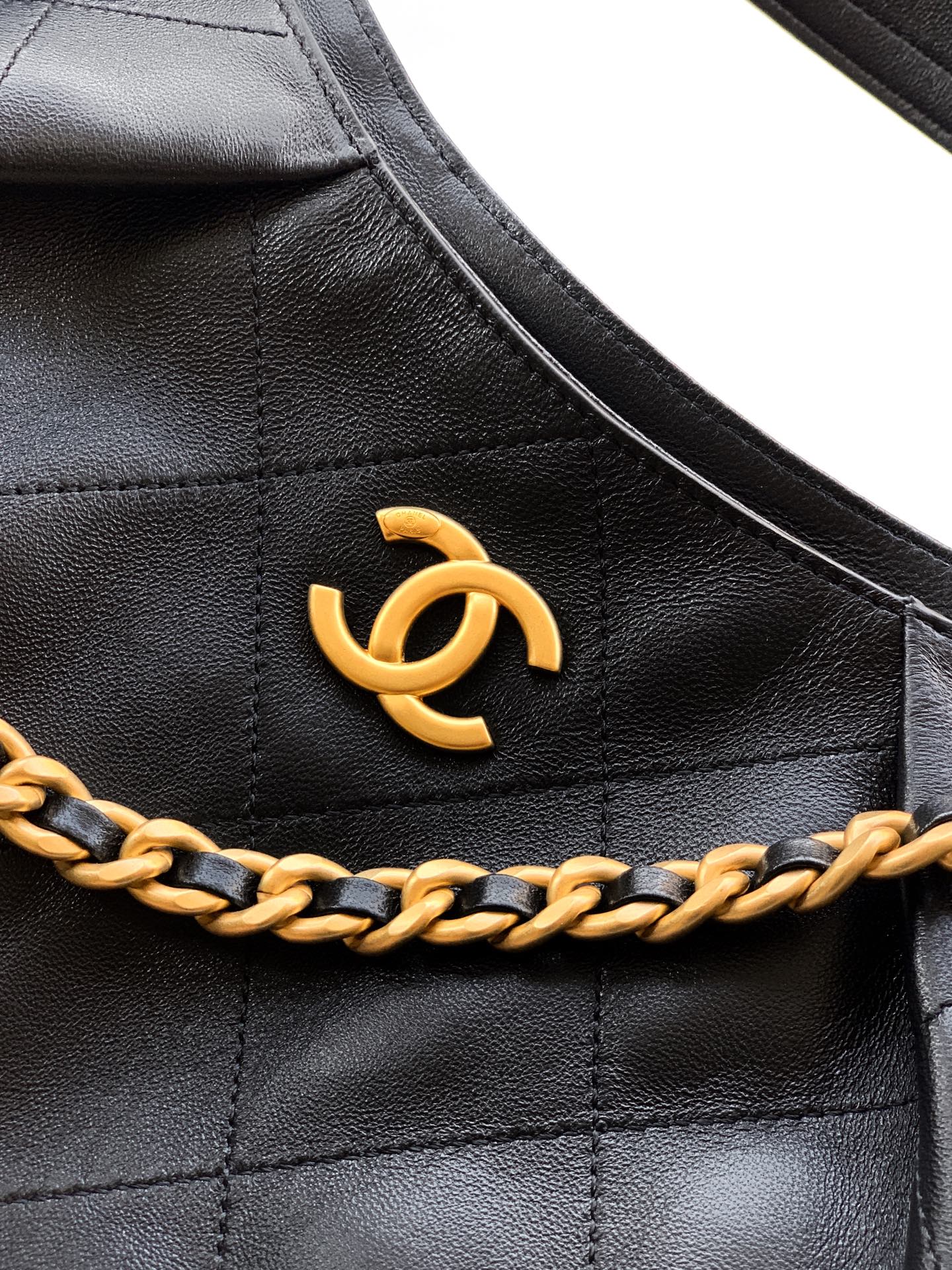 50 ️ size cm! “Black Leather” OHANEL26C early spring new leather brown hippie hobo bag. The latest leather is special. The hippie hobo leather is full of autumn and winter atmosphere ~ Dumpling bag shape, fashionable and eye-catching, very versatile with light-colored clothes ~ The hobo capacity is still large, enough for daily use ️ ~ The handle + metal chain are used as embellishments, full of design ~ Medium size: cm