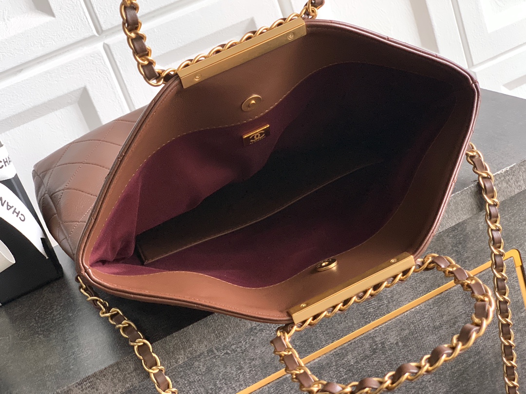Home BAG Women's Bags Chanel Bag Chanel 5 large leather “Coffee️Dark Brown” feels soft and delicate! “Hebei, Hebei, Hebei” three