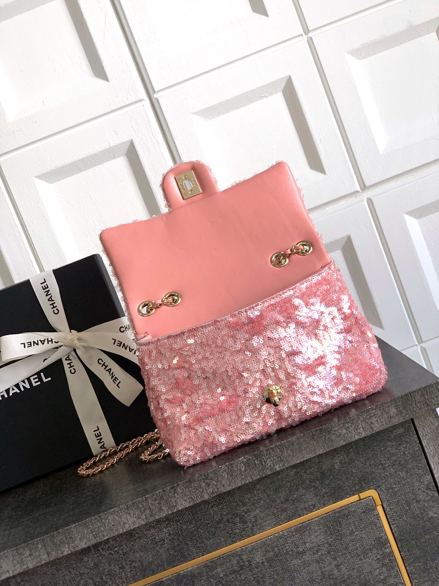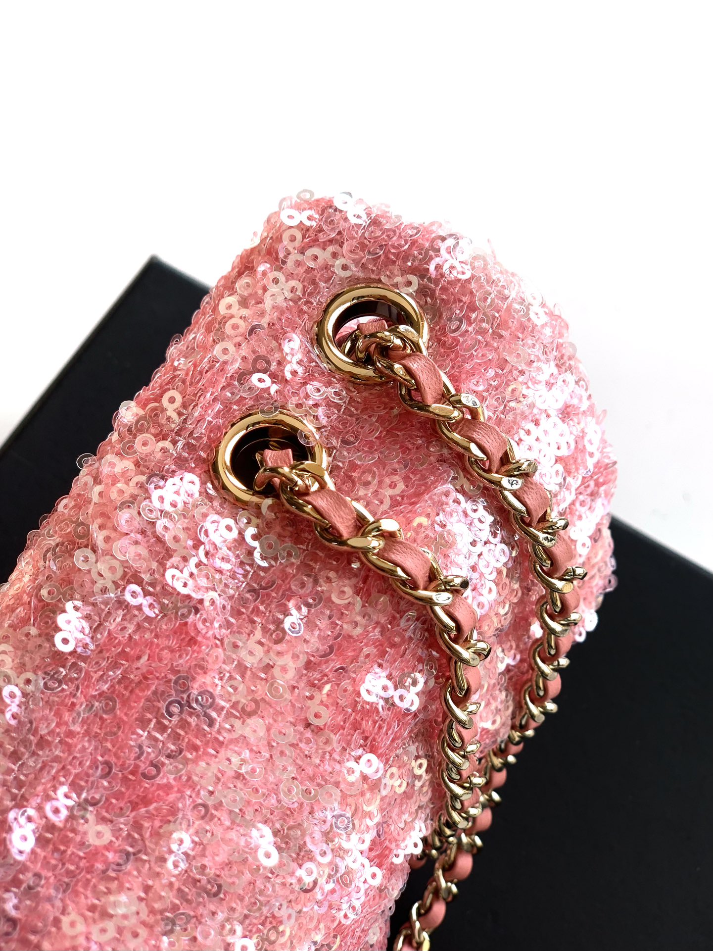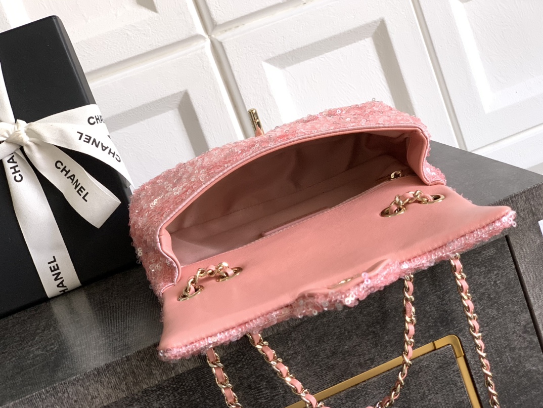 50 “Pink Sparkling Diamonds” logo embellishment, beautiful OHANEL dense sequins, shaped CF super sparkling sequins and sequins are included in the summer filter, SO BLACK is so cool that it’s so beautiful. It’s a rare hot-selling sequin. It’s very cost-effective. It’s the most worth buying bag this season. The color sequins are spliced, sparkling and cute, which magnifies its charm infinitely🫡🫡Elegance and fashion are synonymous with it. It’s also very suitable as an evening bag. It’s a bag that can be treasured for a lifetime. 20cm