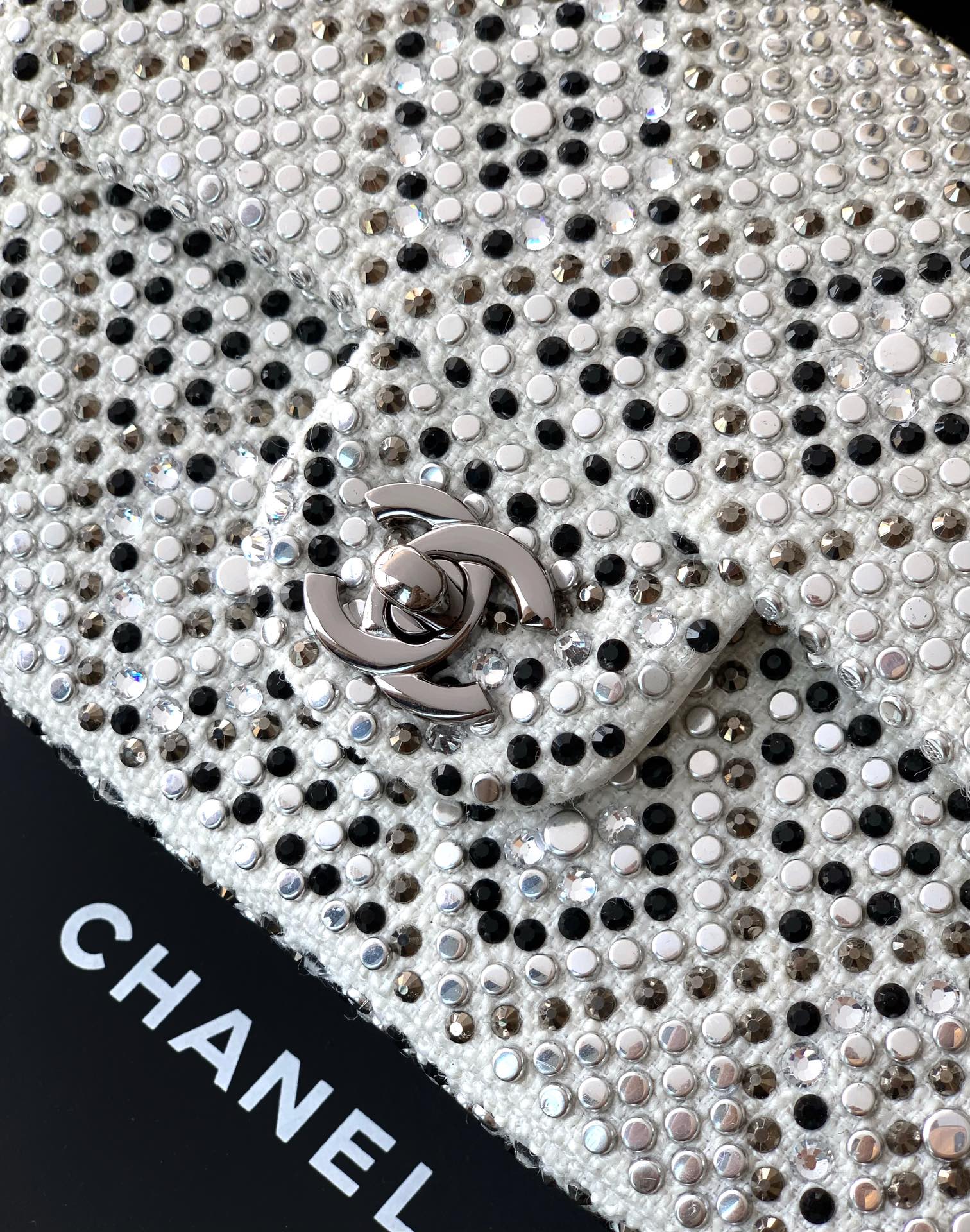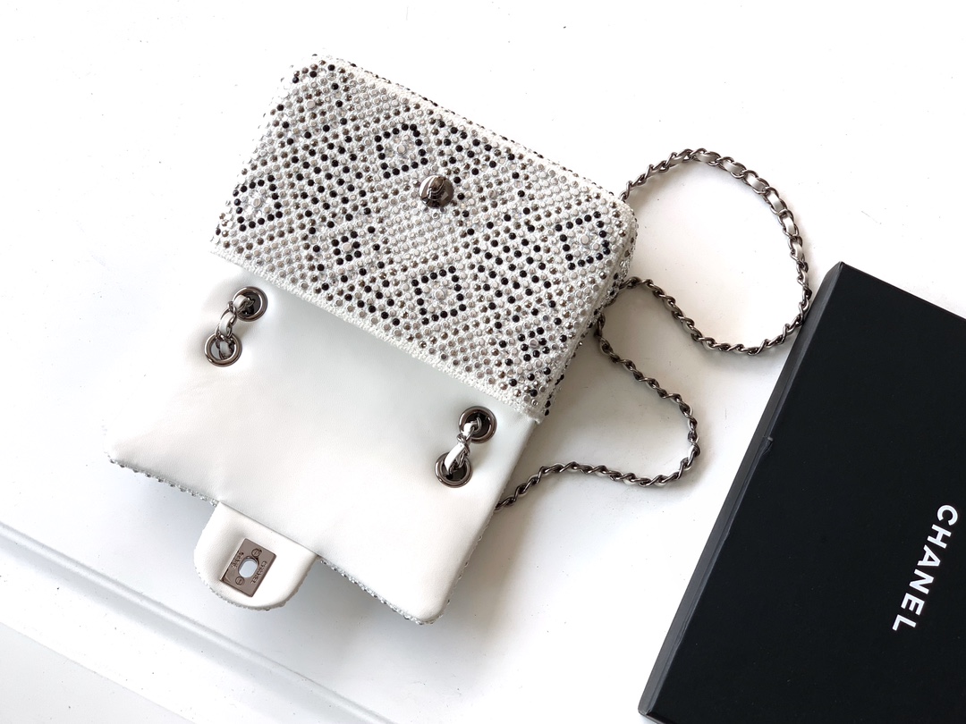 50 Mini “Black Diamond” OHANELCF mini full diamond limited edition series ️Diamond CF is out. It is hard to find a pack at the counter and it is extremely difficult to develop. It is not too dreamy. The full diamond CF style is like stars falling into the world. Every diamond exudes luxurious luster. 🤩The tone of black and white is deep and mysterious. When paired with rhinestones, the luster is like the brightest star in the night sky, elegant yet delicate. Every angle of the bag exudes beauty. Size: 20cm
