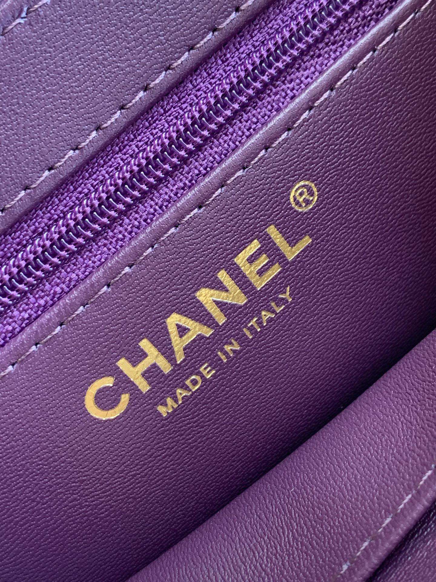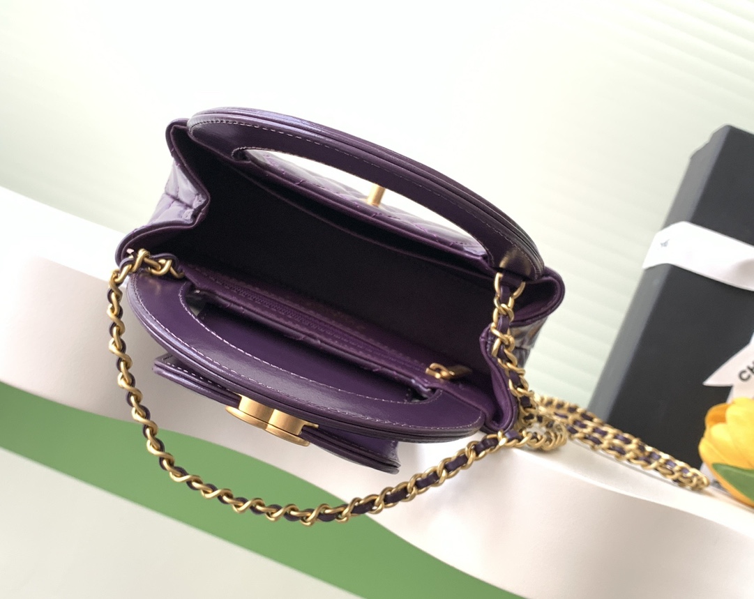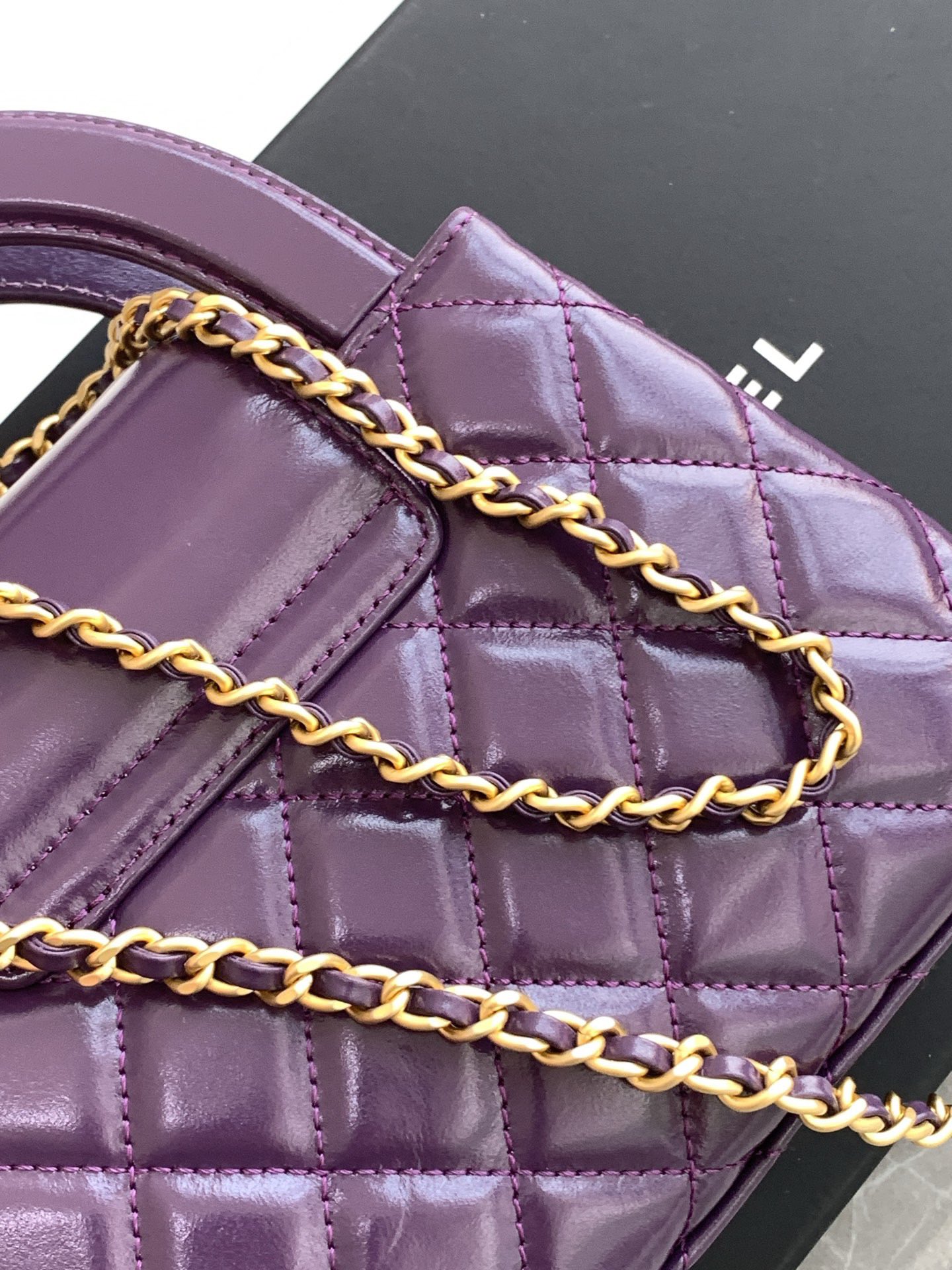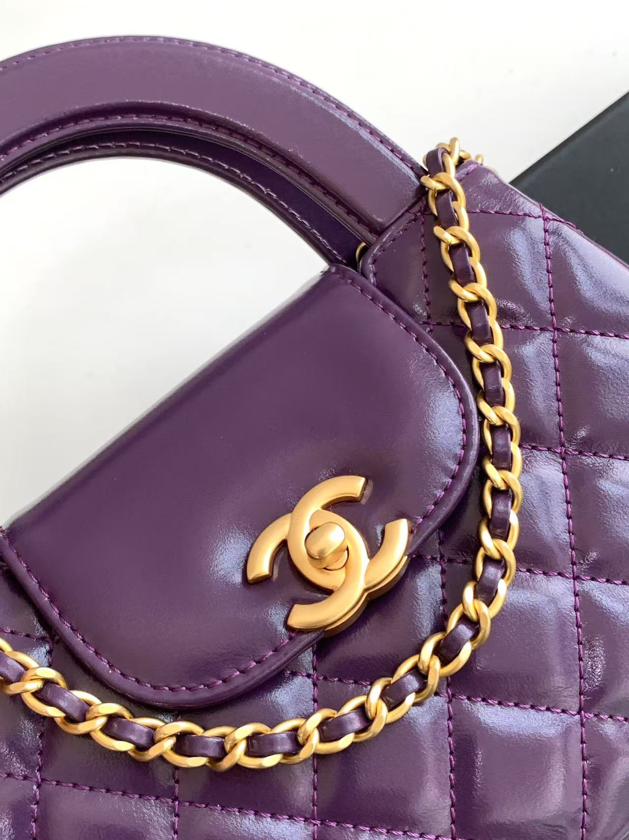 6 25c Kelly handle bag Fashion is a cycle. The popular middle-aged Kelly has been redesigned by Chanel and brought to life. The middle-aged Kelly is famous for its classic handle bag. It subverts the tradition by adding a leather chain shoulder strap to the foundation, making it more casual and convenient. Style number AS44 size, complete package, dark purple
