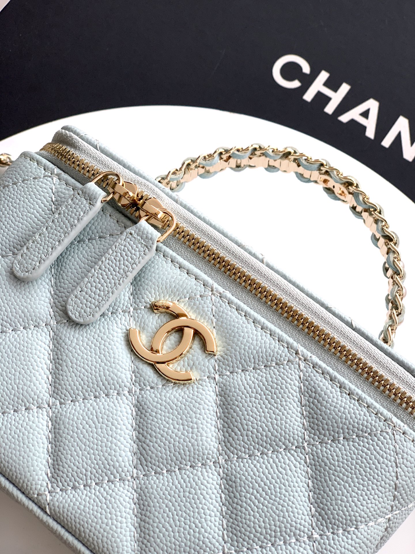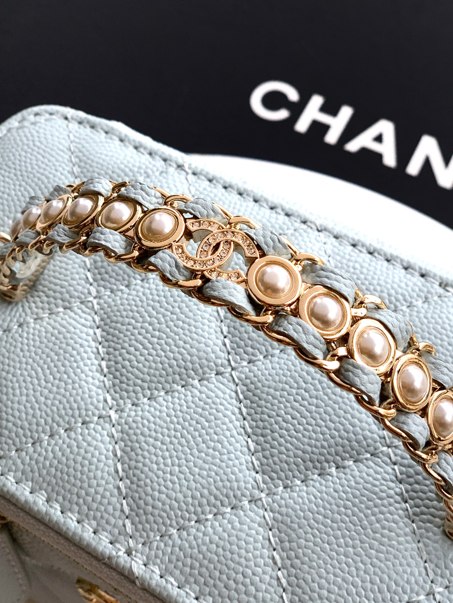 650 “Baby Blue” is exclusively shipped. OHANEL 26C Pearl Handle Logo Inlaid with Swarovski Diamonds Popular Box Bag Exquisite and Chic Chain Small Cosmetic Case Can Hold a Mobile Phone. The Capacity is Very Touching and Practical. It Comes with 8cm_