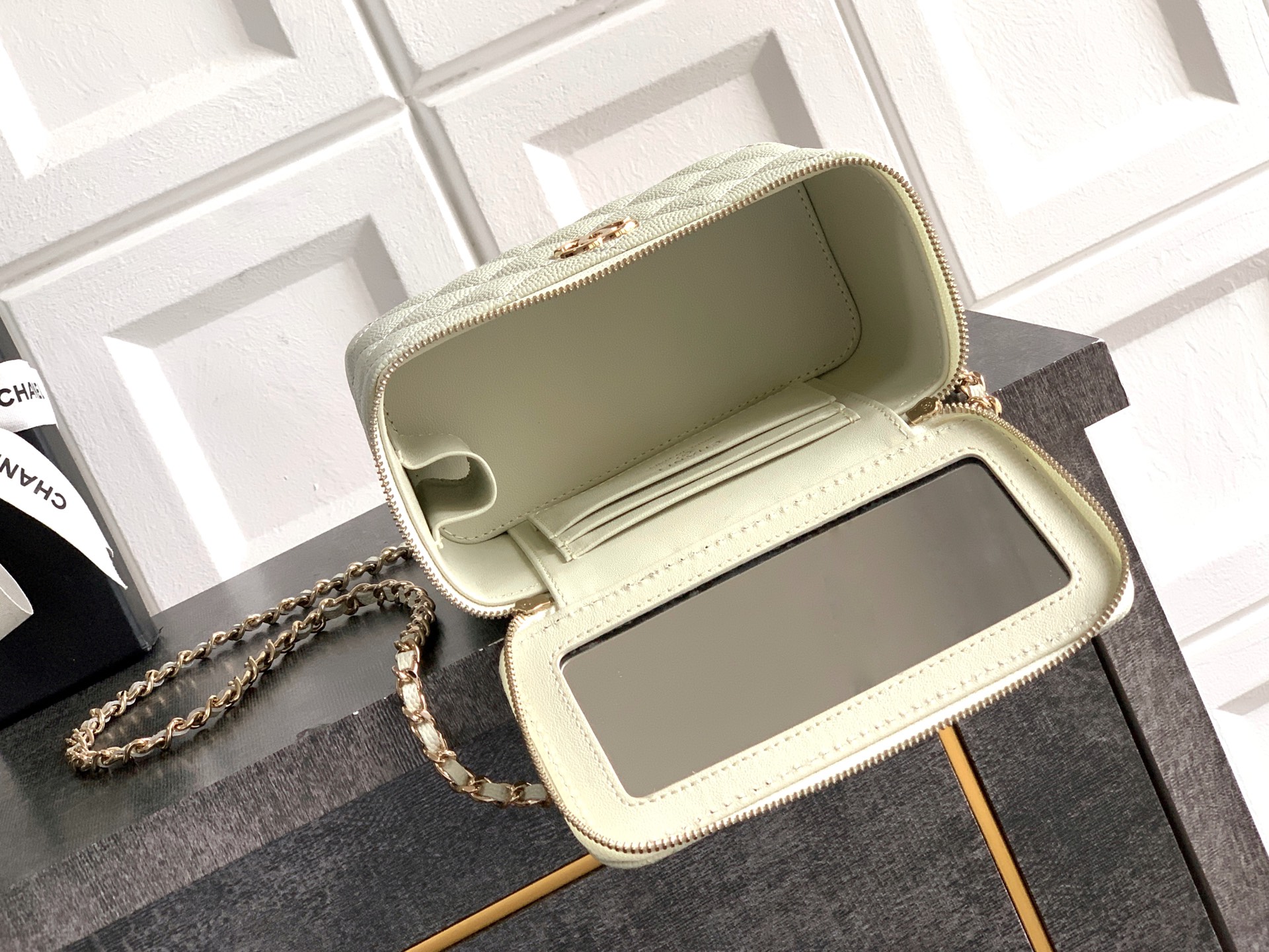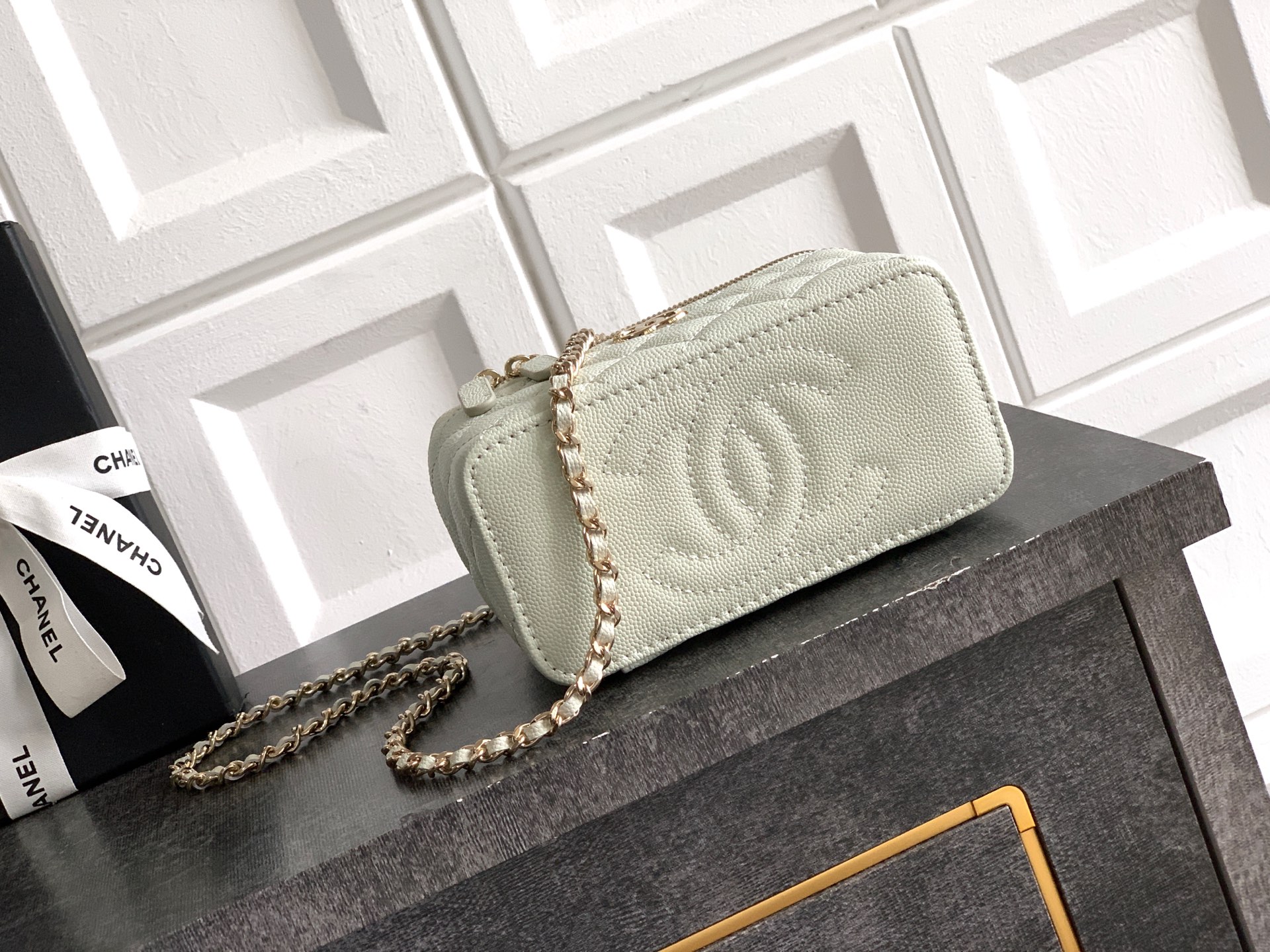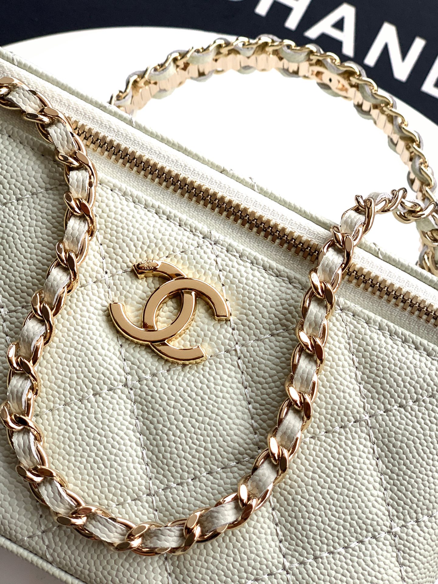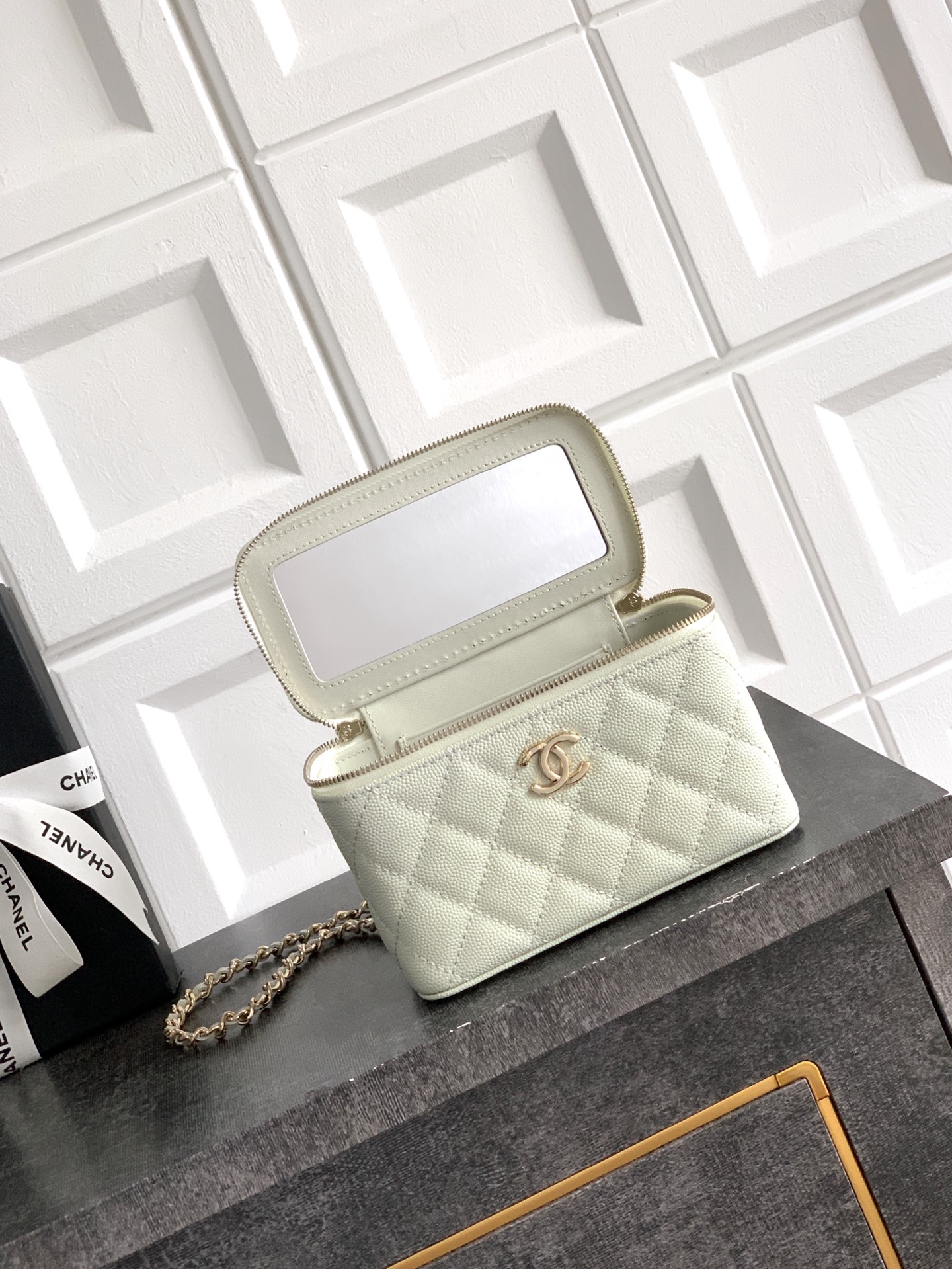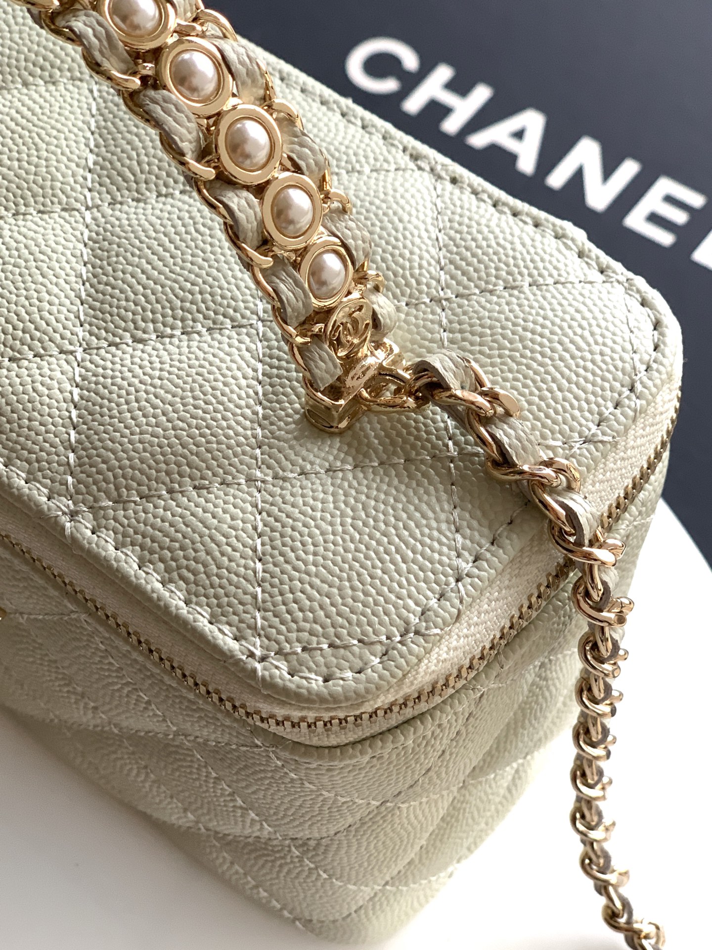 650 “Light Gray” Exclusive Shipping OHANEL 26C Pearl Handle Logo Inlaid with Swarovski Diamonds Popular Box Bag Exquisite and Chic Chain Small Cosmetic Case Can Hold a Mobile Phone, The Capacity is Very Touching and Practical Comes with 8cm_