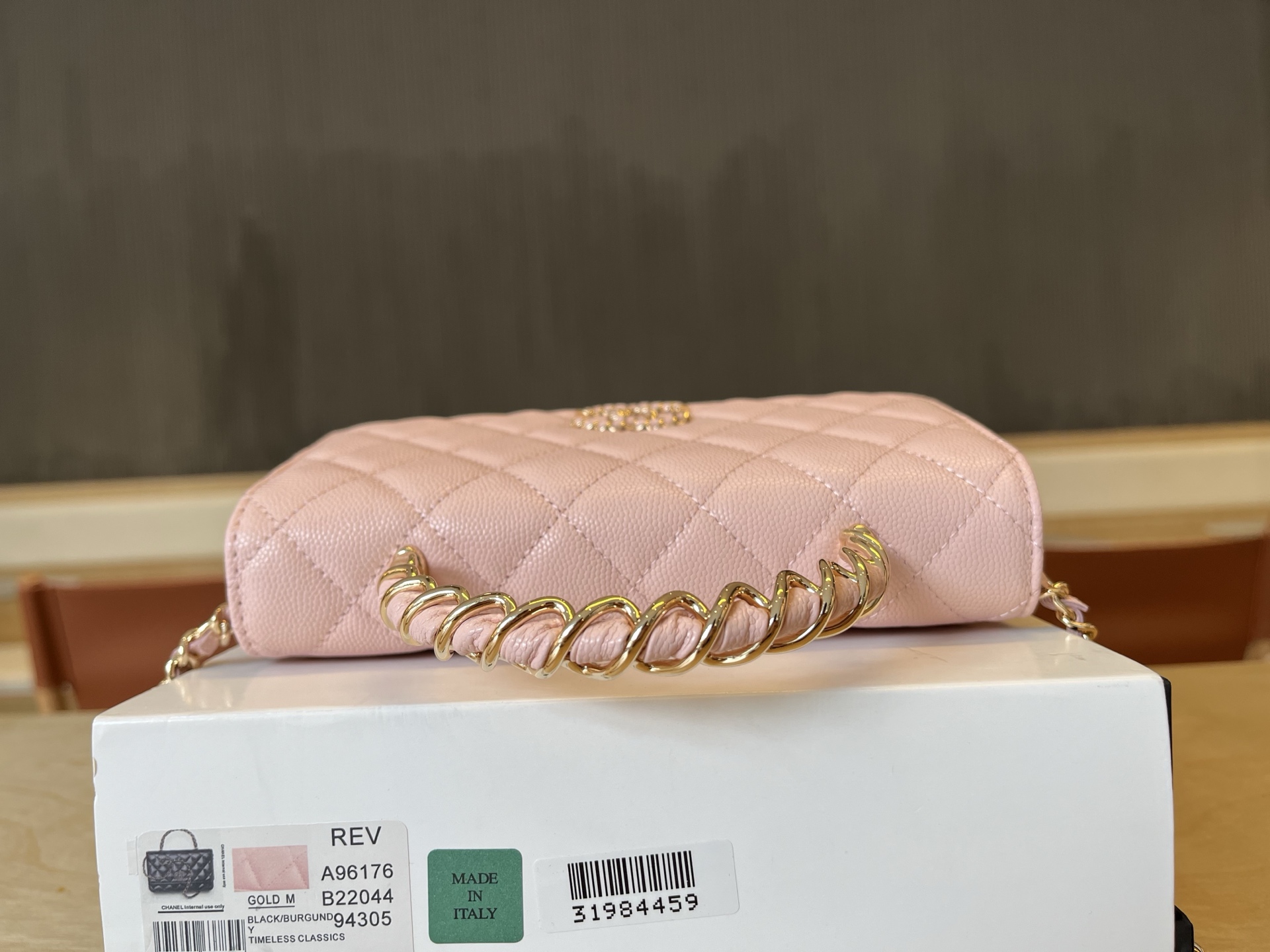 680 A965ss new series woc, sweet little sachet, very girly. The spiral pattern on the handle and double C is very beautiful and elegant. This is simple and very attractive, worth owning. Size: cm