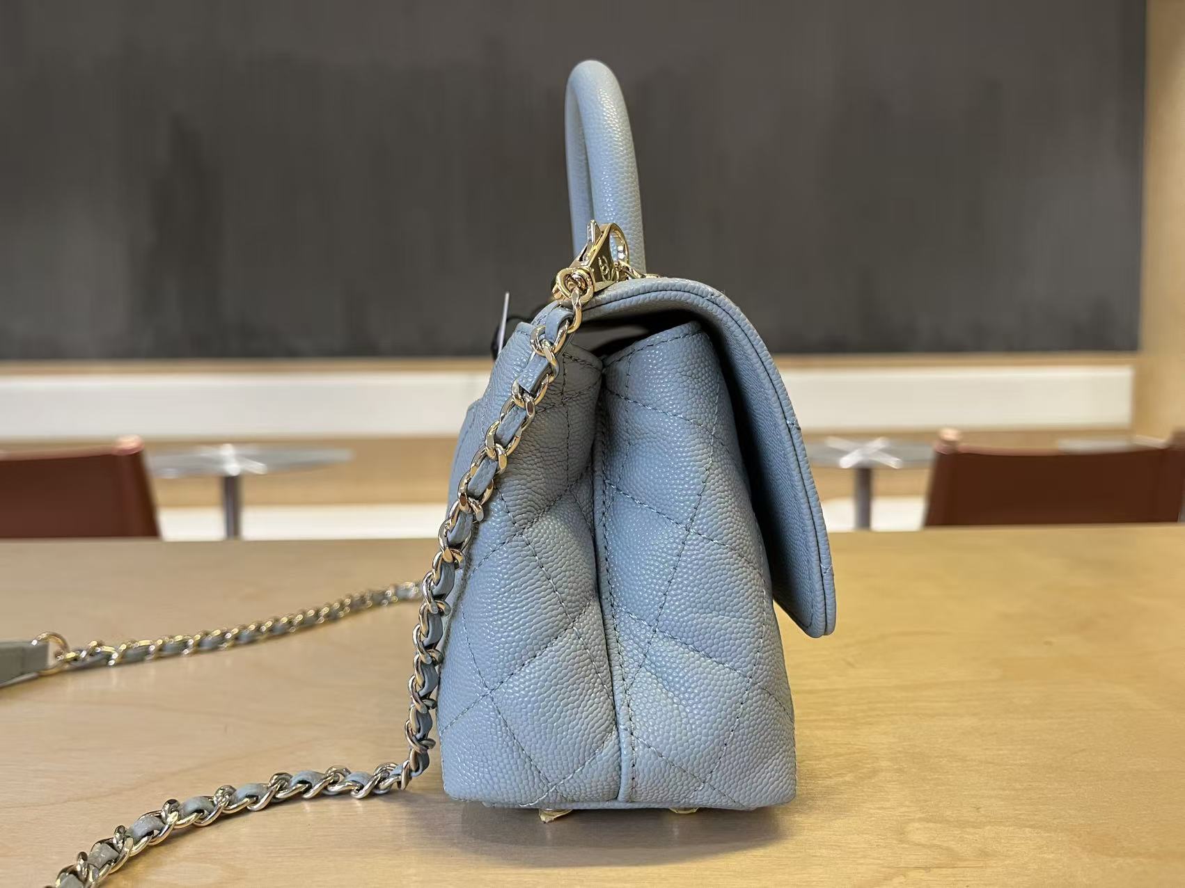 820 26C series blue suede CF bag, classic diamond pattern + light gold hardware, retro and high-end! The suede is