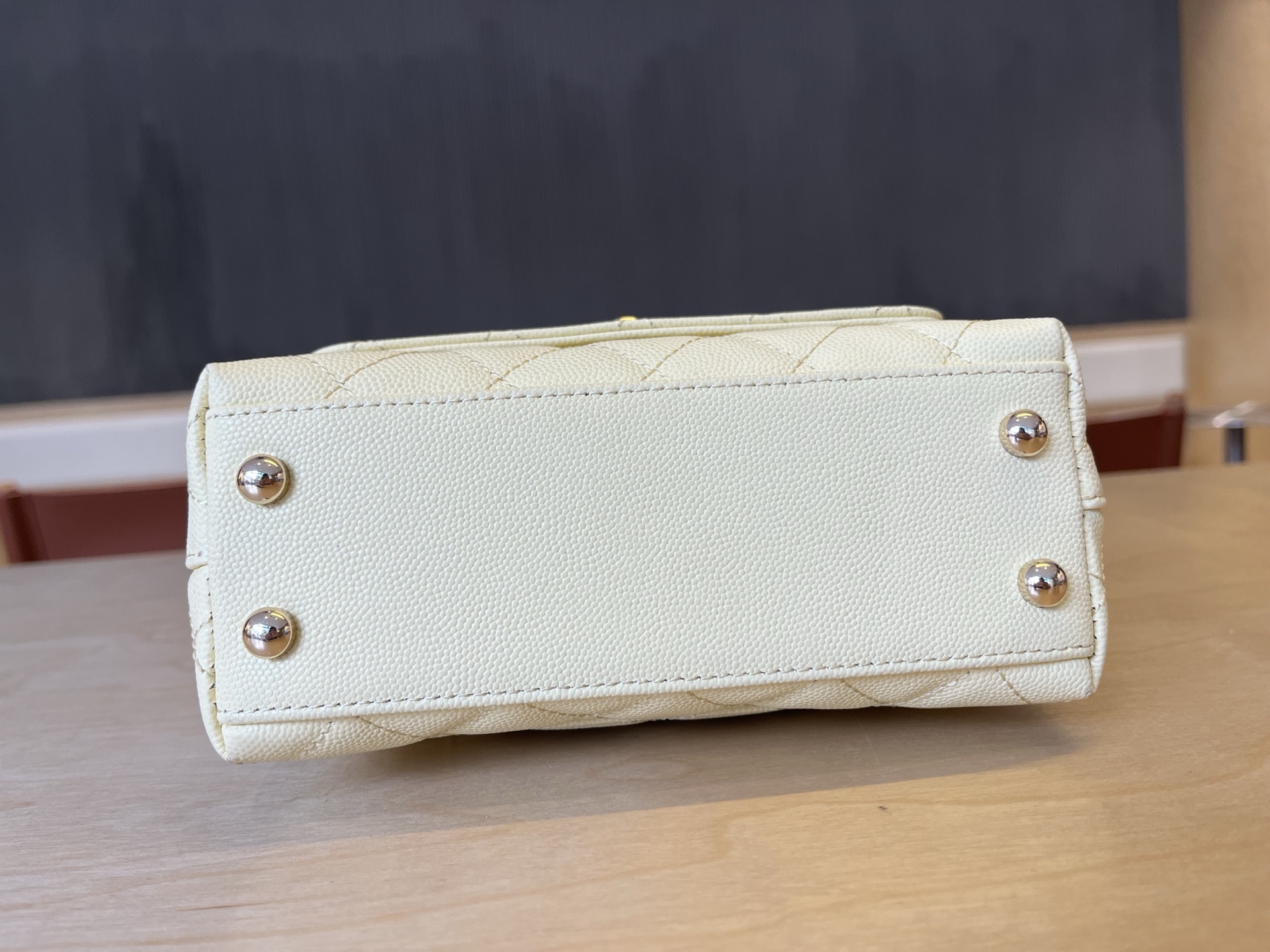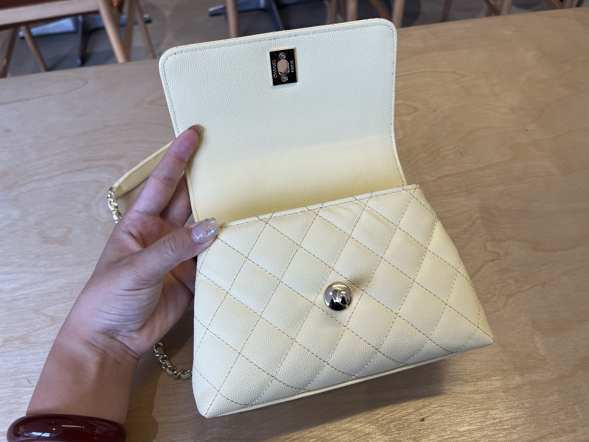 680 AS222k light gold rim lining. This season’s cocohandle is full leather inside. Chip hardware. Imported small ball pattern cowhide hand-held flap bag. New version of the classic king fried 𝑠 𝑧𝑒: cm