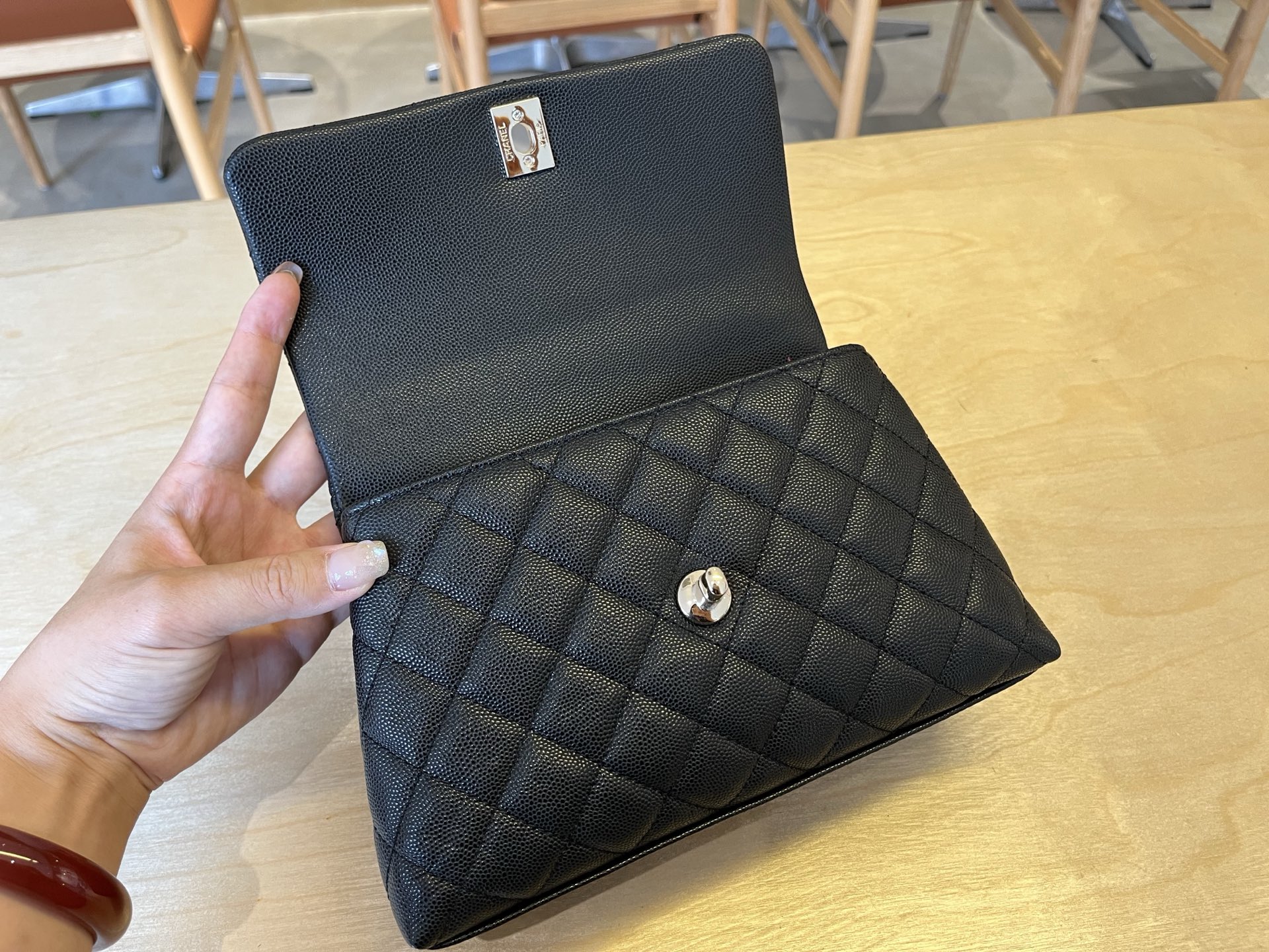 7 92990 Chanel coco handle. The upper body is really exquisite. I can’t express my love for it. The shoulder strap is detachable. Selzburg series. Imported small ball pattern cowhide. It feels soft and does not lose the essence of Chanel at all. Size: 23cm