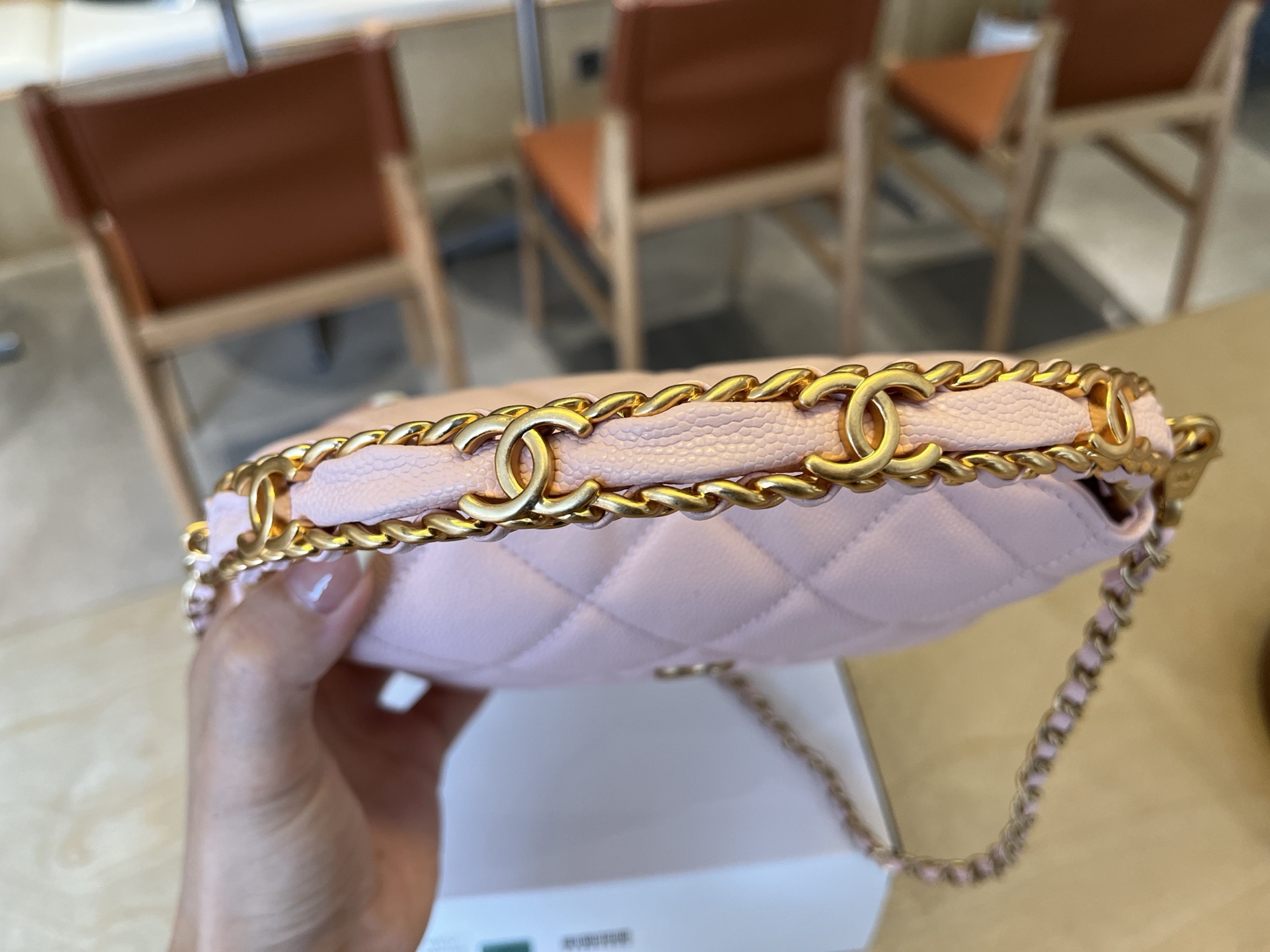 720 A965B Double C logo handle chain bag. Exquisite handle design makes you more fashionable. Grained cowhide leather with metal retro hardware. The texture is wear-resistant and durable. Classic design style. Versatile and practical. It is really exquisite. It has good looks and is compact. I love this cosmetic bag more and more. It is very beautiful to carry around. It can make you look stunning when paired with any clothes. This season’s new products are very surprising. Size: 7cm
