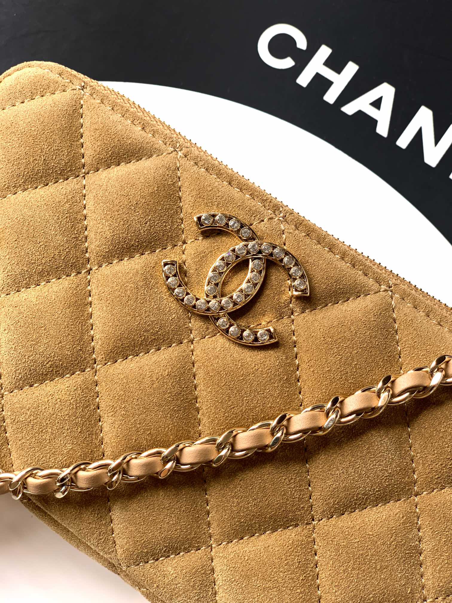 Bag Chanel Suede “Brown” Rhinestone Chain Bag! Very practical and exclusively shipped by OHANEL
