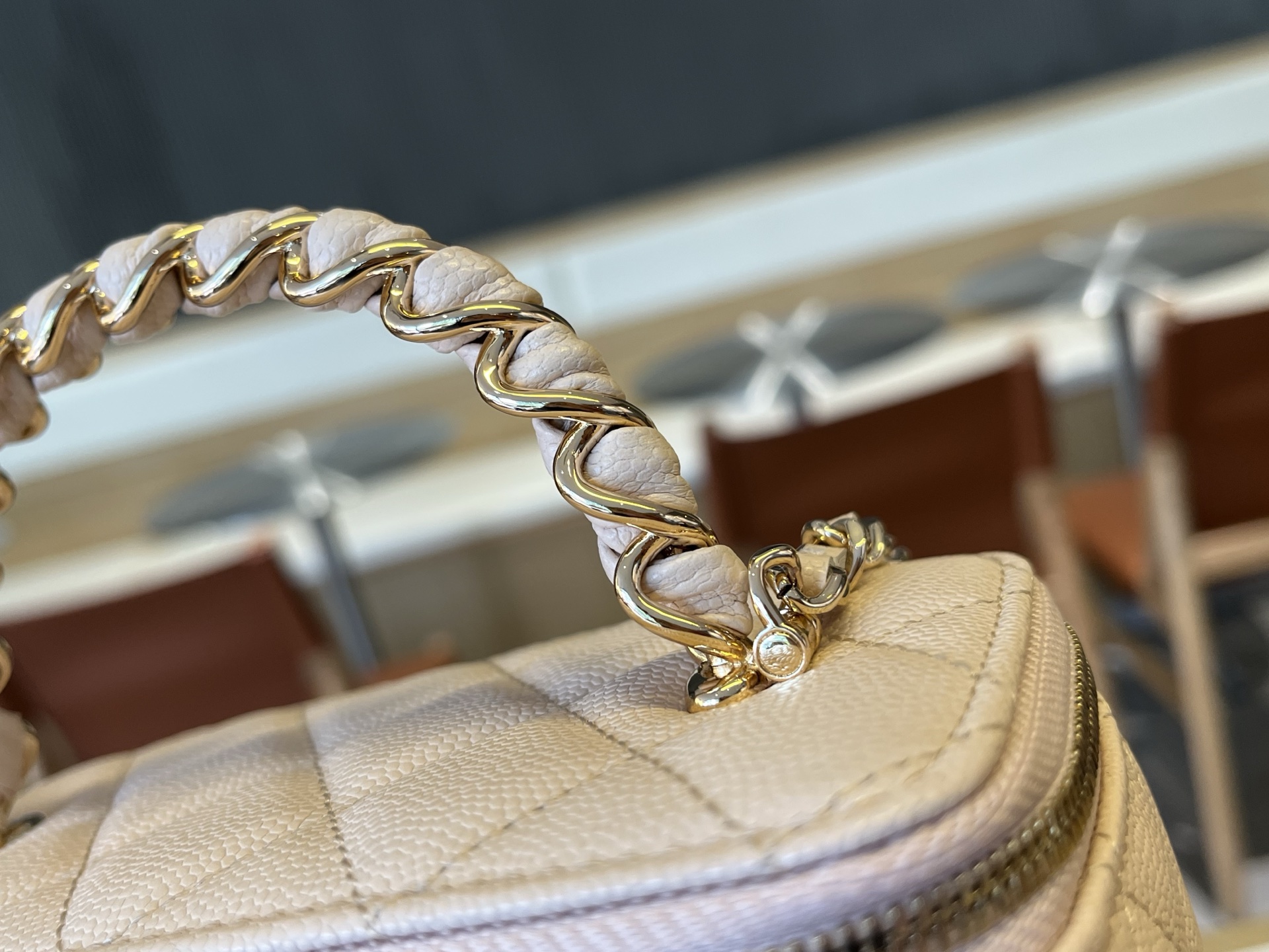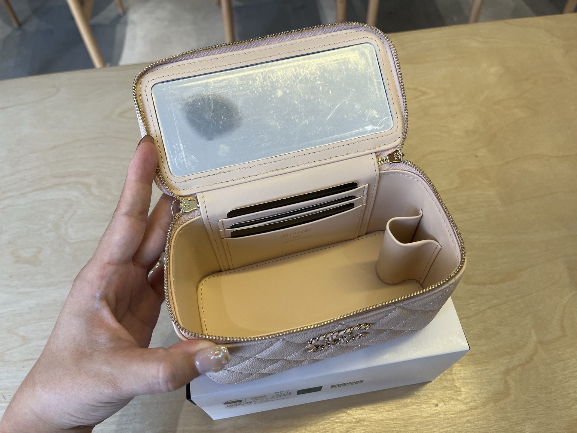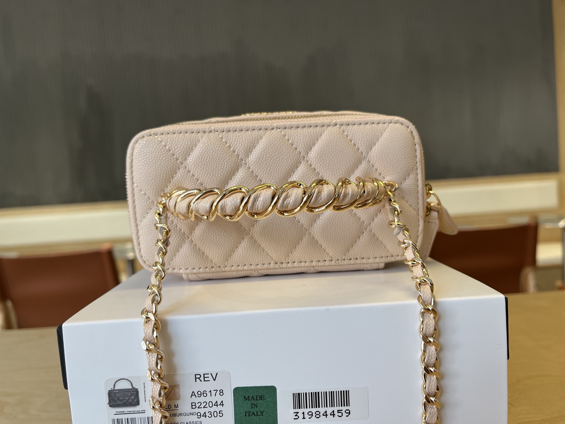700 A965ss new series portable lipstick bag. Sweet little sachet. Super girly. The spiral pattern on the handle and double C is very beautiful. This is simple and attractive. Worth owning. Size: cm