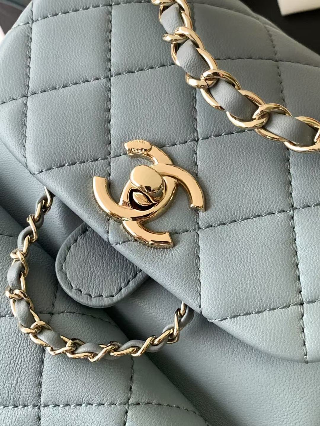 850 26C series blue suede CF bag, classic diamond pattern + light gold hardware, retro and high-end! The suede is