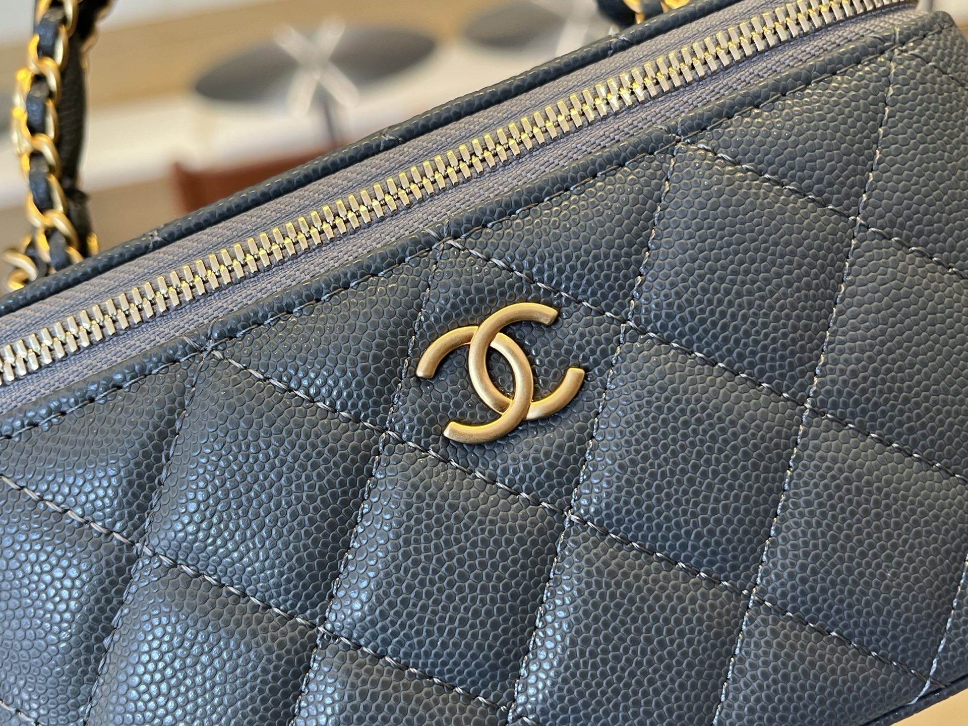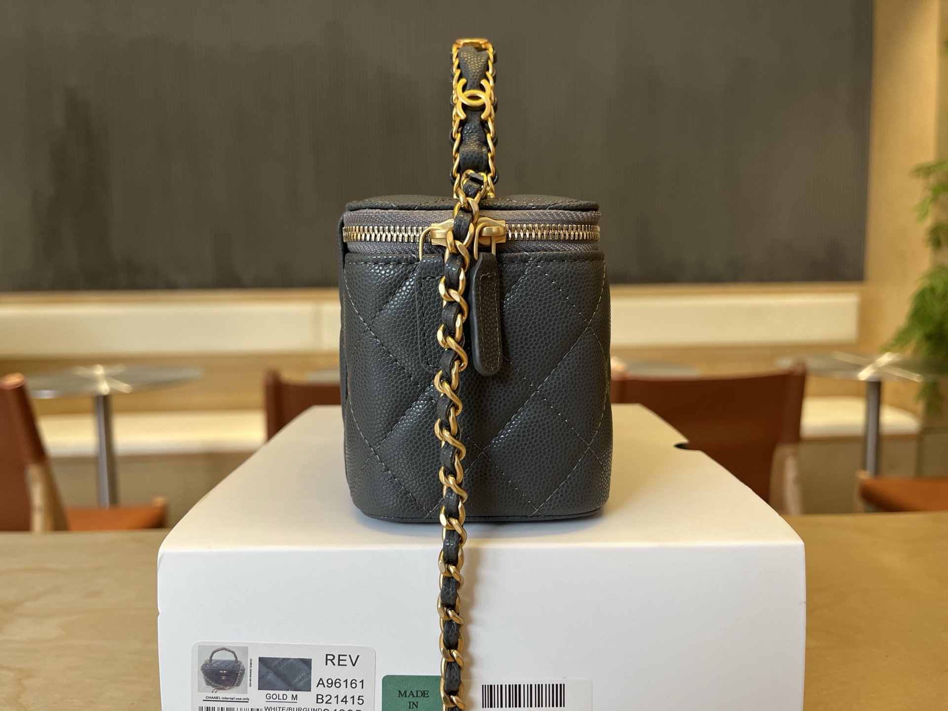 750 A965B double C logo handle cosmetic case. Exquisite handle design is more fashionable. Grained cowhide with metal retro hardware. The texture is wear-resistant and durable. Classic design style. Versatile and practical. Really exquisite. Good appearance. Compact. I love this cosmetic bag more and more. It looks beautiful when I carry it with me. It can make you look stunning when paired with any clothes. This season’s new products are very surprising. Size: cm