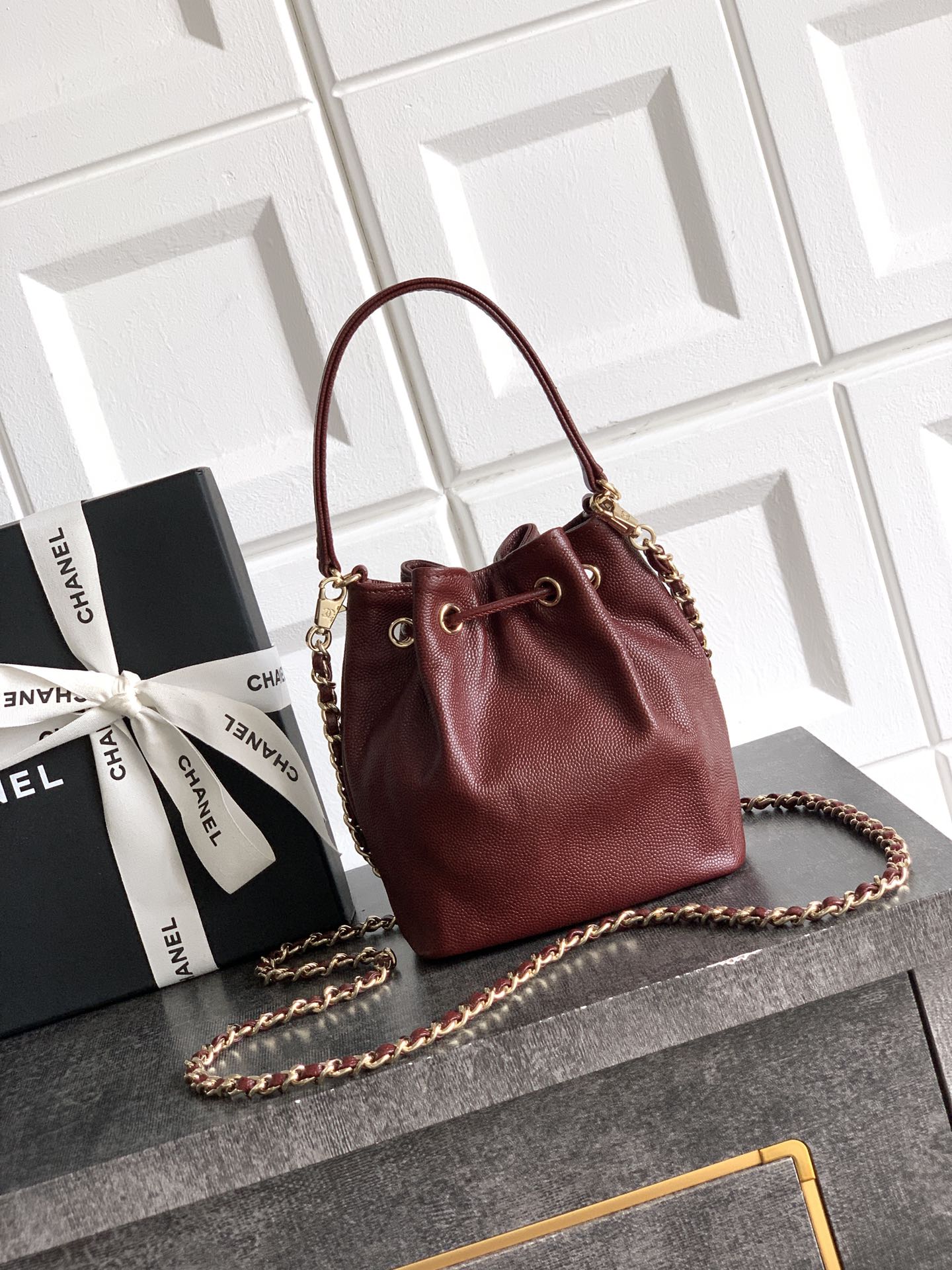 Bag Chanel 75 “Burgundy” OHANELB heavyweight player, don’t blink, small bucket bag, one second