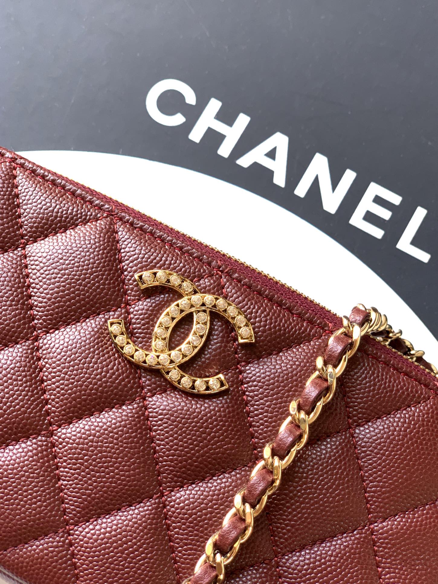 Home BAG Women's Bags Chanel Bag Chanel 5 “burgundy” rhinestone chain bag! Very practical. Exclusively shipped. OHANELK new