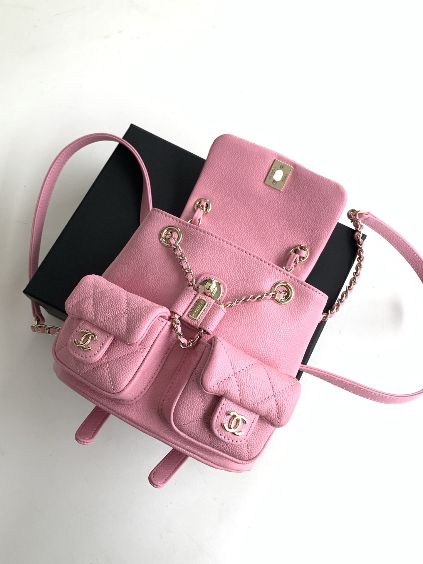 Bag Chanel 5 New on 23A, the little frog is here. The caviar cowhide little frog backpack returns this season although it is not