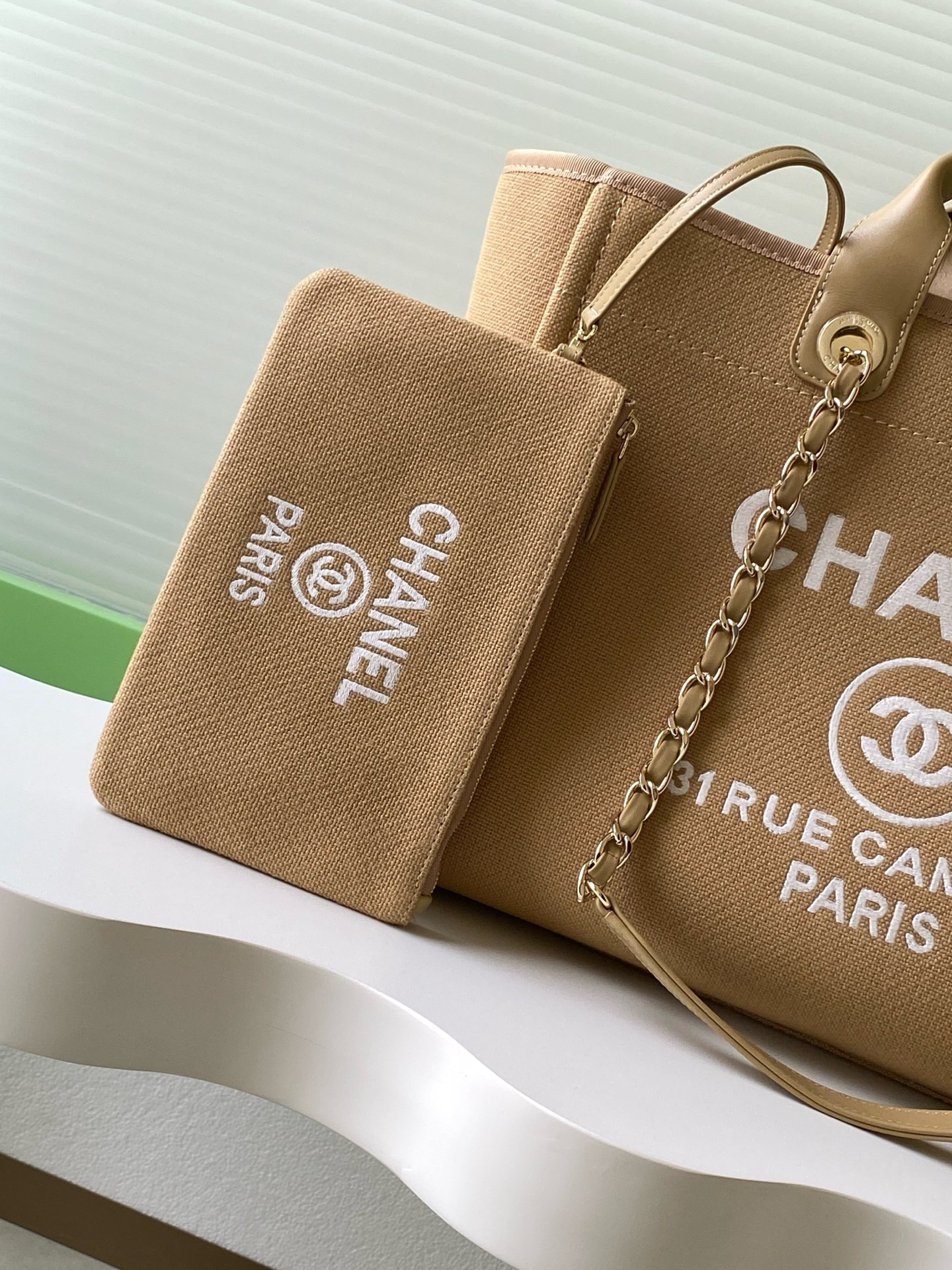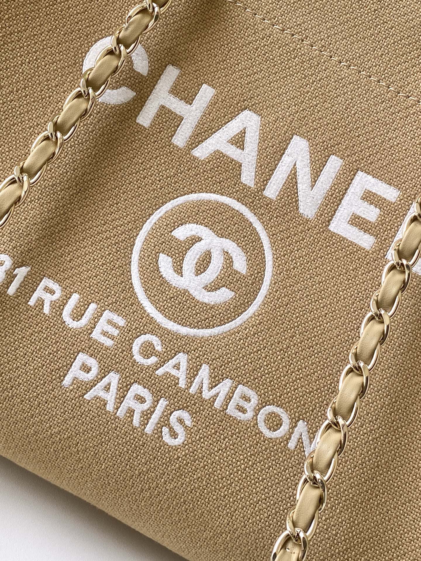Bag Chanel 8 Chanel beach bag shopping bag is made of cotton, with a combination of calfskin and metal.