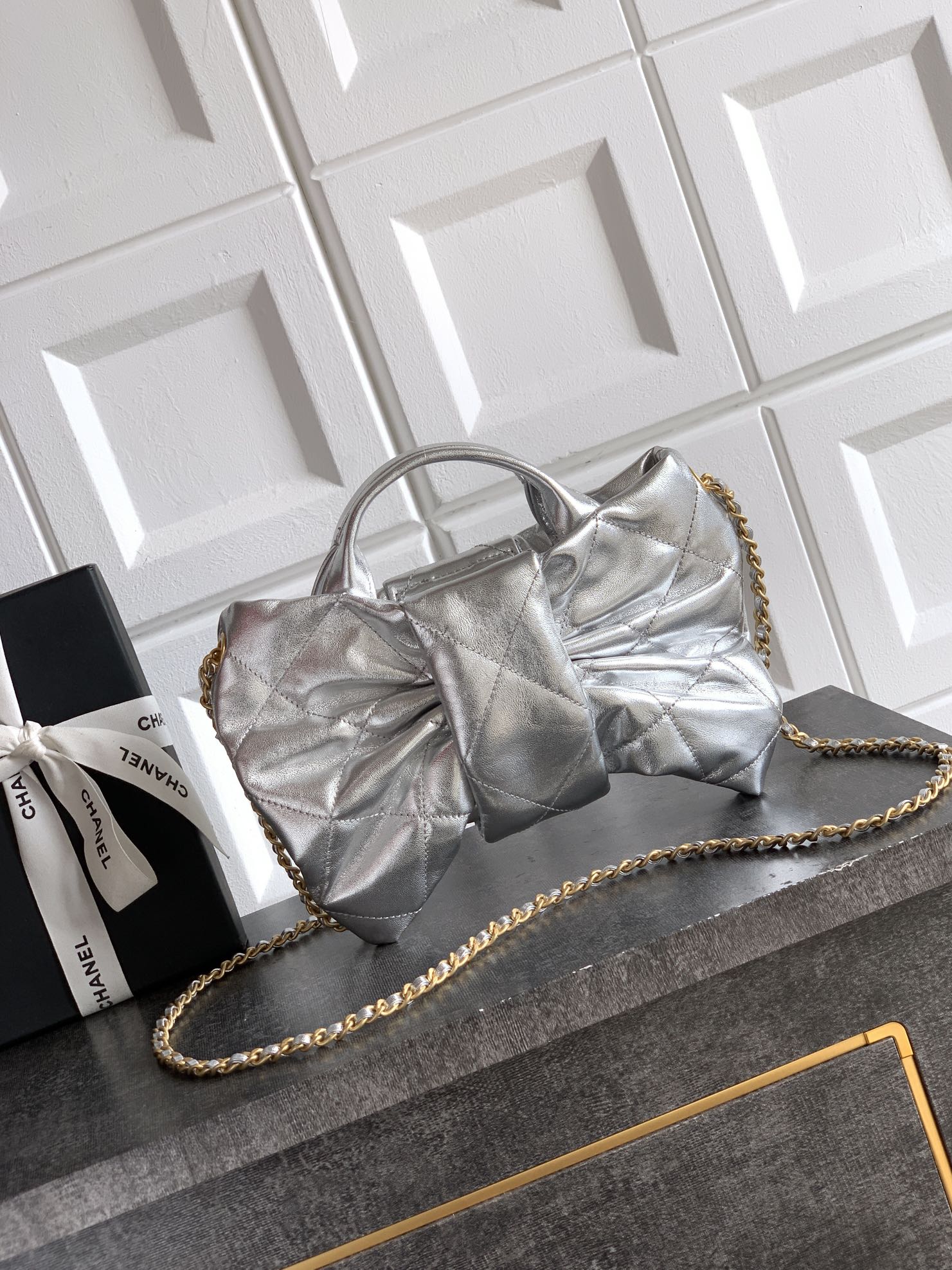Bag Chanel small size “Yingguang Silver” OHANEL bow bag design and style analysis, various materials,