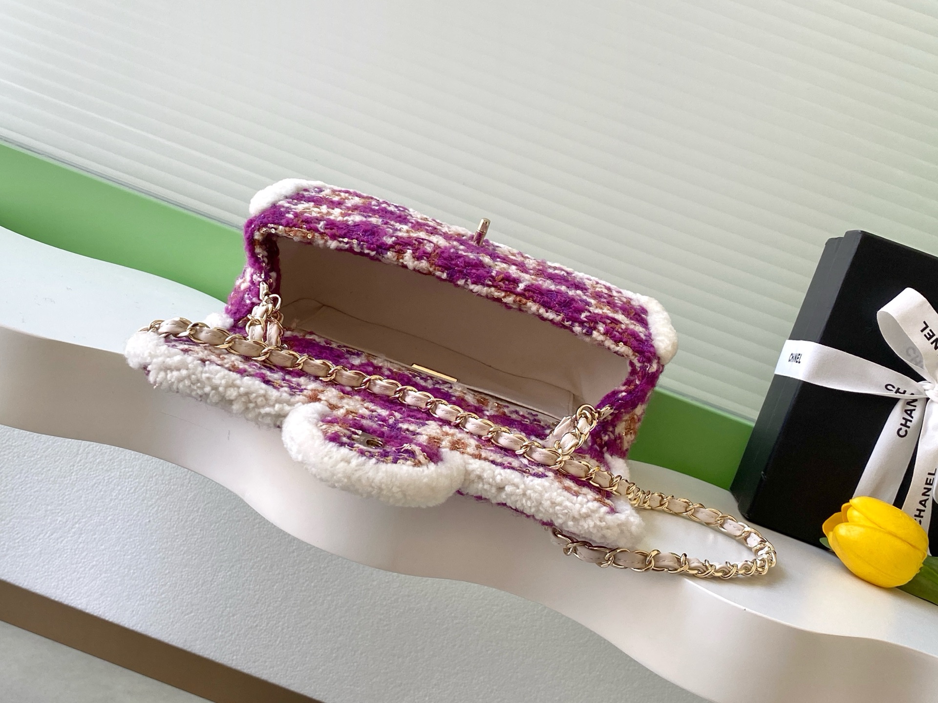 The 720 25N tweed CF bag is a limited edition of the 2025_26 COCO NEIGE ski series. It is made of purple-red tweed material + white fur piping and a classic double-C metal buckle. It is elegant, retro and highly recognizable. The chain shoulder strap can be carried by hand or cross-body, practical and fashionable! Tweed is soft and layered, and it looks great when worn with a sweater and coat in winter. The ski series is only released once a year and has perfect collection value. A must-have for fashion lovers! Style number AS5686 size 6.5-9