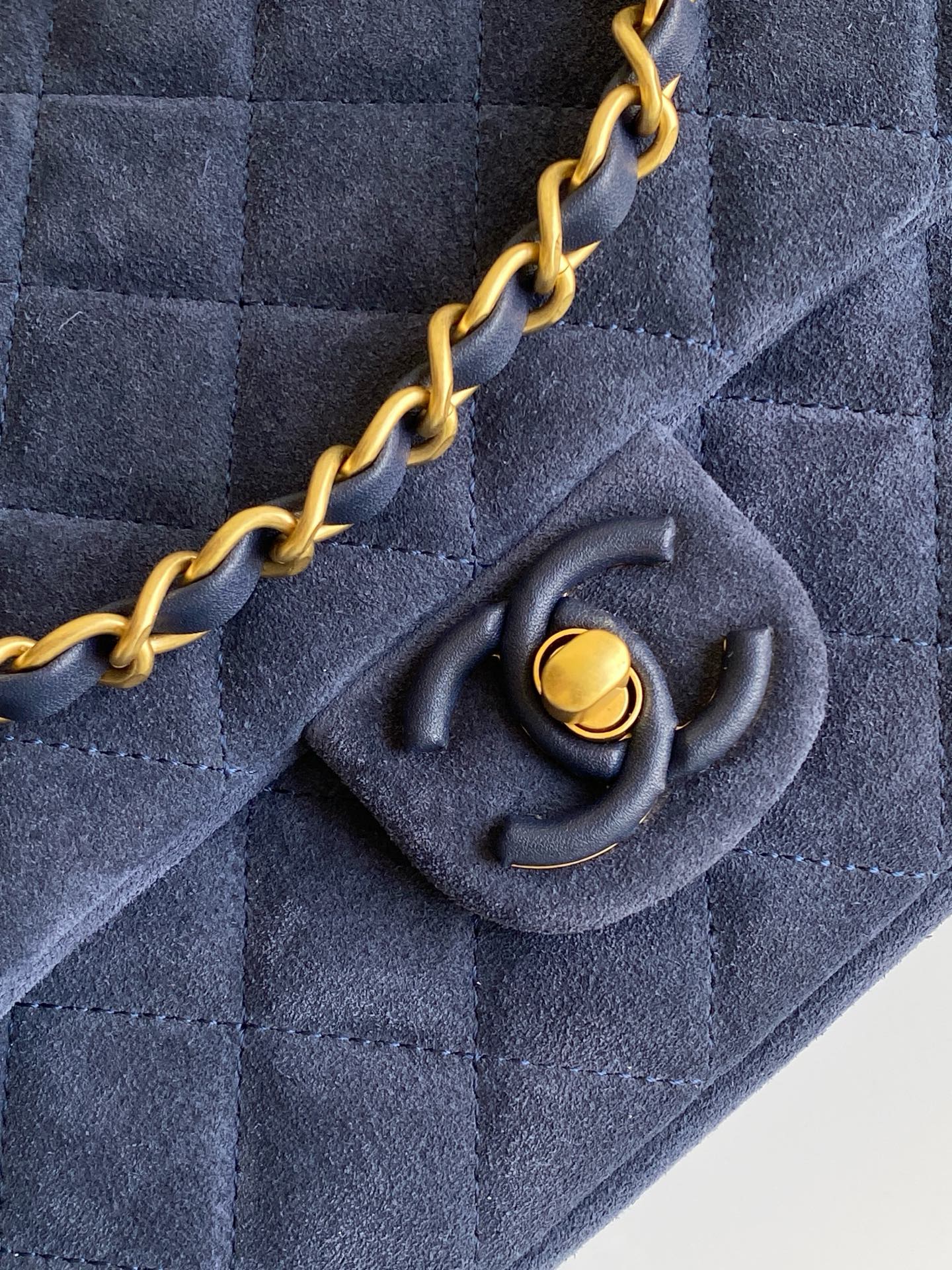 780 26C series blue suede CF bag, classic diamond pattern + light gold hardware, retro and high-end! The suede is