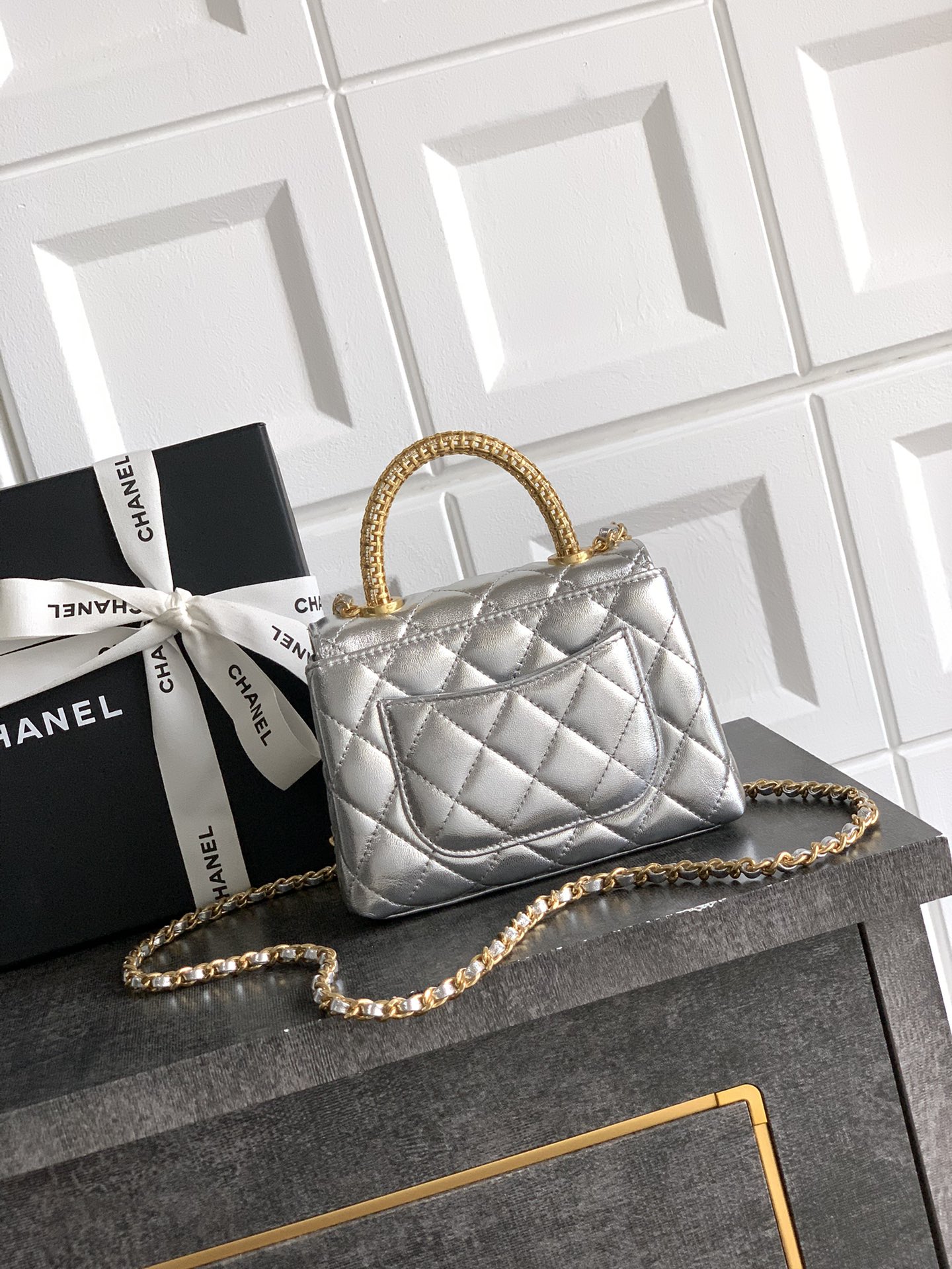 8 Platinum Silver “25A Gold Diamond Hollow Handle! Classic and fashionable series, hot style is coming🤩🤩🤩cocohandle classic! Made of fetal cowhide! The design of the pure copper metal handle with diamonds is sparkling and super noble. I can’t put it down with this retro design style. It’s so beautiful~ It’s cute and mini. The limited edition is super rare. The design is really unique! The whole bag looks so elegant when held in your hand! It feels delicate, soft and comfortable, and is very durable. It is a very affectionate and elegant bag ~ size “cm
